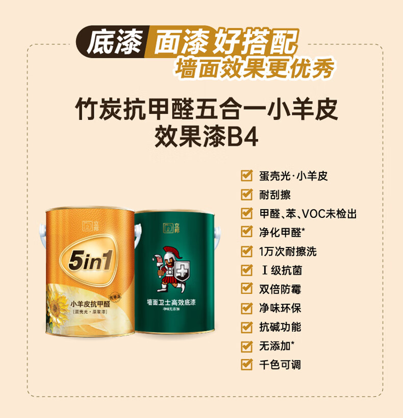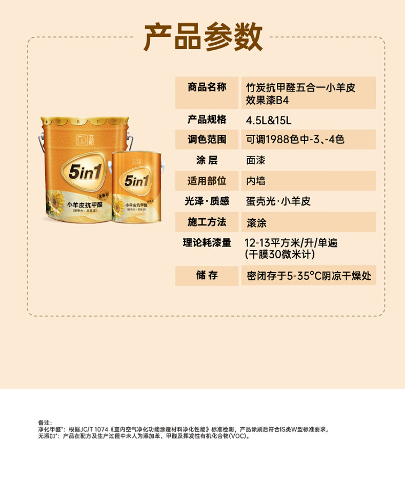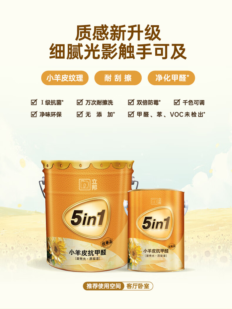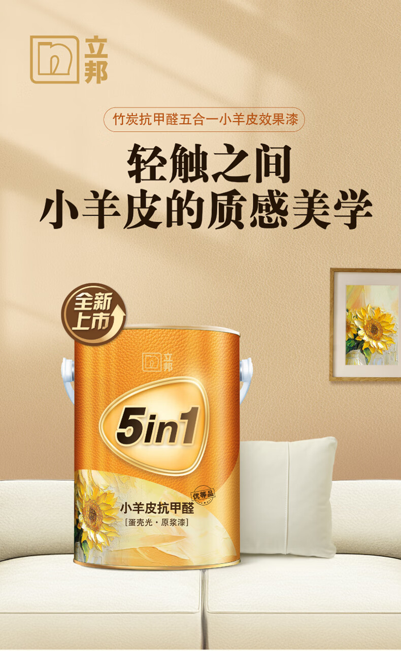 立邦【同城购】竹炭抗甲醛五合一小羊皮效果漆B4内墙乳胶漆油漆涂料 【门店产品需先预约】 15L单桶