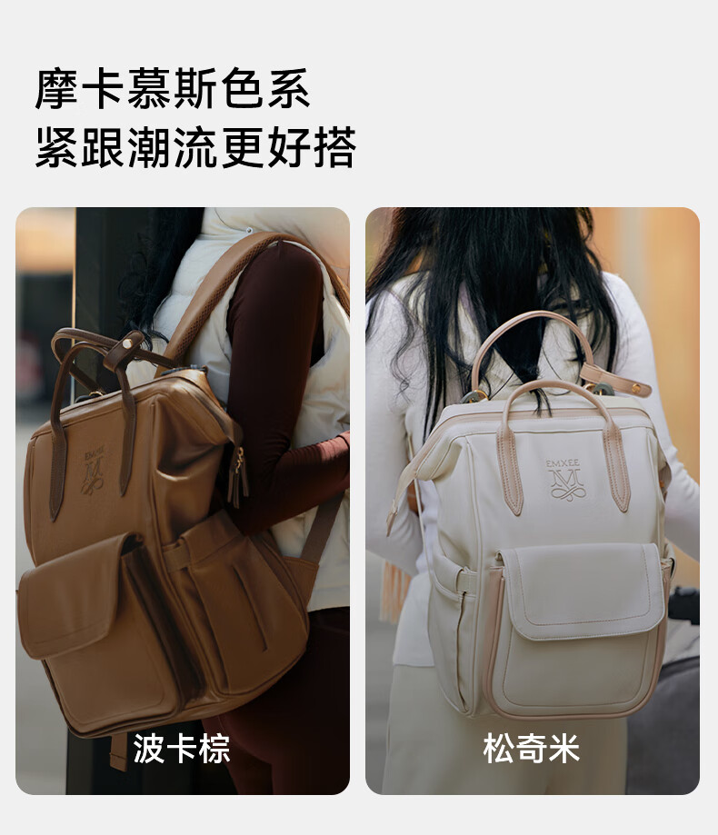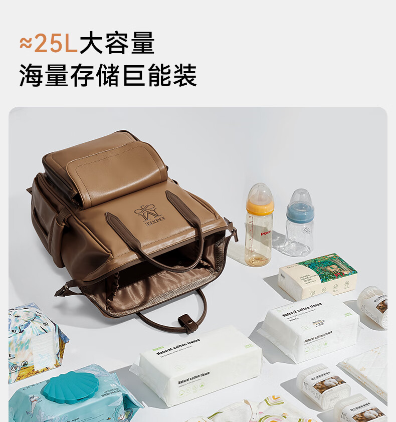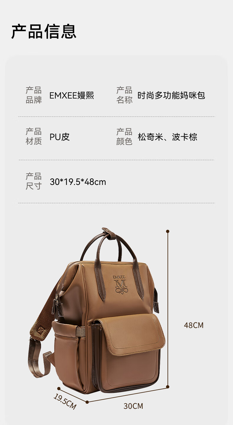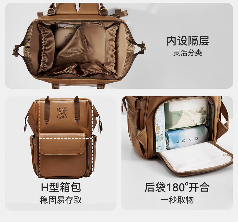 嫚熙(EMXEE)【新品上新】妈咪包多功能母婴包大容量双肩包妈妈包干湿分离 【25L】波卡棕