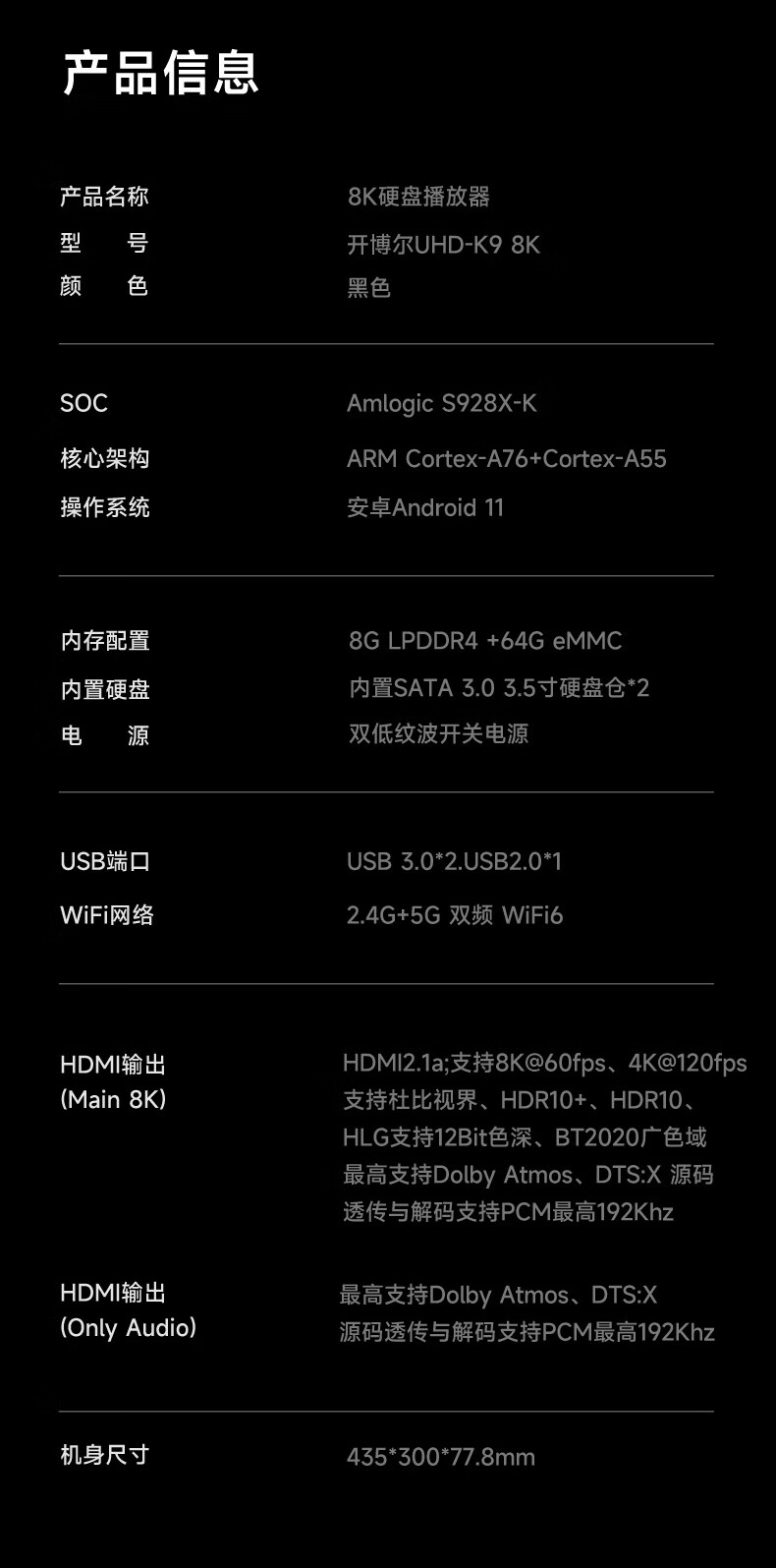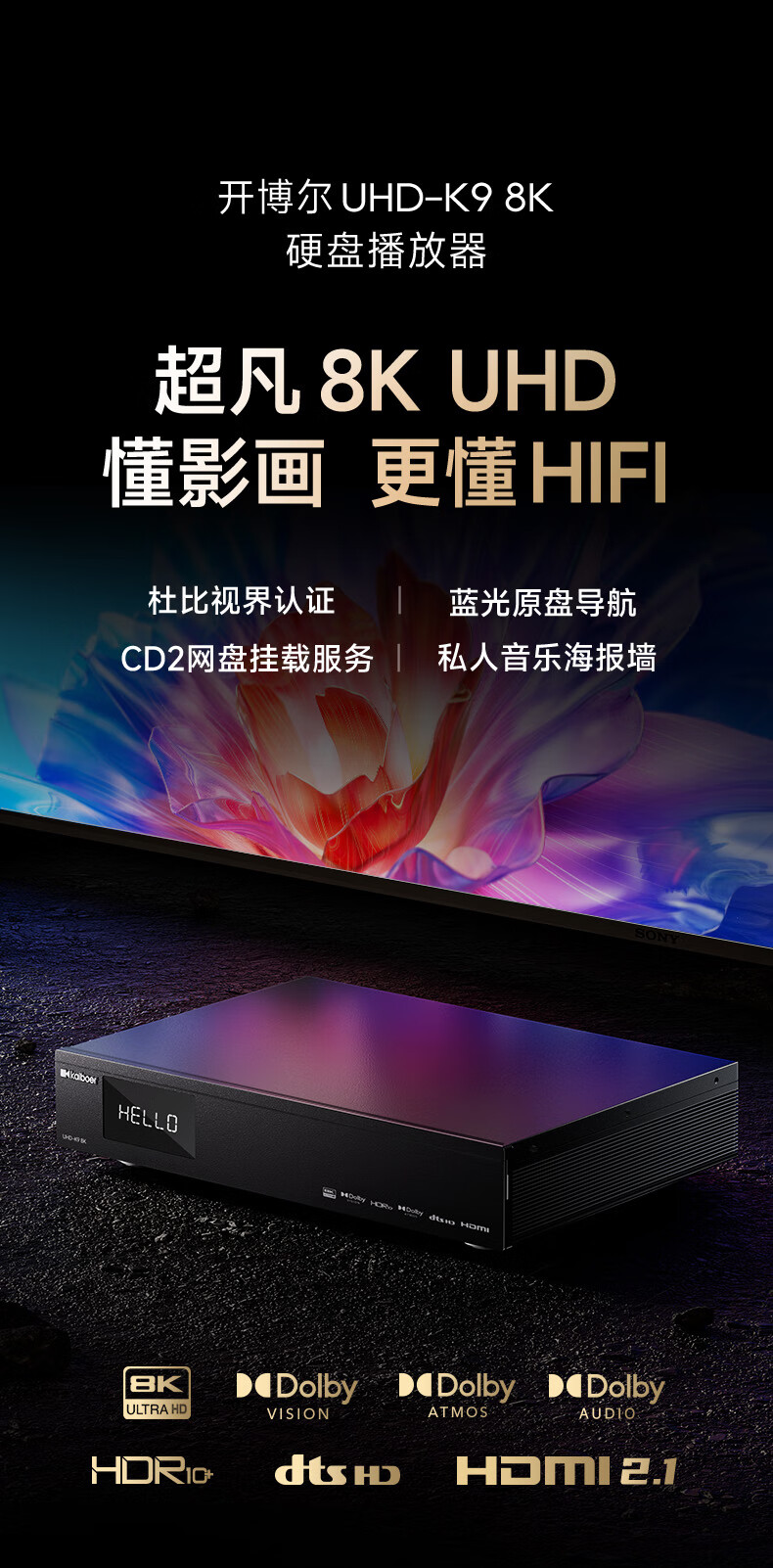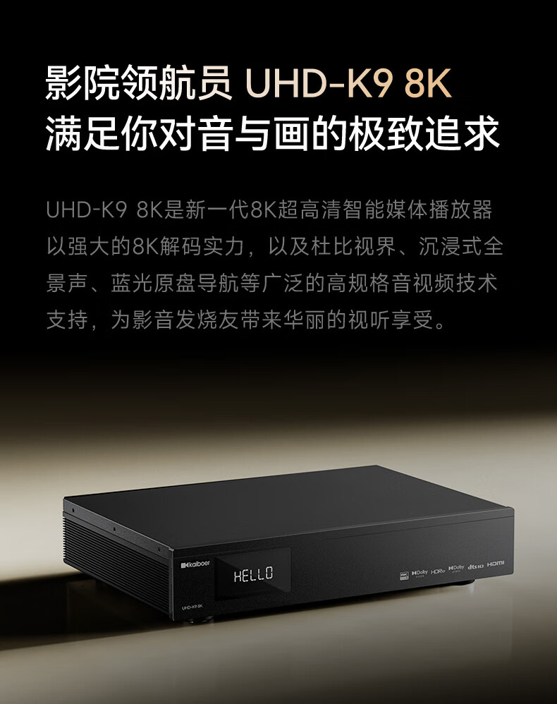 开博尔8K UHD蓝光播放机杜比视界 全景声 HDR 家庭影院播放器 视频播放器硬盘播放 UHD-K9