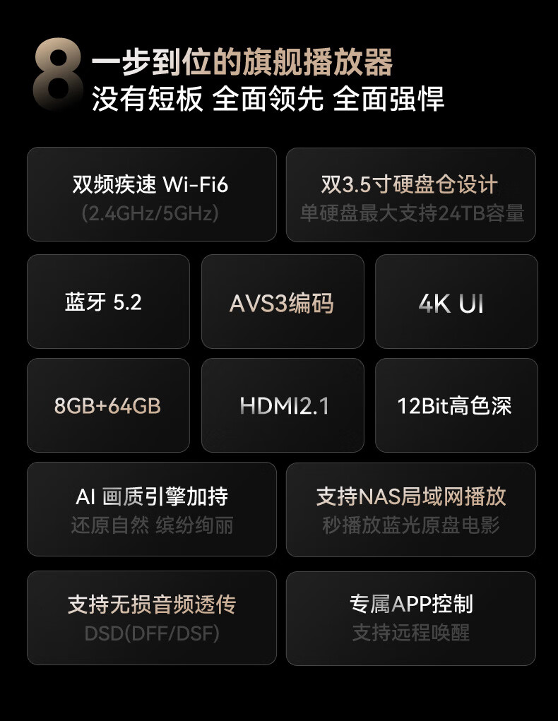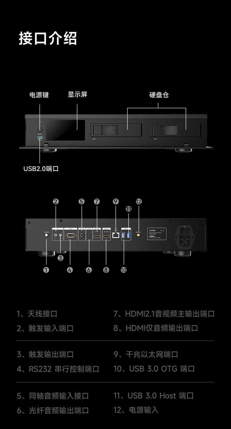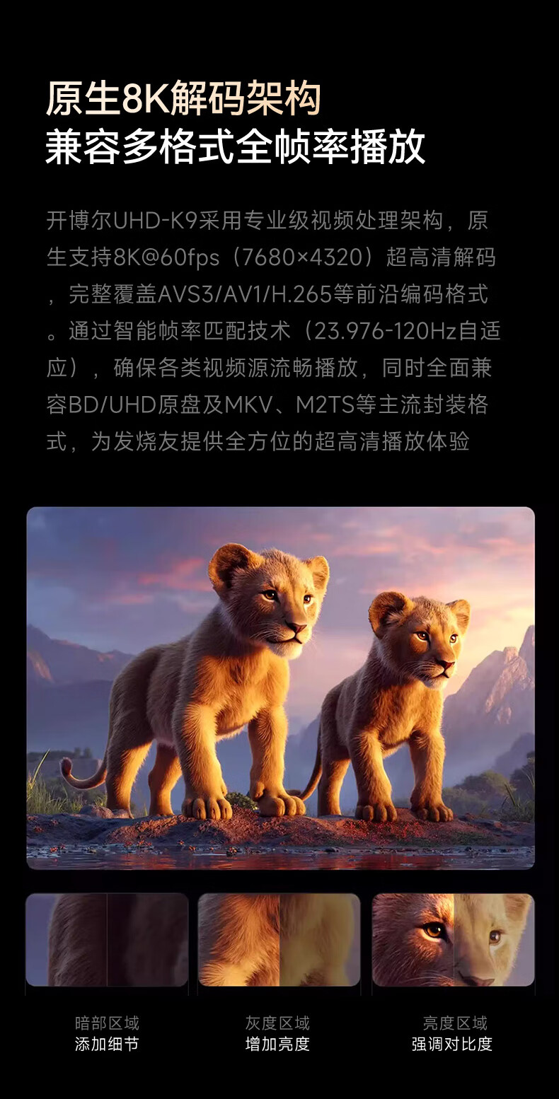 开博尔8K UHD蓝光播放机杜比视界 全景声 HDR 家庭影院播放器 视频播放器硬盘播放 UHD-K9