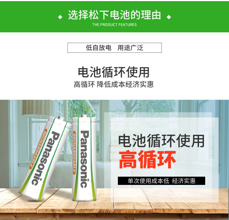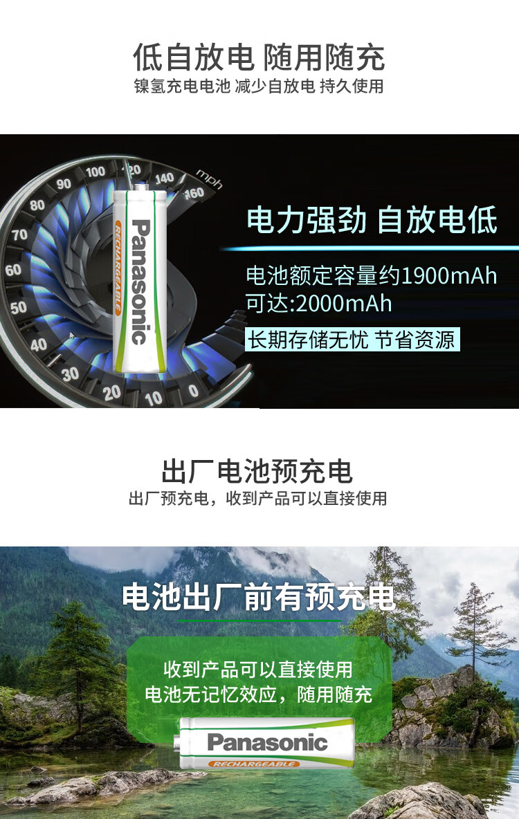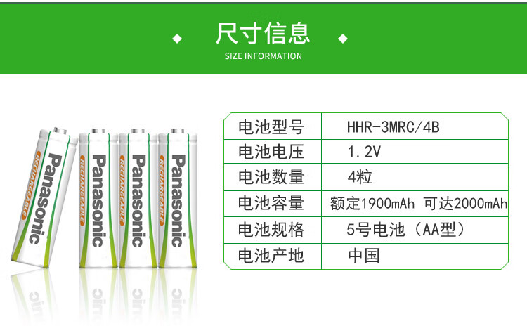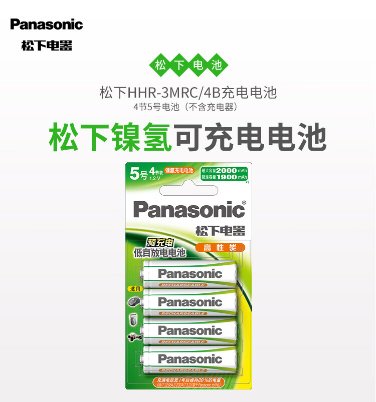 松下(Panasonic)5号五号充电电池4节三洋爱乐普技术适用于话筒相机玩具等无充电器HHR-3MRC/4B