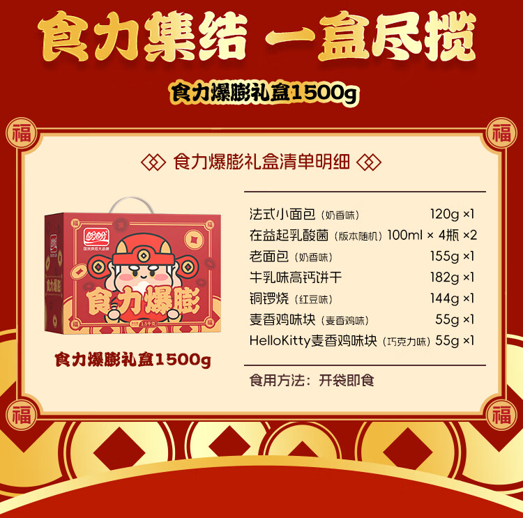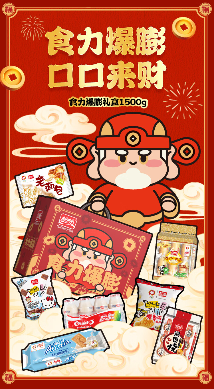 盼盼食力爆膨礼盒 饼干面包薯片膨化饮料休闲零食节日送礼 1500g/箱
