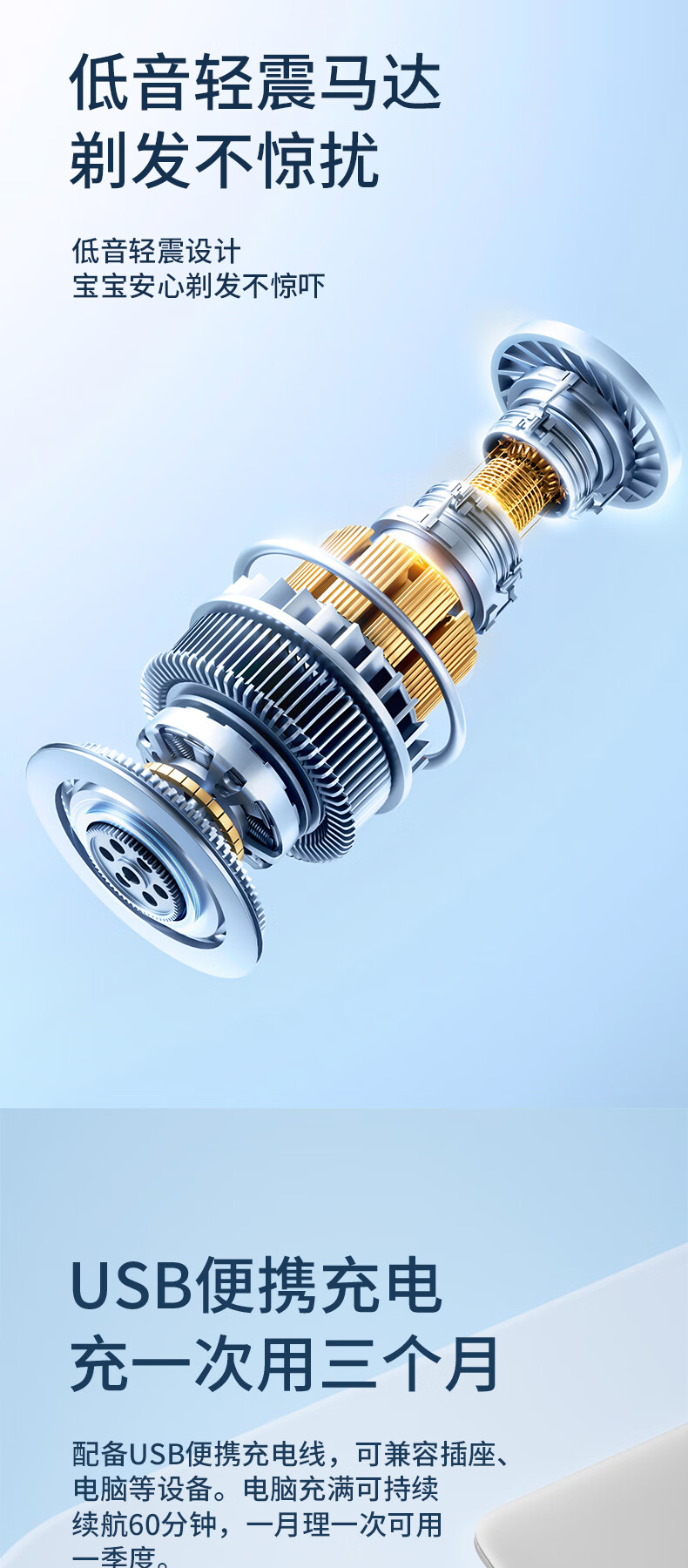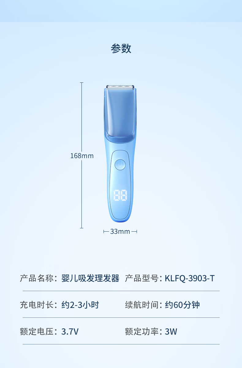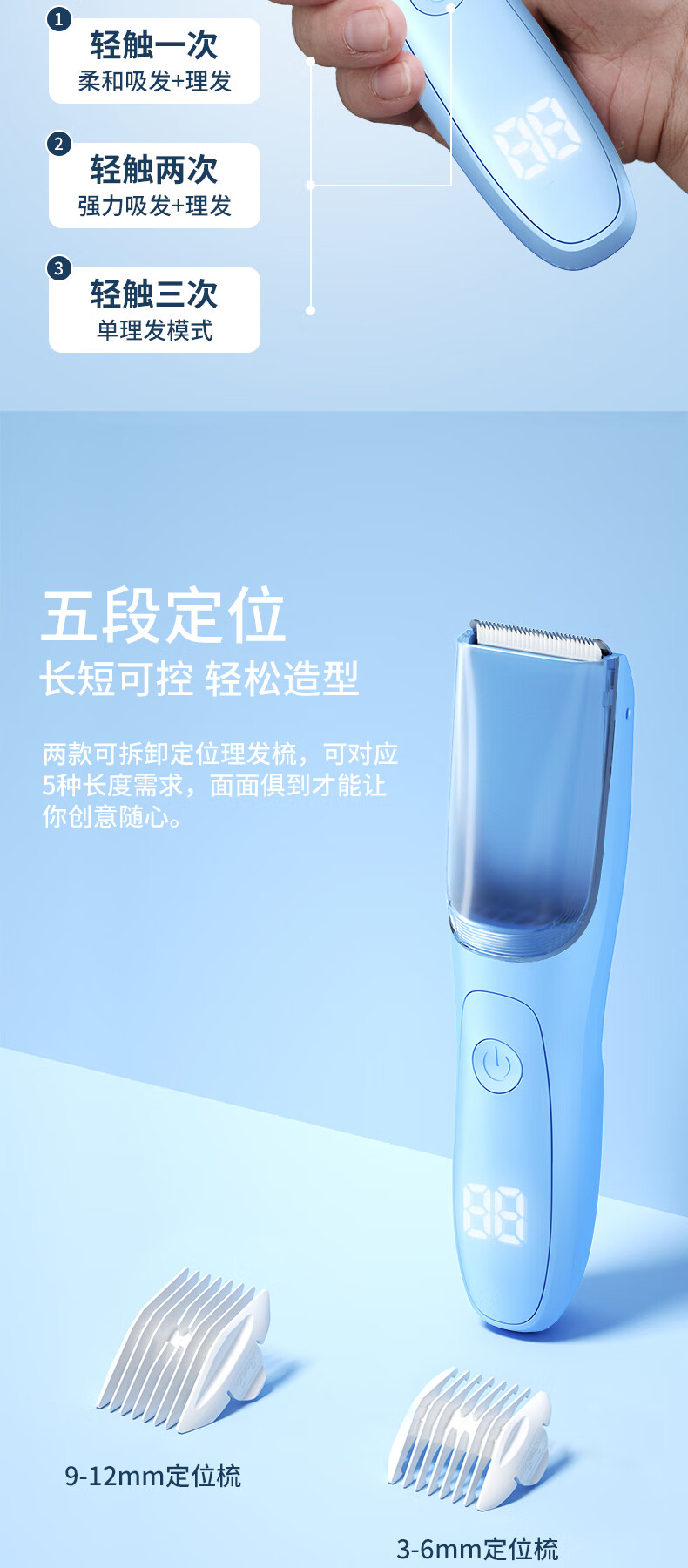 康佳(KONKA)自动吸发婴儿理发器儿童理发器宝宝剃头器 新生儿剪发电推子剃胎毛电推剪剃头刀理发工具全身水洗