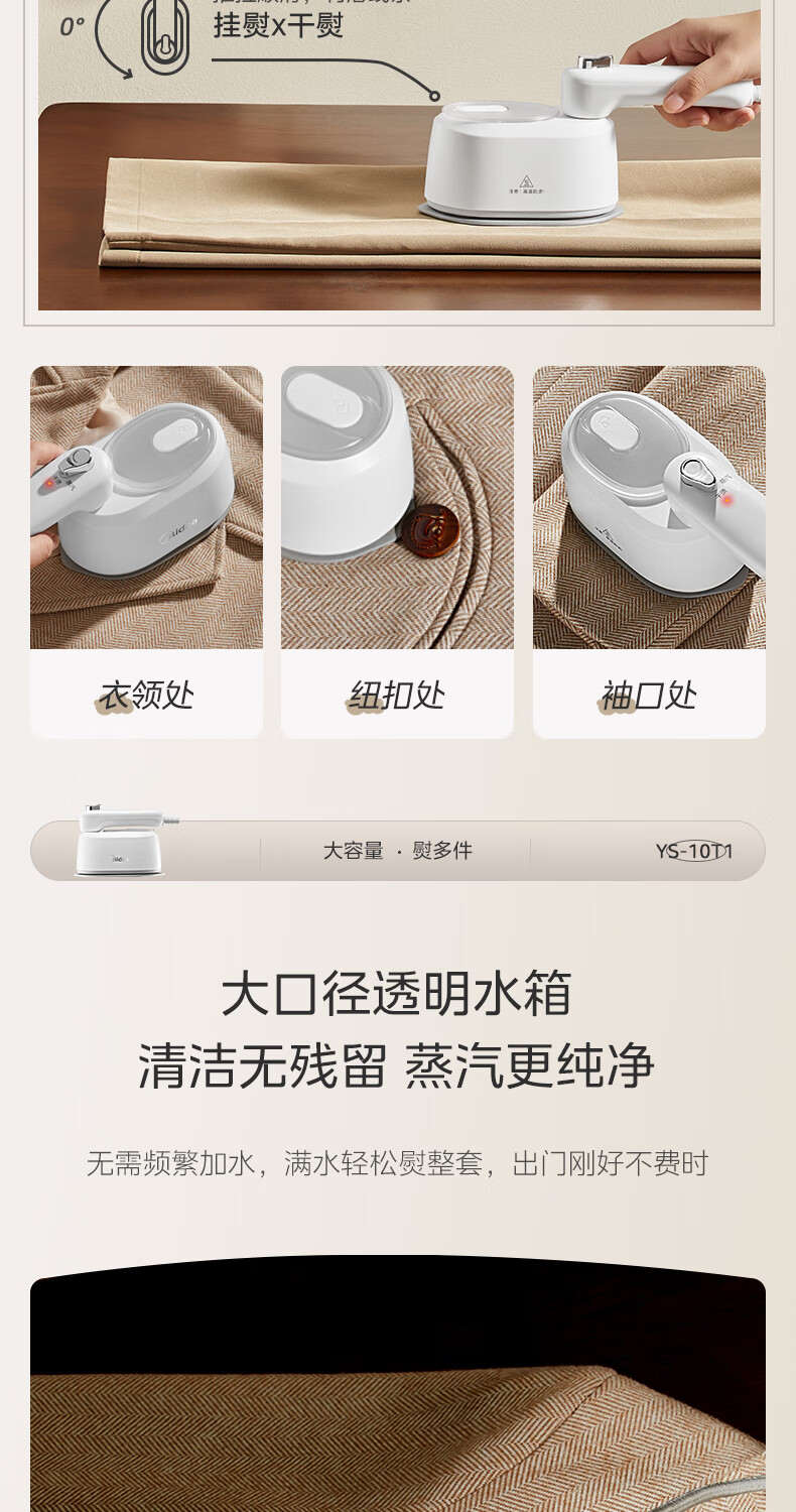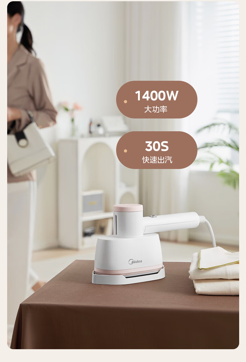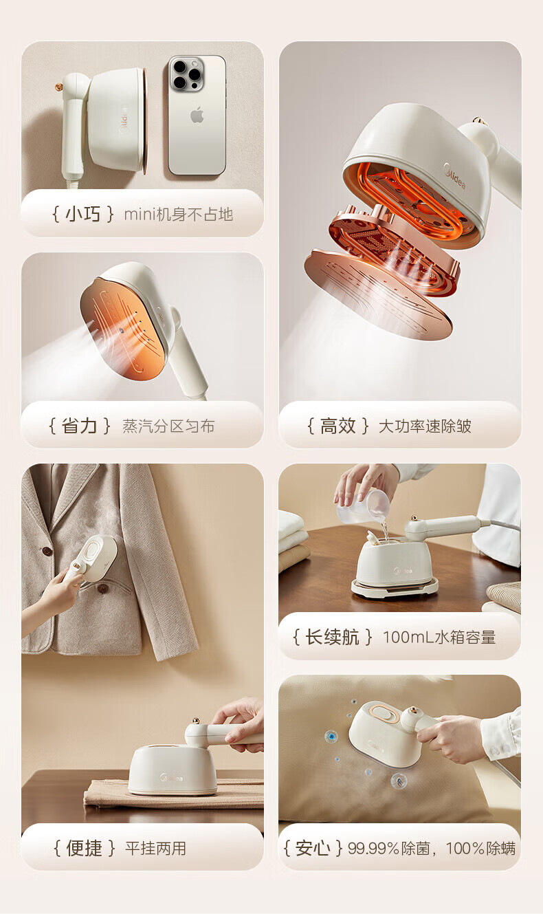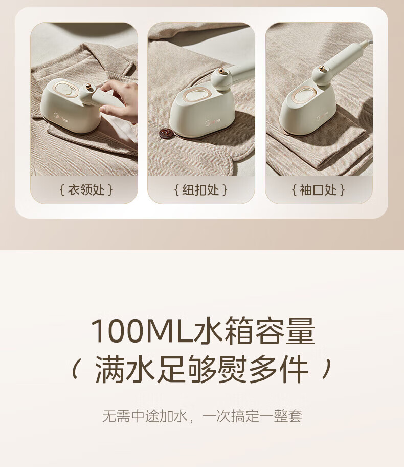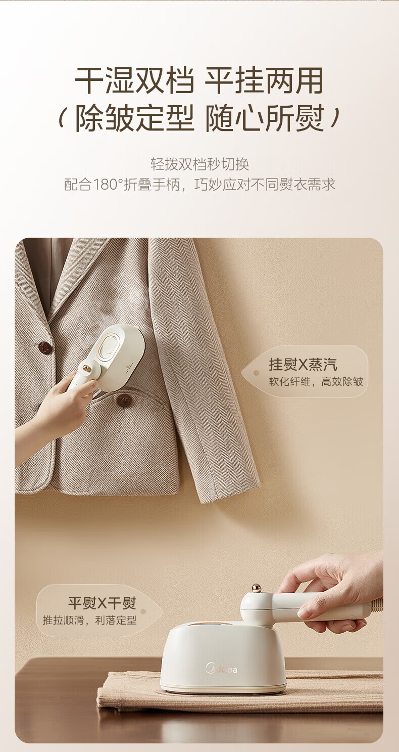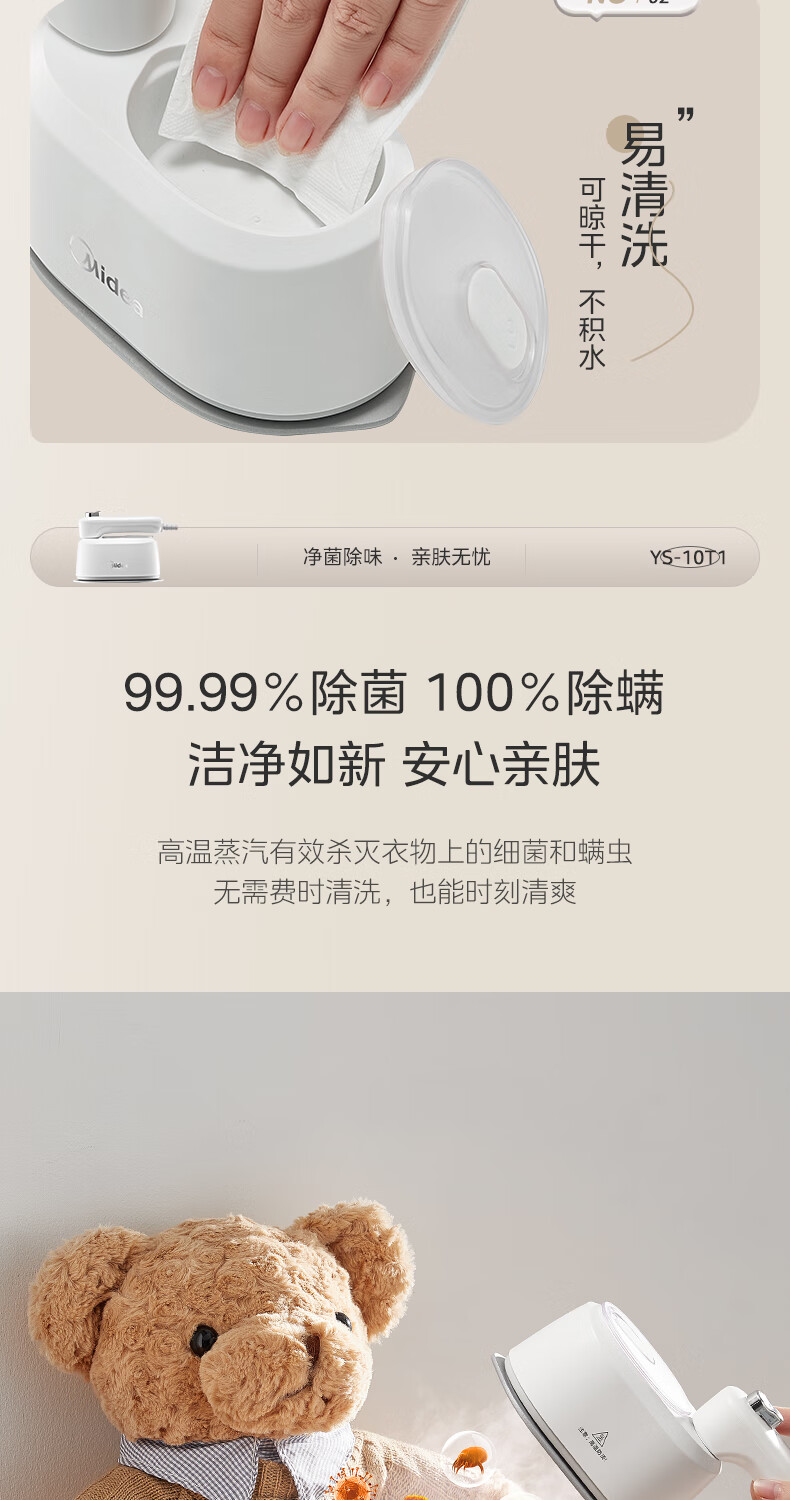 美的(Midea)【高效除菌除螨】手持挂烫机家用熨烫机迷你烫衣机电熨斗便携式迷你旅行熨烫机 【高性价比】可折叠YS-10T1