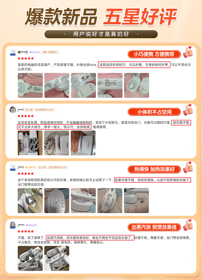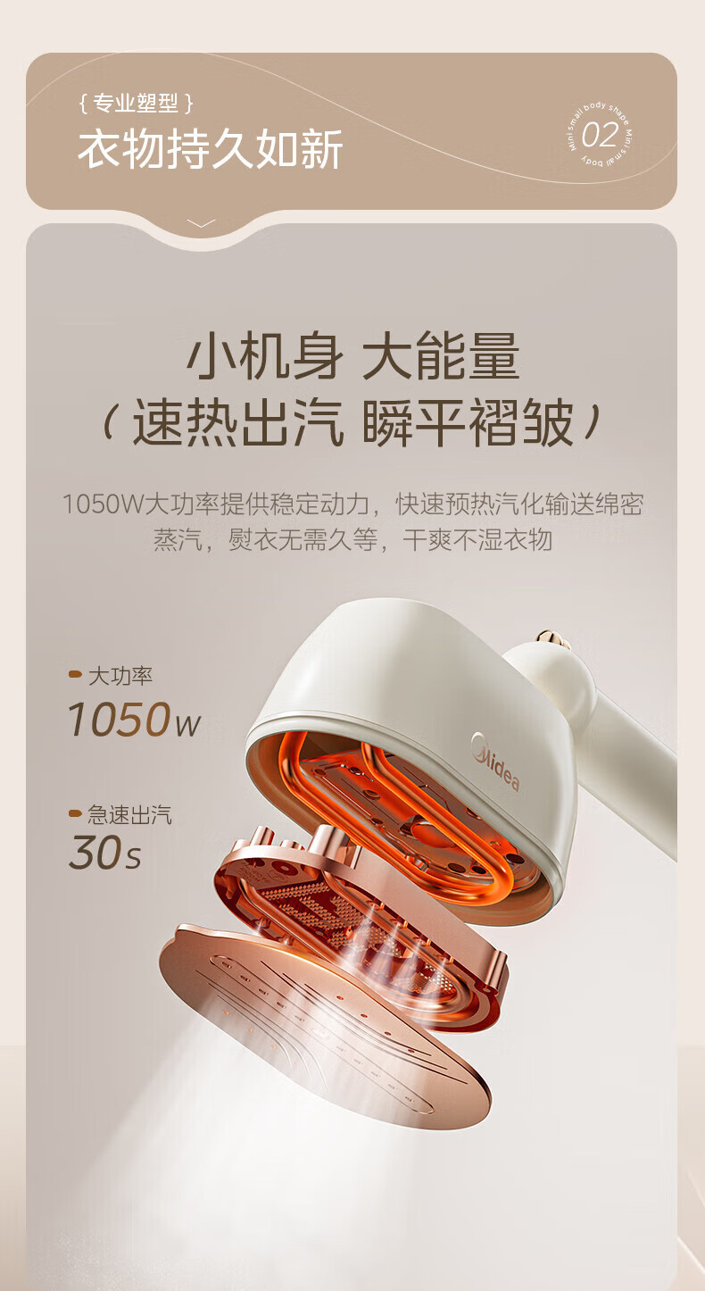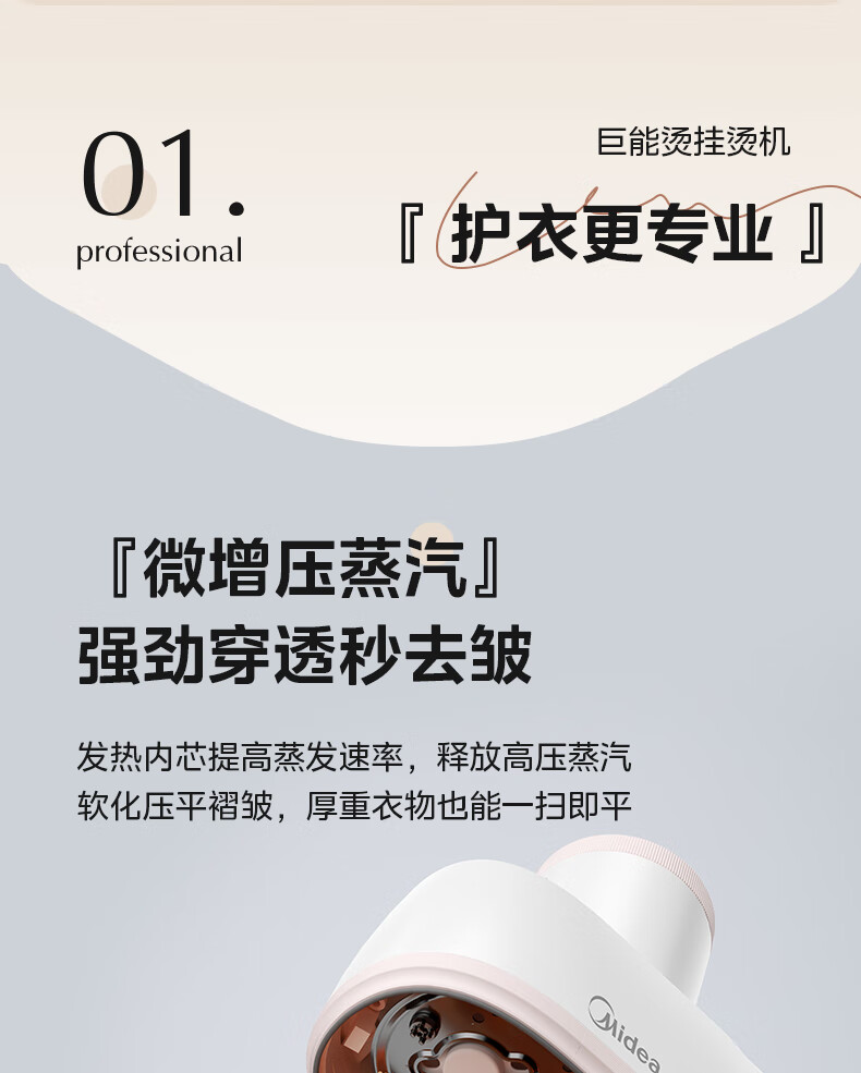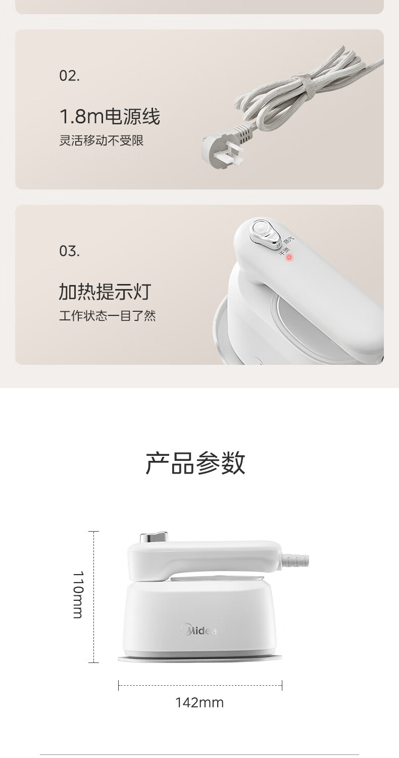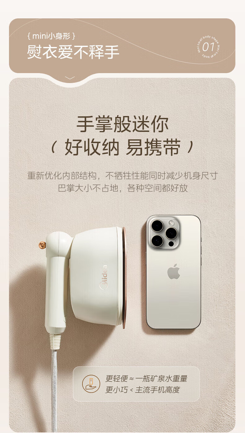 美的(Midea)【高效除菌除螨】手持挂烫机家用熨烫机迷你烫衣机电熨斗便携式迷你旅行熨烫机 【高性价比】可折叠YS-10T1