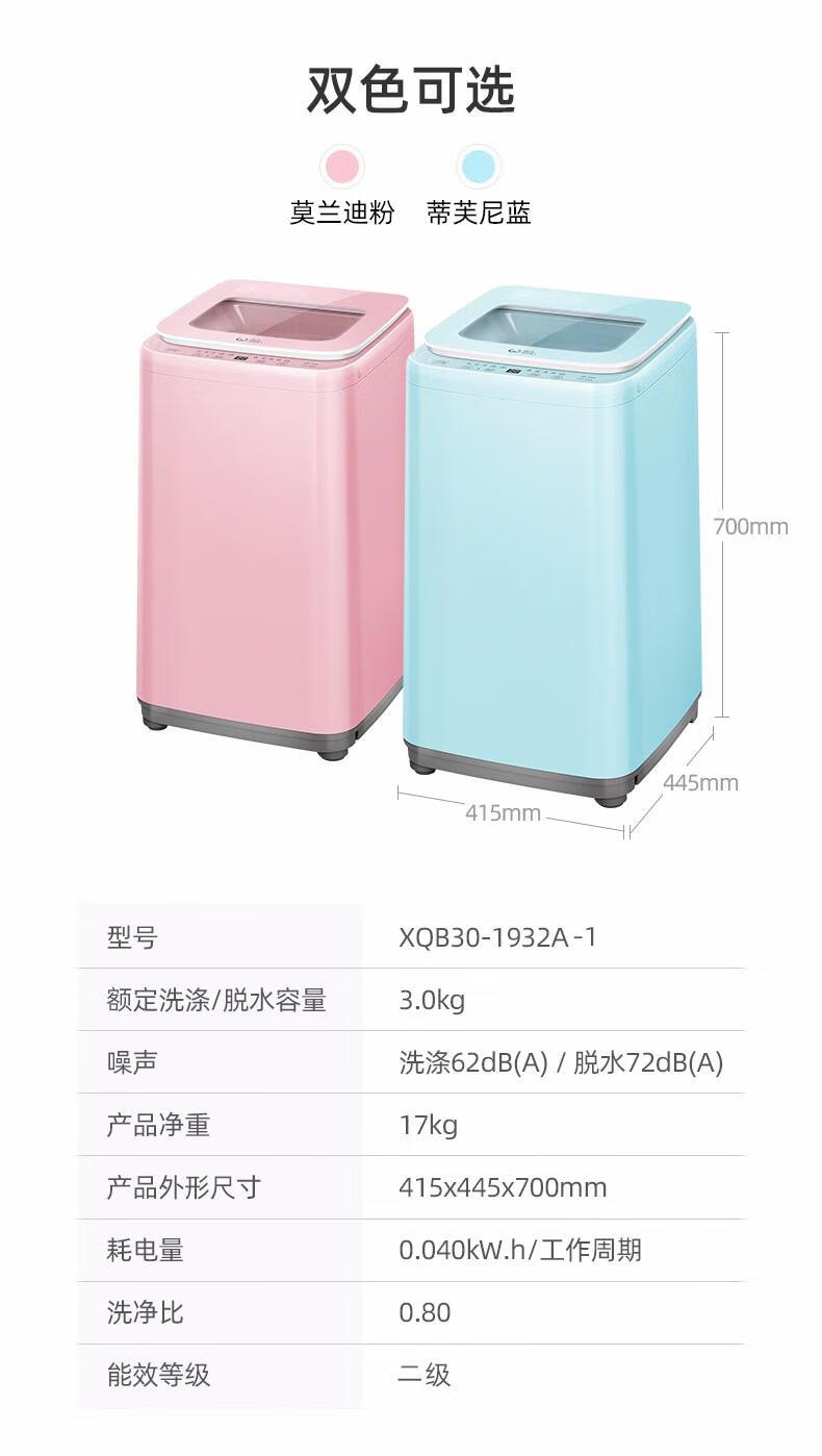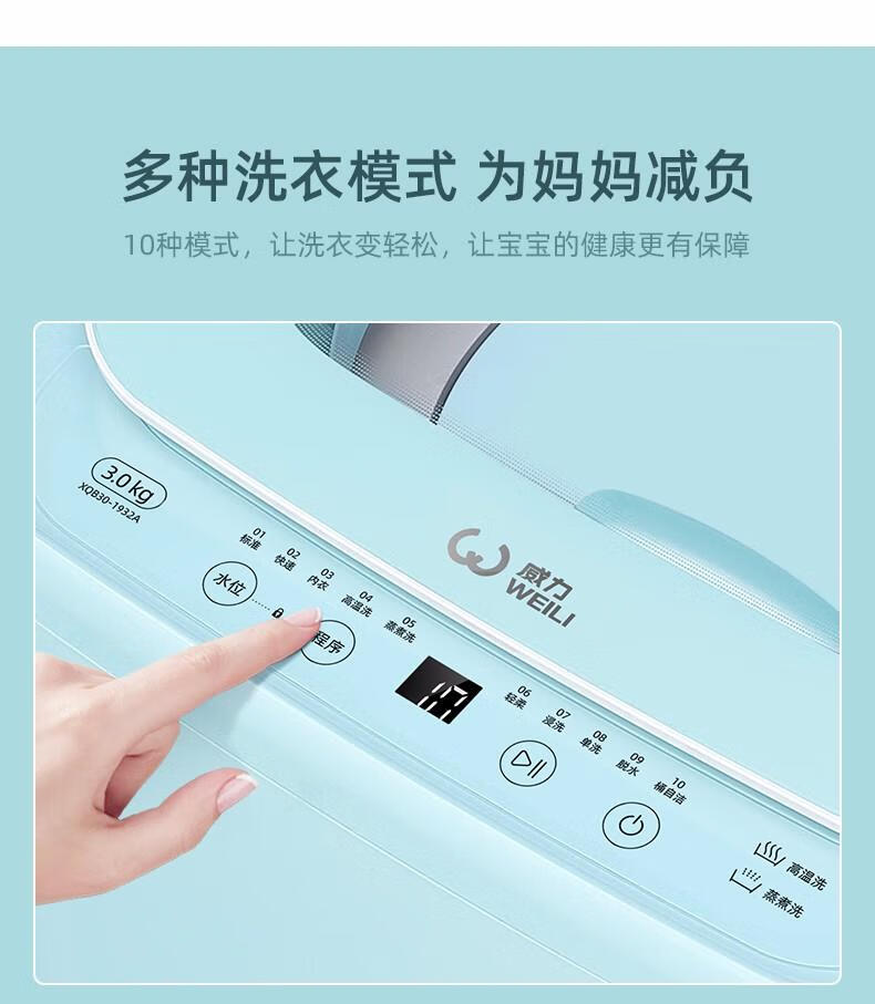 威力(WEILI)【威力母婴洗】宝妈神器3公斤全自动波轮洗衣机小型迷你内衣洗衣机高温蒸煮XQB30-1932A XQB30-1932A【蒸煮洗-蓝色】