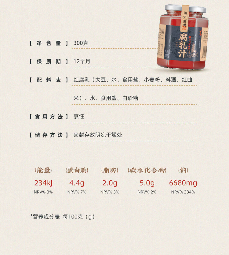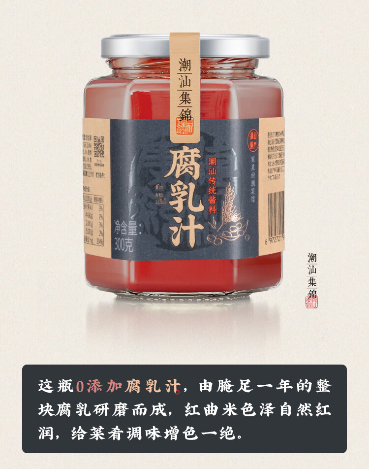 潮汕集锦 南乳汁正宗汕头特产蘸料腐乳汁酱红烧肉东坡肉炖肉调味料300g/瓶