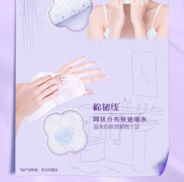 橘子柚子一次性洗脸巾绵柔巾洁面巾抽取式干湿两用珍珠纹擦脸巾 100抽2袋 丨壁挂式