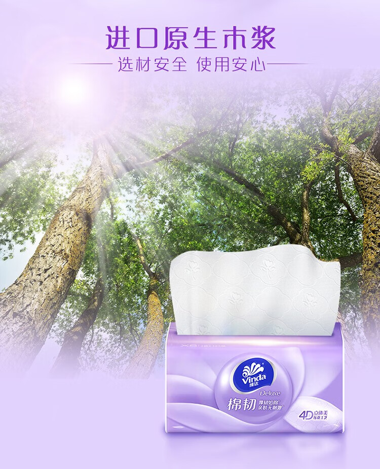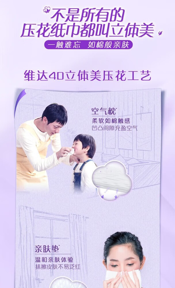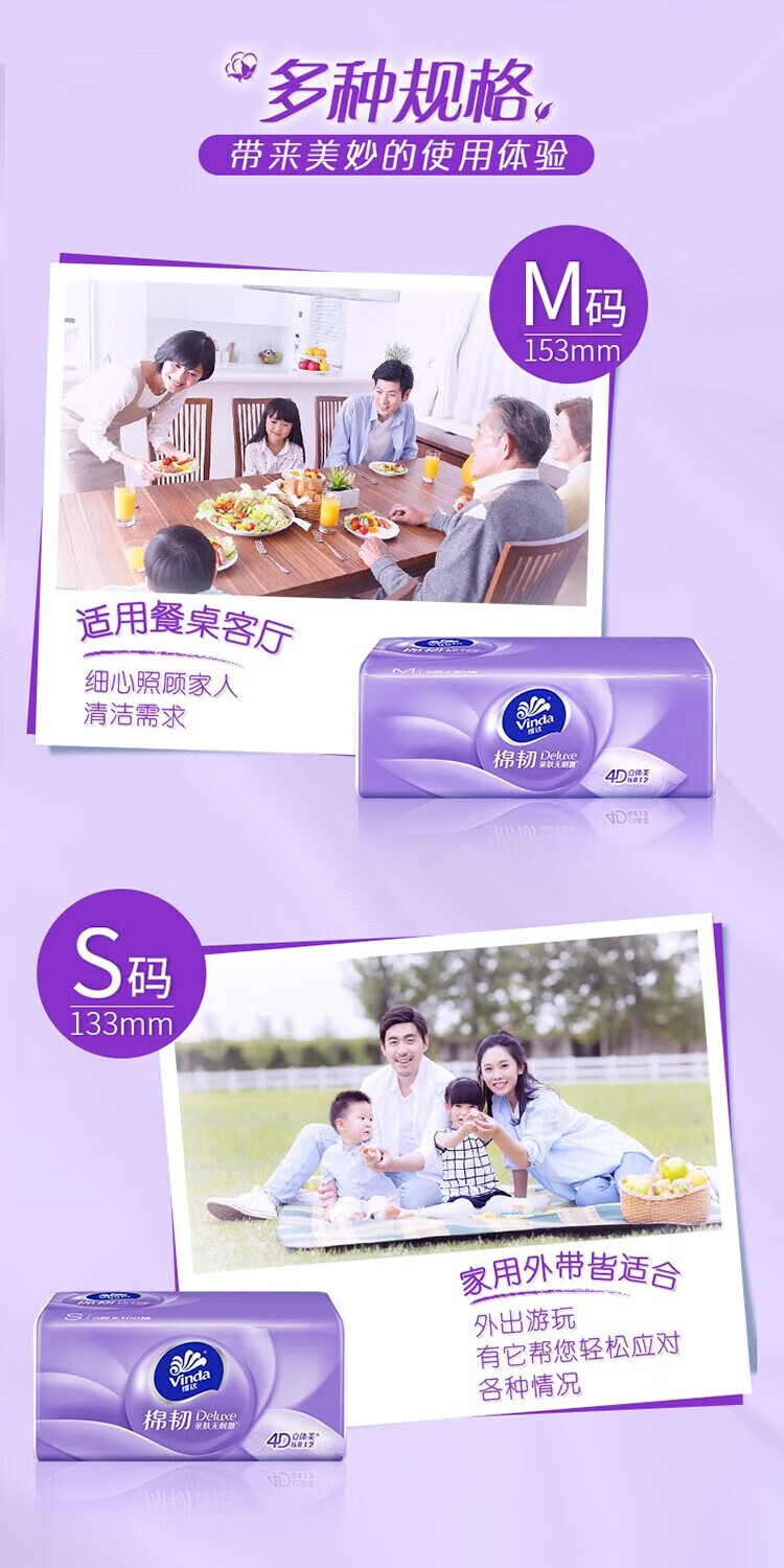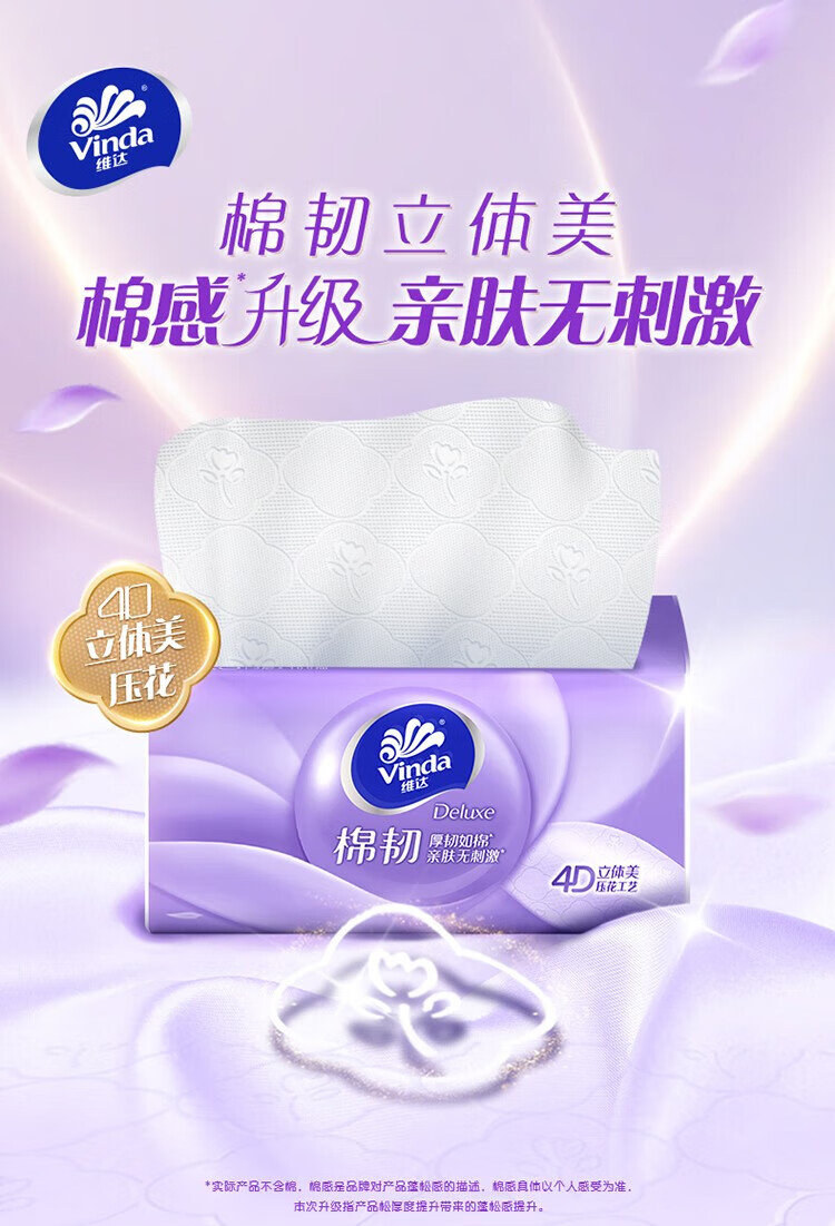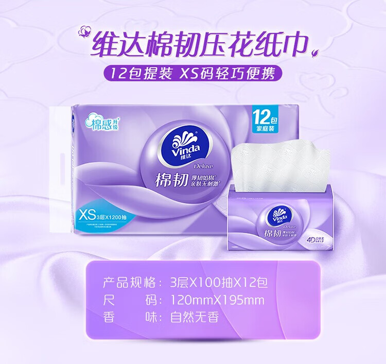 维达(Vinda)抽纸棉韧立体美XS码 3层100抽纸巾家用卫生纸hd 3层 100抽*2包