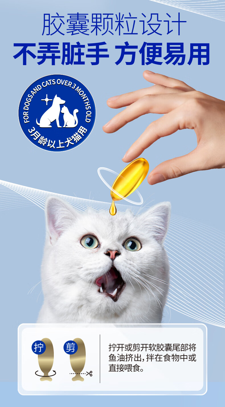 萌护卫 深海鱼油狗狗猫咪美毛亮毛防掉毛浓缩胶囊平替卵磷脂 1瓶【狗用】增强版鱼油30粒/1瓶 【不吃可退】