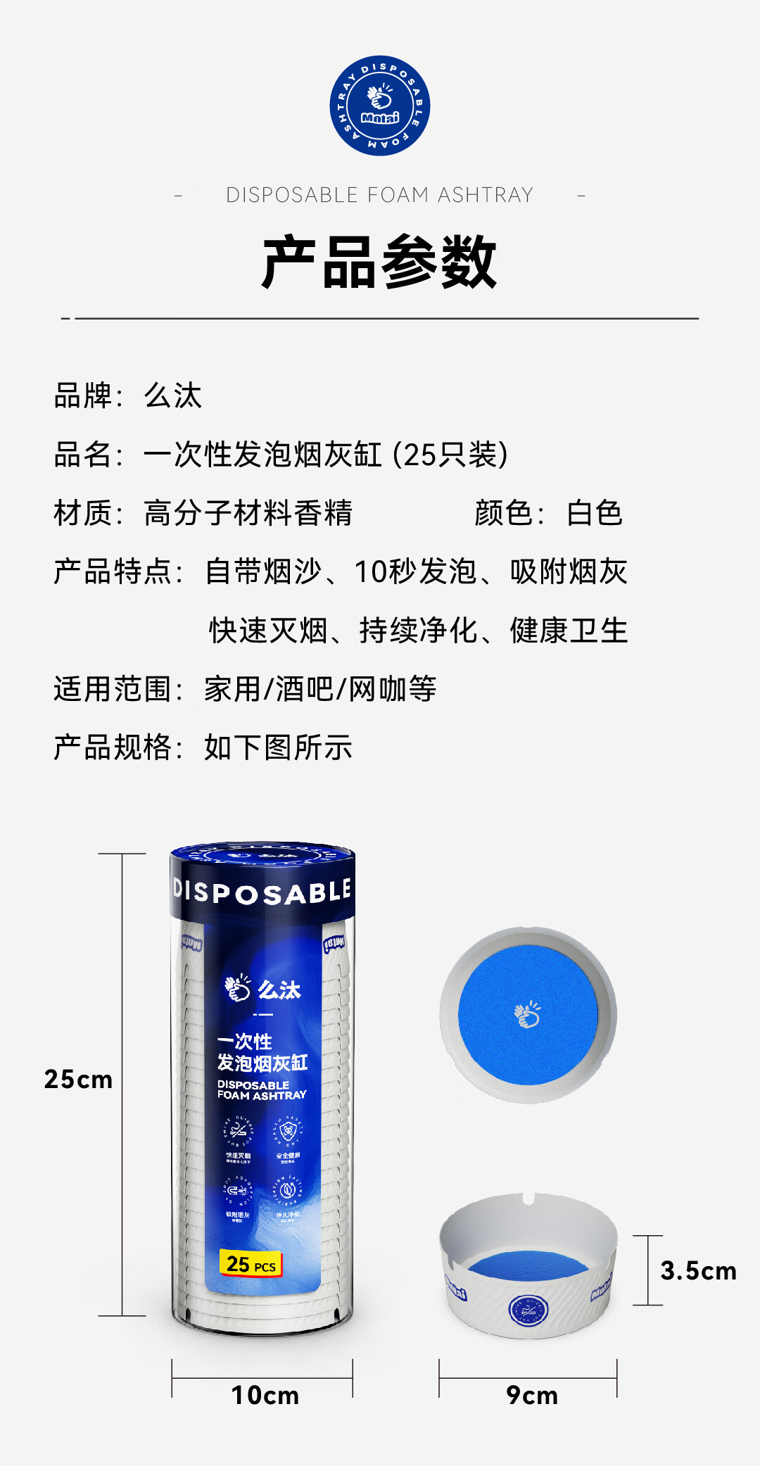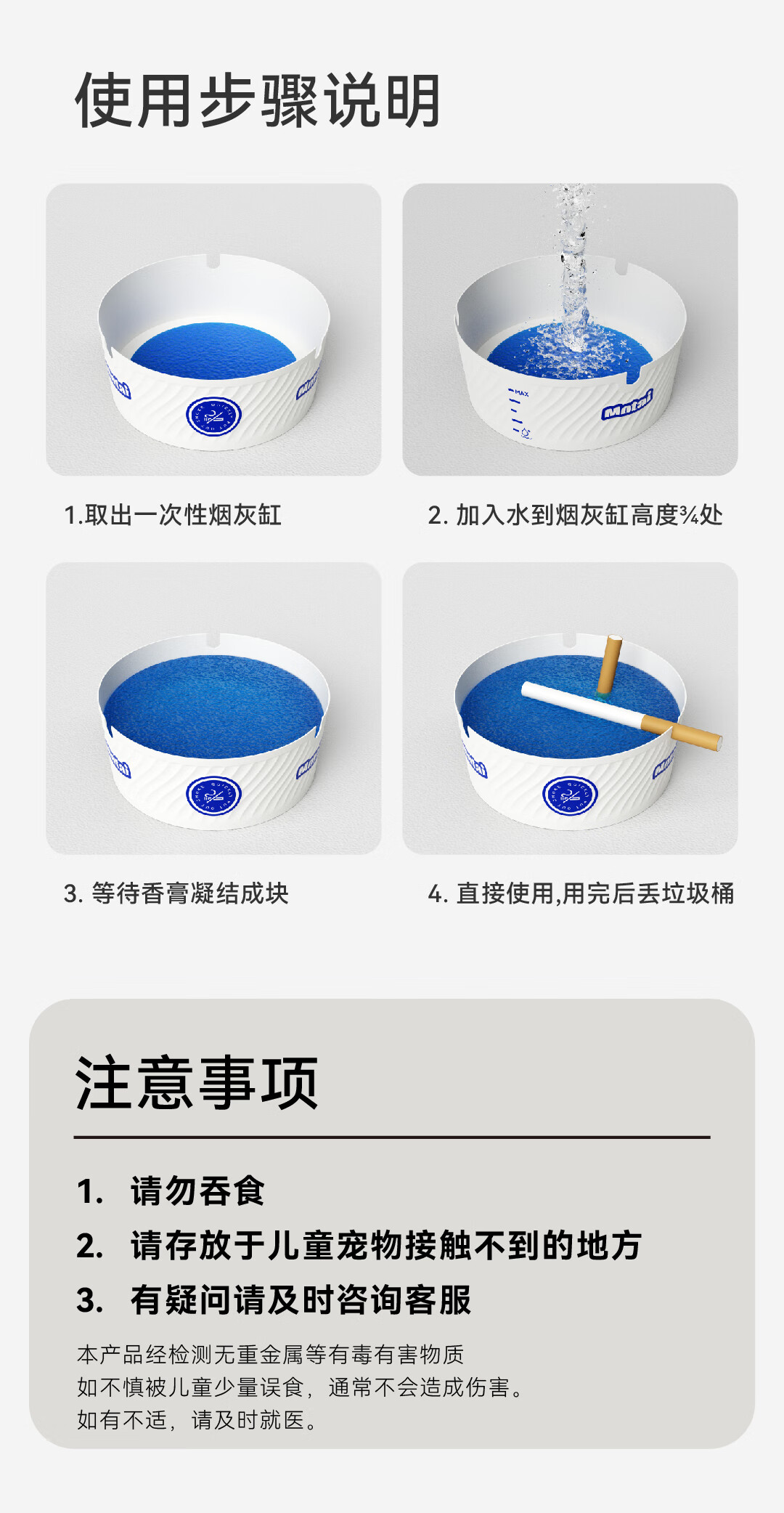 么汰自带灭烟沙一次性烟灰缸泥清洁剂办公室吸附防飞灰便携家用 4筒装100只【自带灭烟沙】