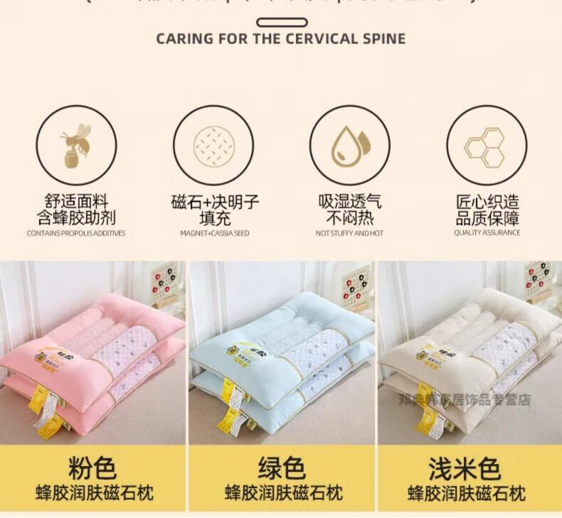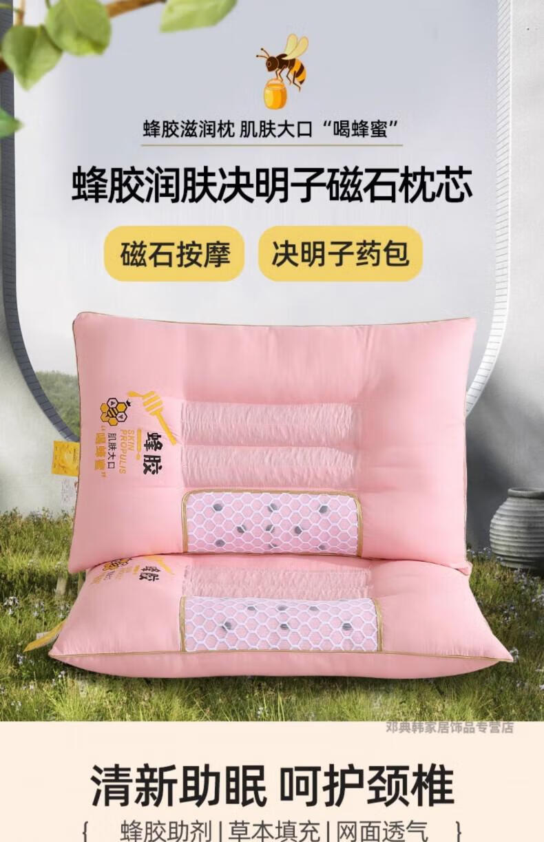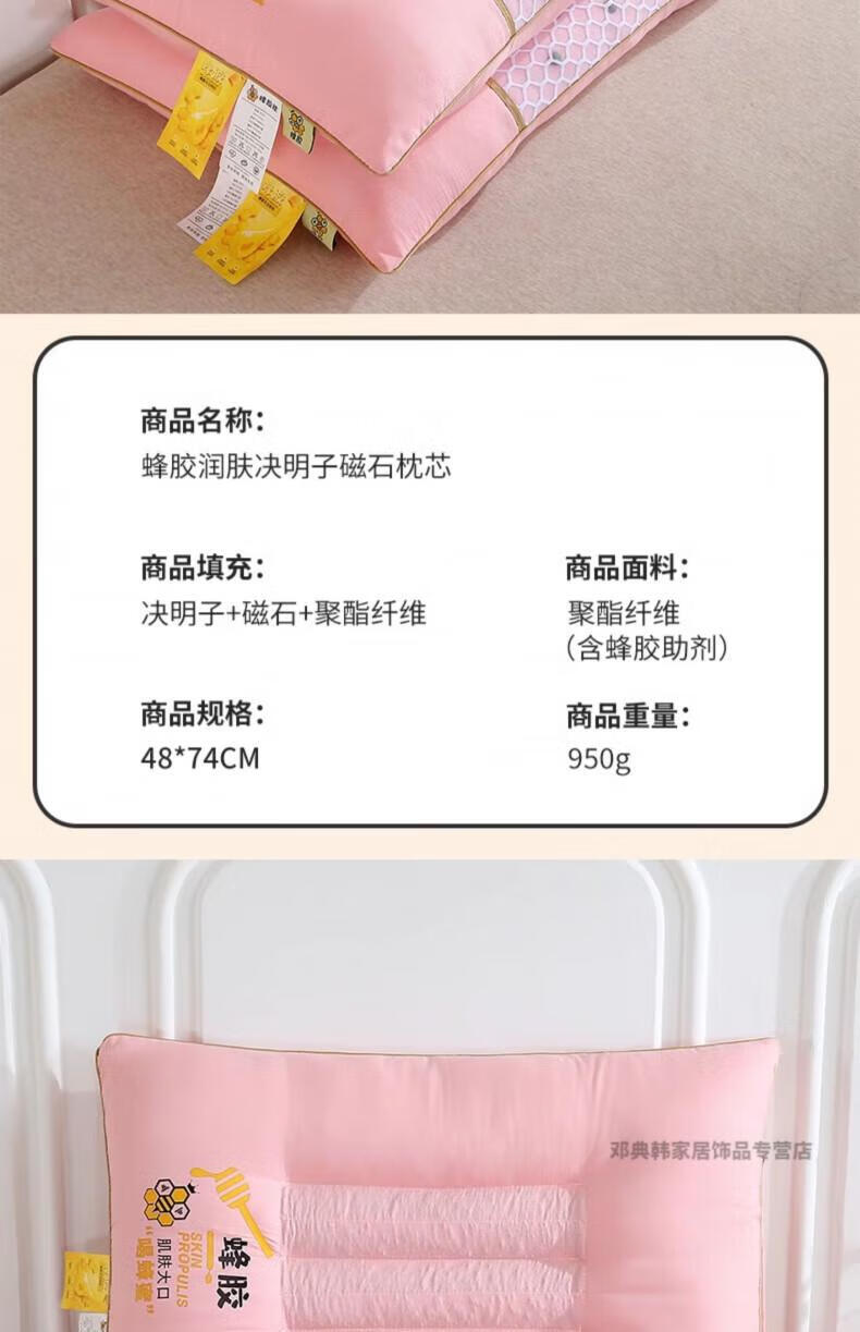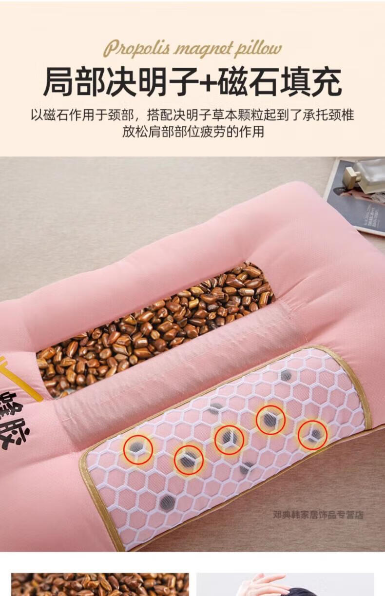 DEATKN德国决明子荞麦枕头护颈椎枕助睡眠成人枕芯家用一对侧睡低整头 决明子润肤磁石高枕-浅米色【单