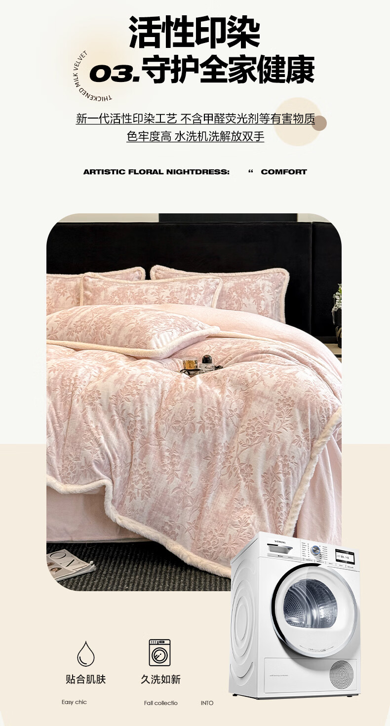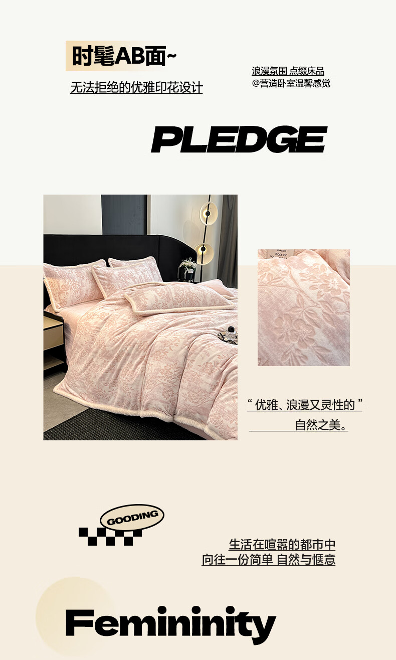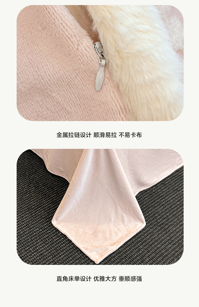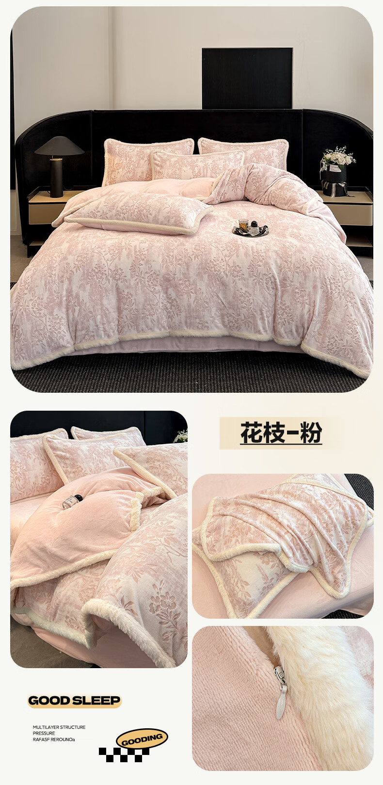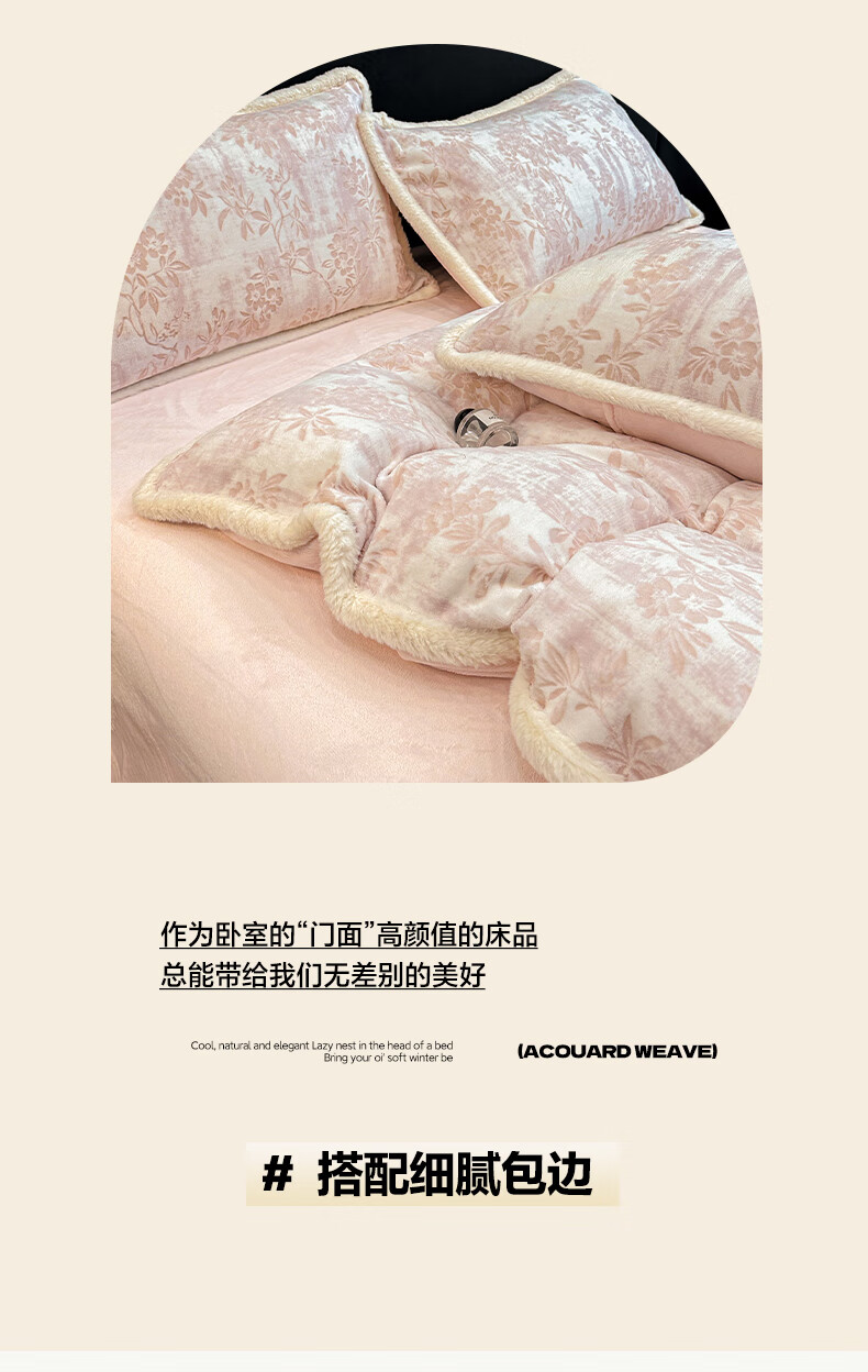 苏萱A类雕花牛奶绒四件套2025新款加绒被套床单人兔毛绒包边床上用品4 花枝-粉 1.8m 床单款 四件套-被套200x230cm