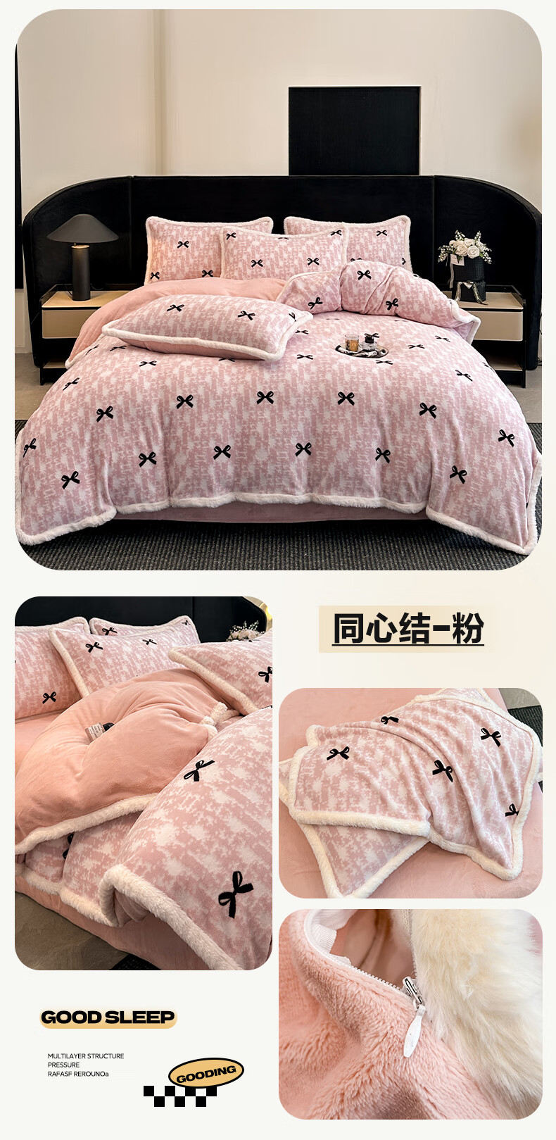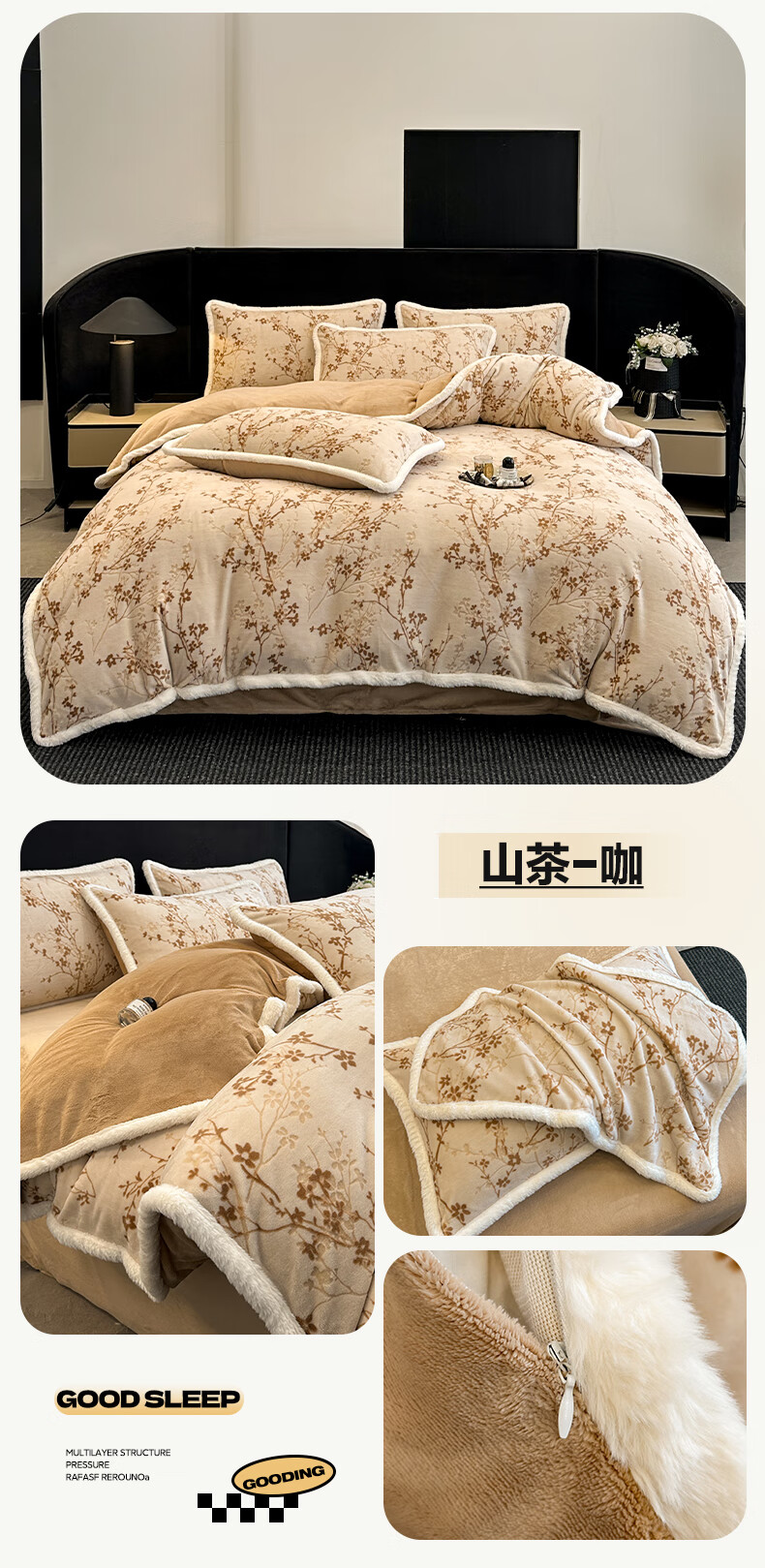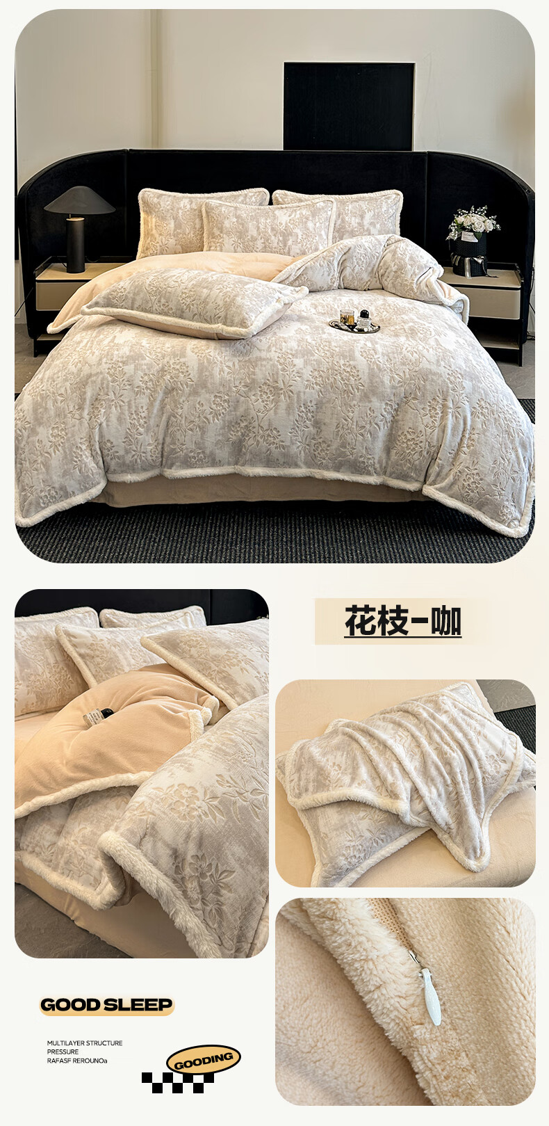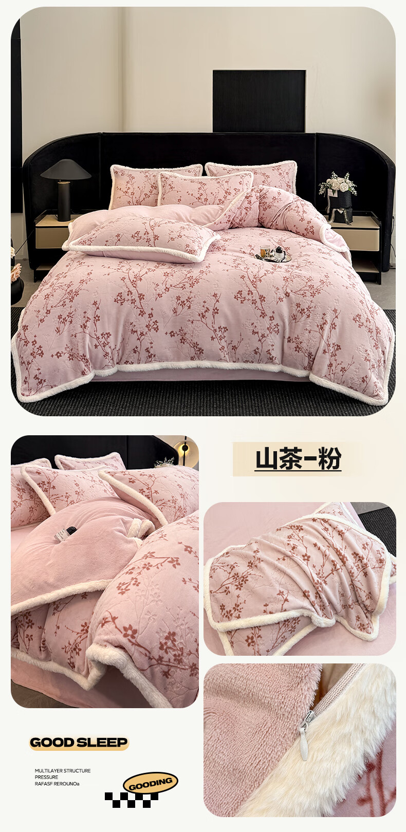 苏萱A类雕花牛奶绒四件套2025新款加绒被套床单人兔毛绒包边床上用品4 花枝-粉 1.8m 床单款 四件套-被套200x230cm
