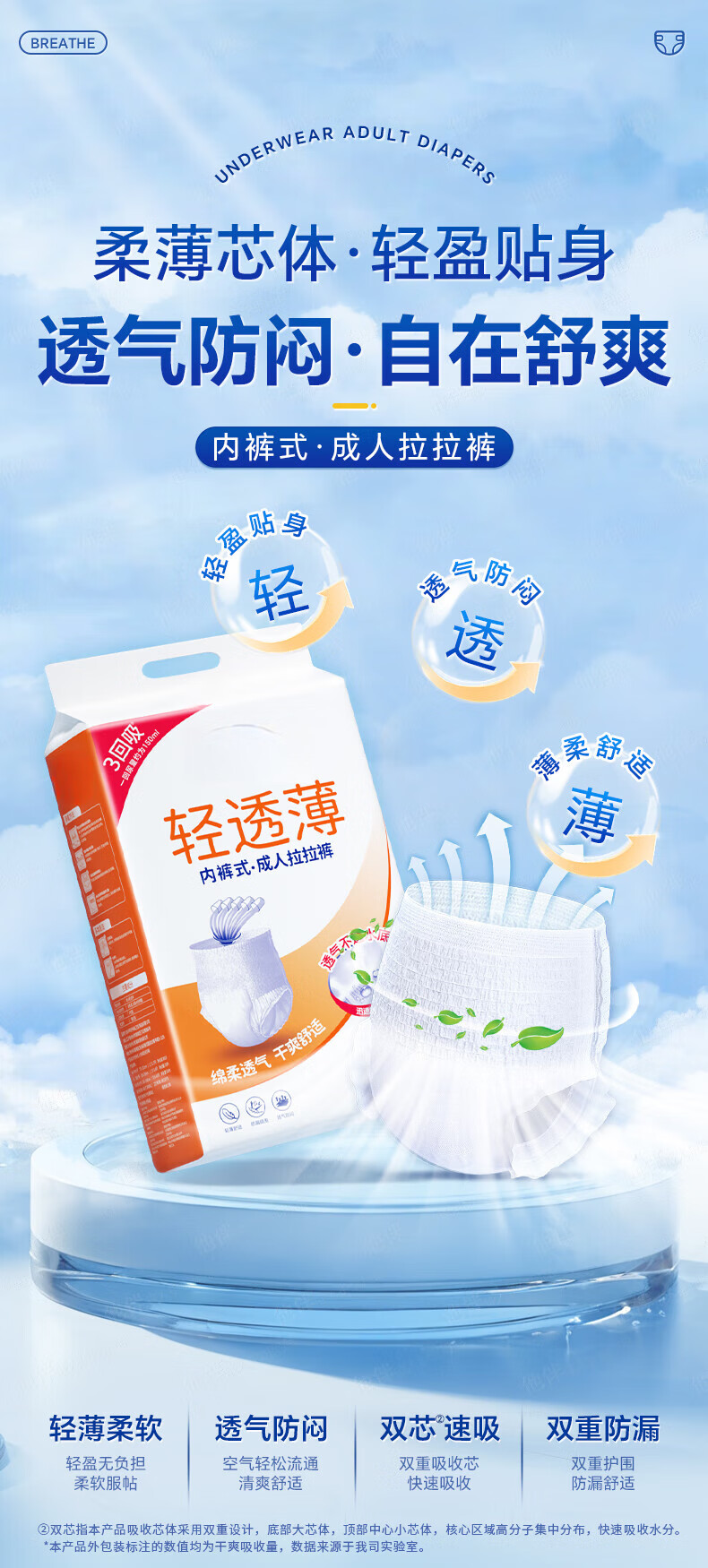 AILUKI日本80片透气款成人拉拉裤老人用大吸量纸尿裤老年人专用男女士尿 L
