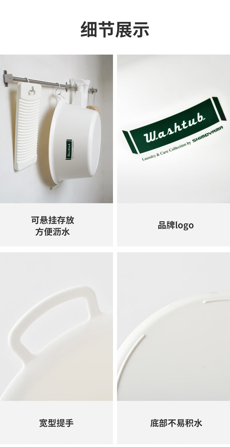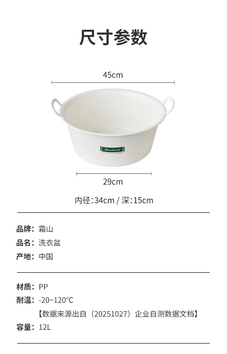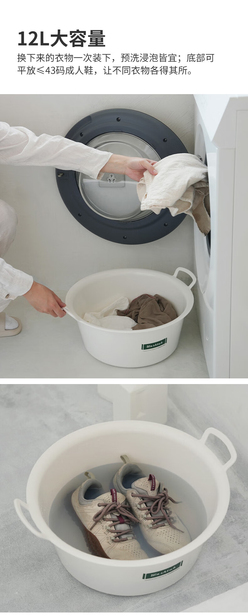 霜山洗衣盆家用大号塑料盆加厚耐用洗鞋盆宿舍带提手水盆34cm 【12L】洗衣盆-内径34*深15cm