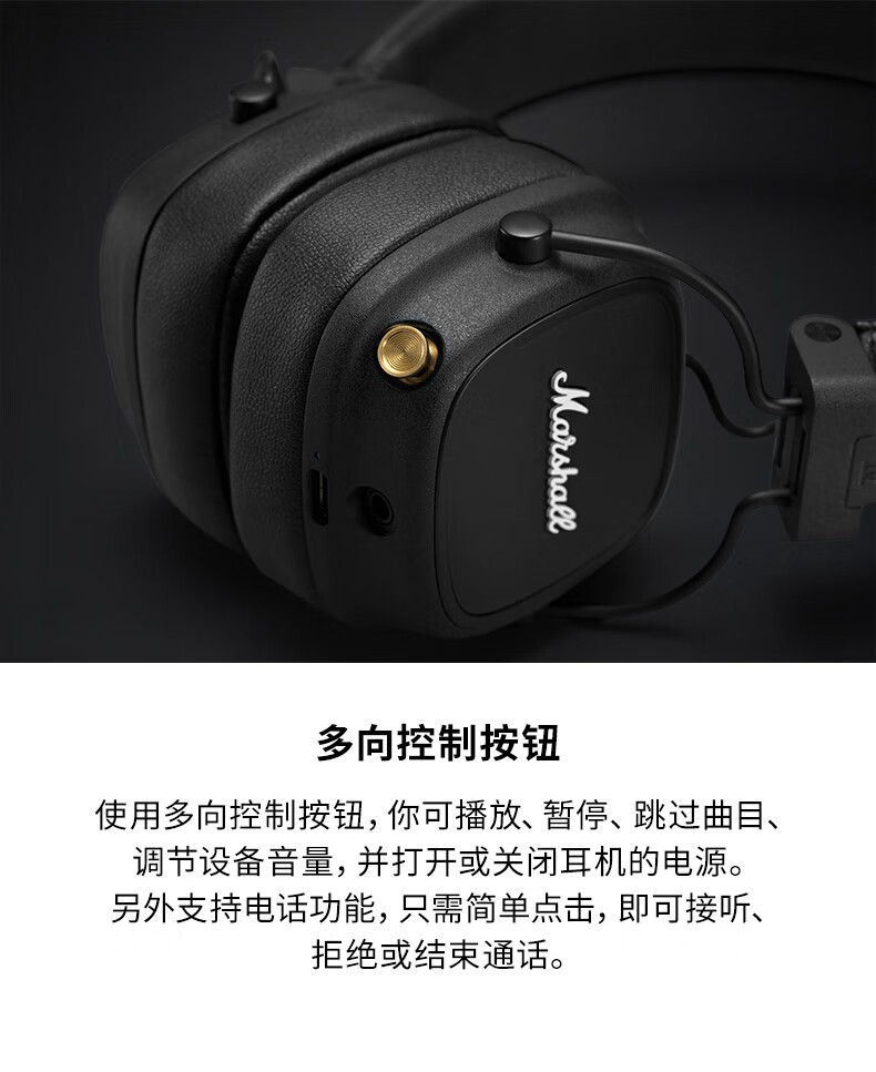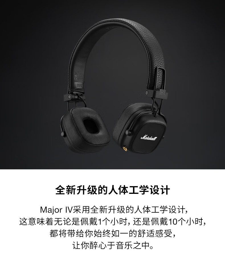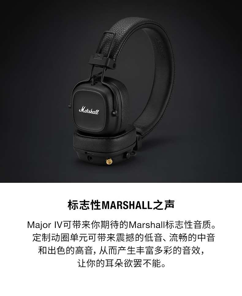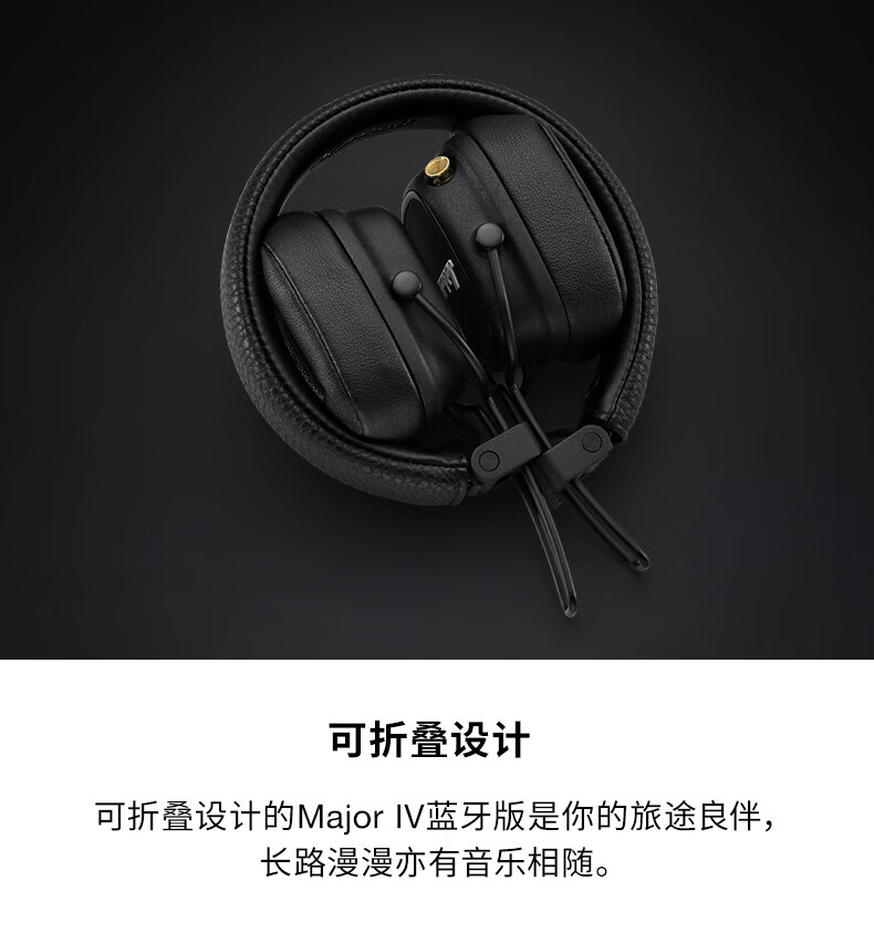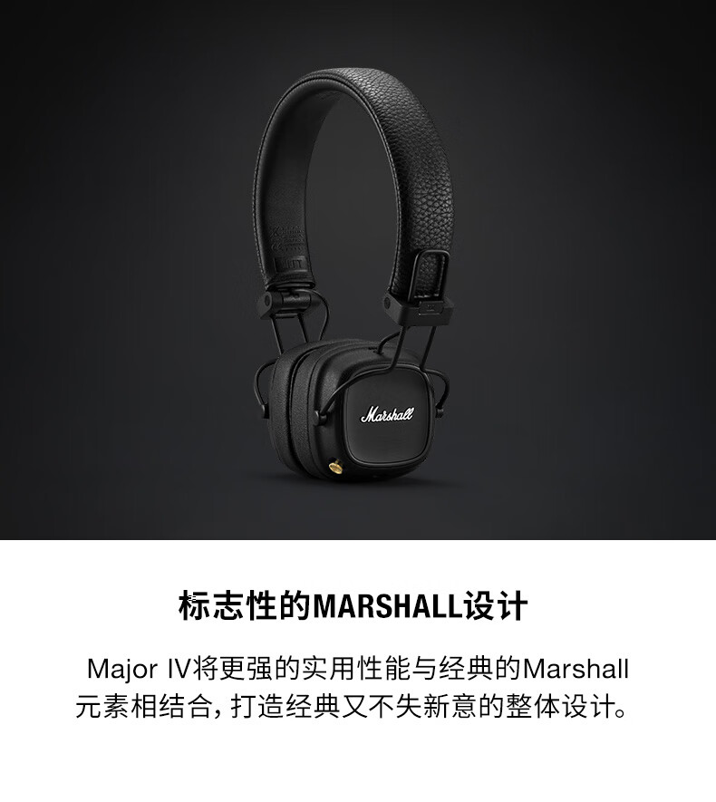 MARSHALL(马歇尔)MAJOR IV耳机头戴式无线蓝牙重低音户外礼物可折叠4代耳麦 黑色