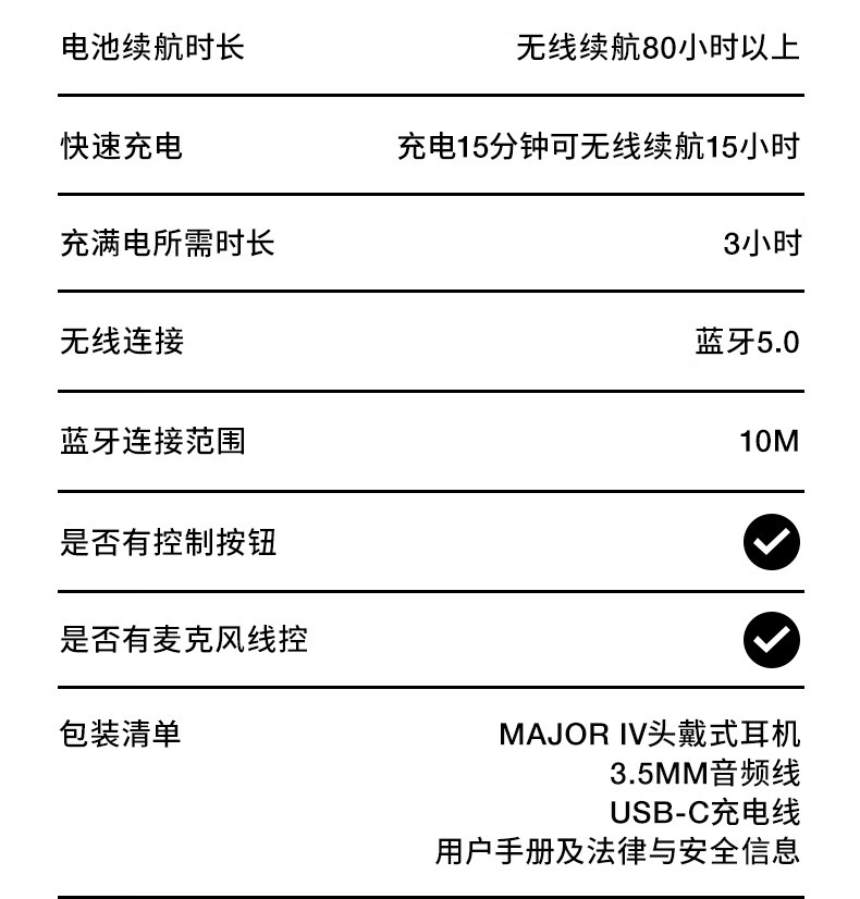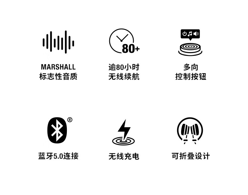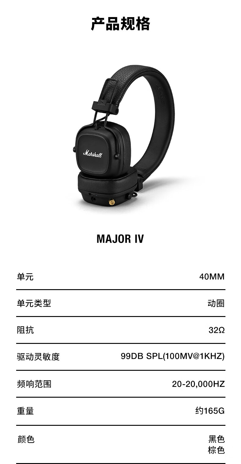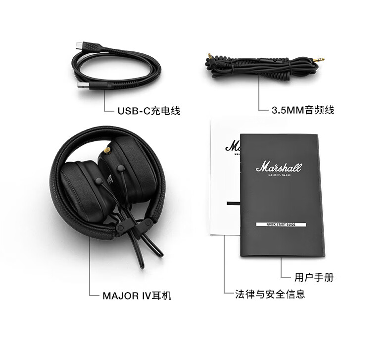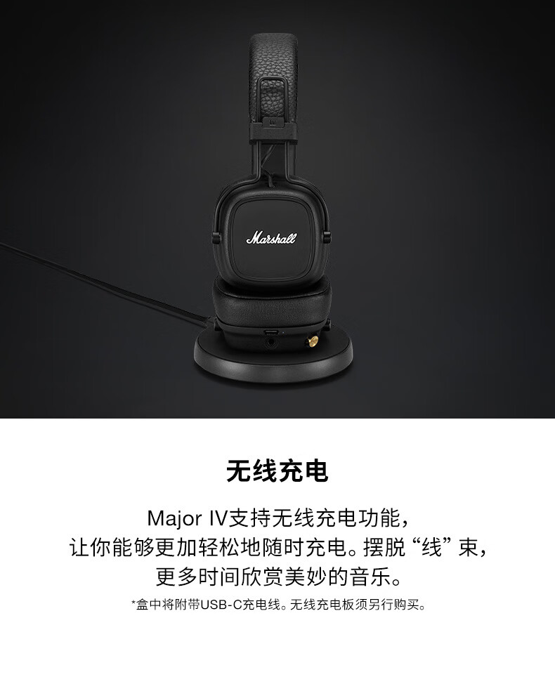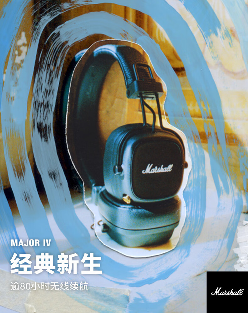 MARSHALL(马歇尔)MAJOR IV耳机头戴式无线蓝牙重低音户外礼物可折叠4代耳麦 黑色