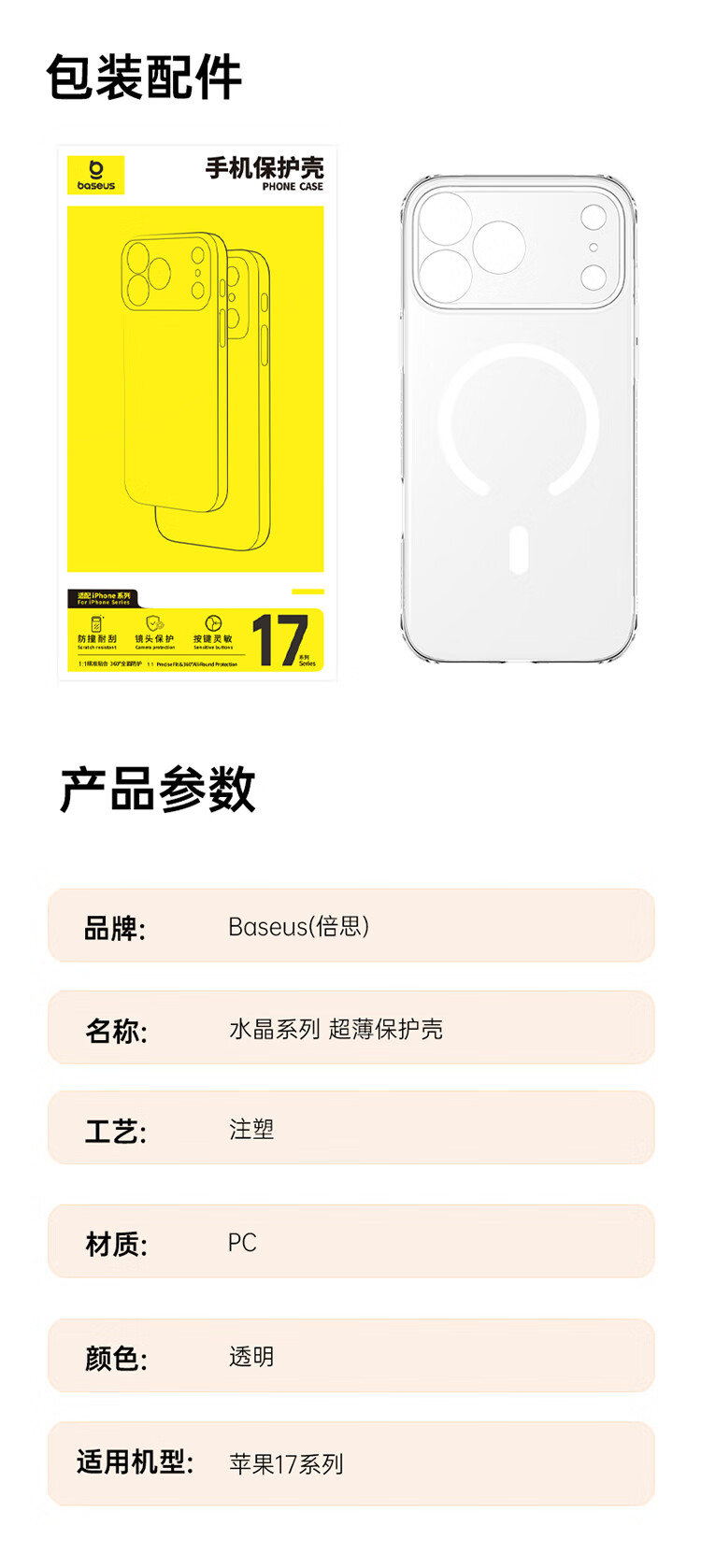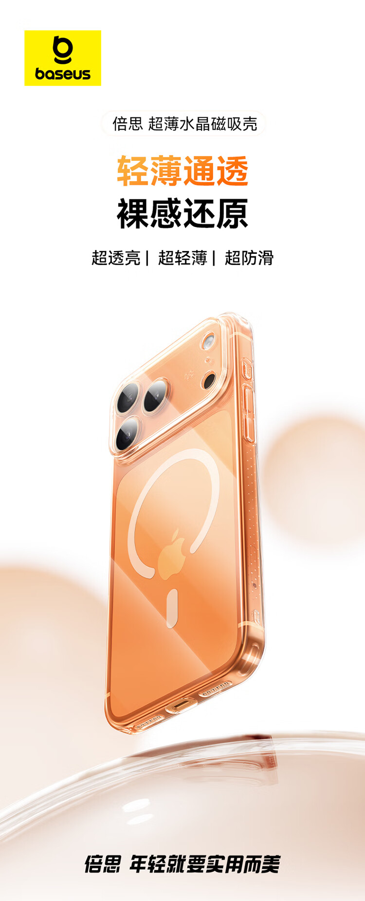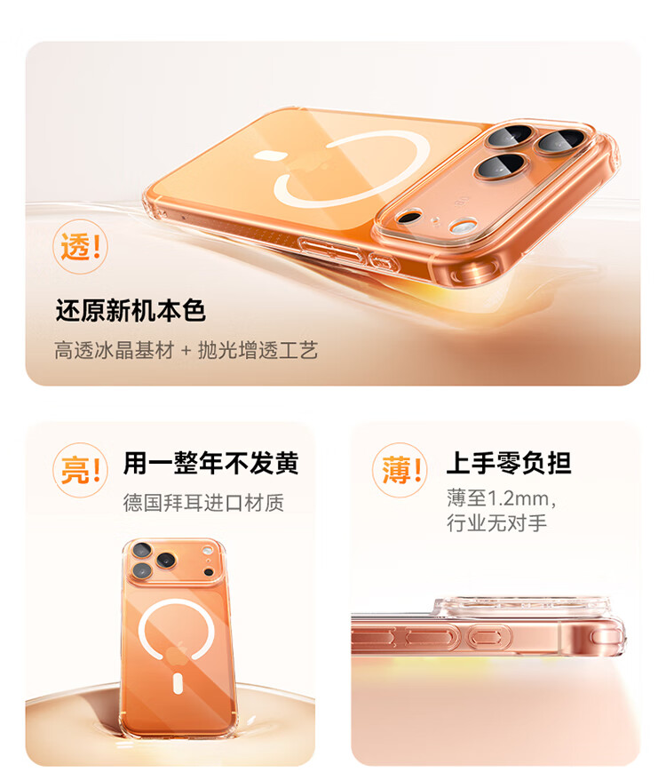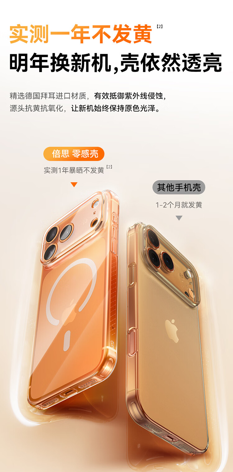 倍思【销量100W|冰透磁吸|发黄秒退】适用iphone17promax手机壳苹果17promax保护套全包磁吸透明防摔