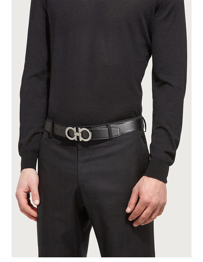 菲拉格慕(Ferragamo)男士黑色双面可调式Gancini皮带 0689134_C _ 110(礼物送男友)