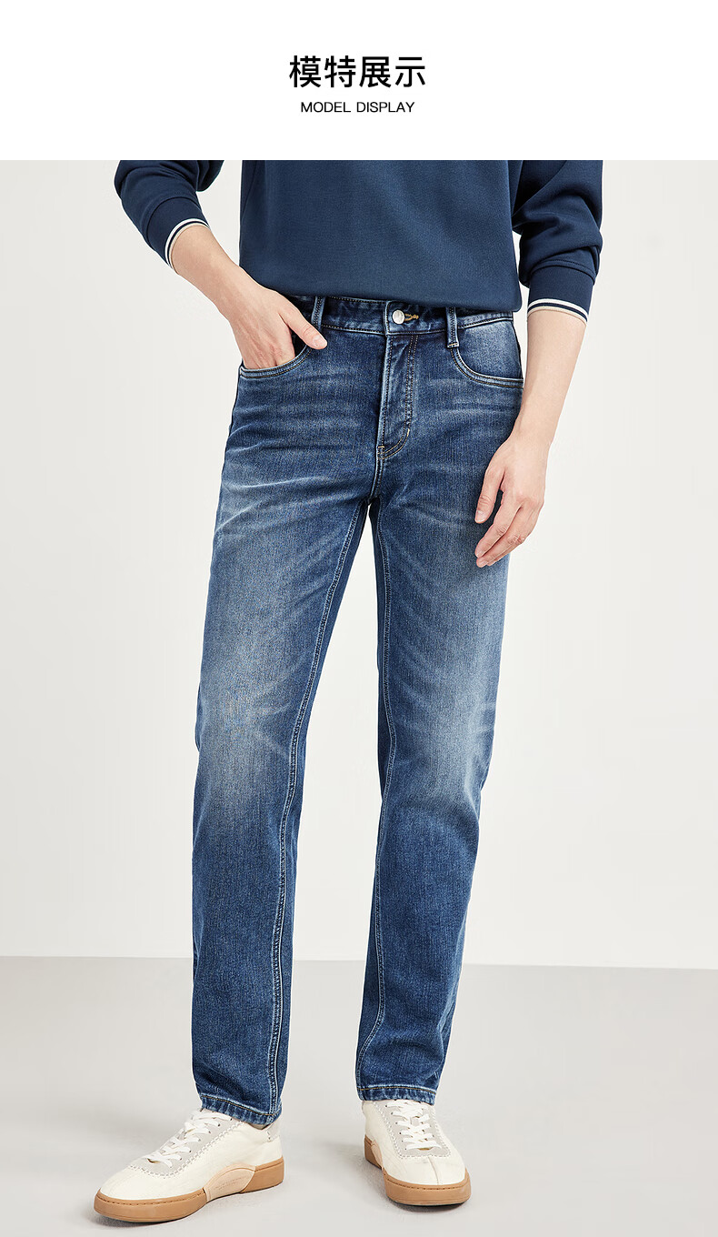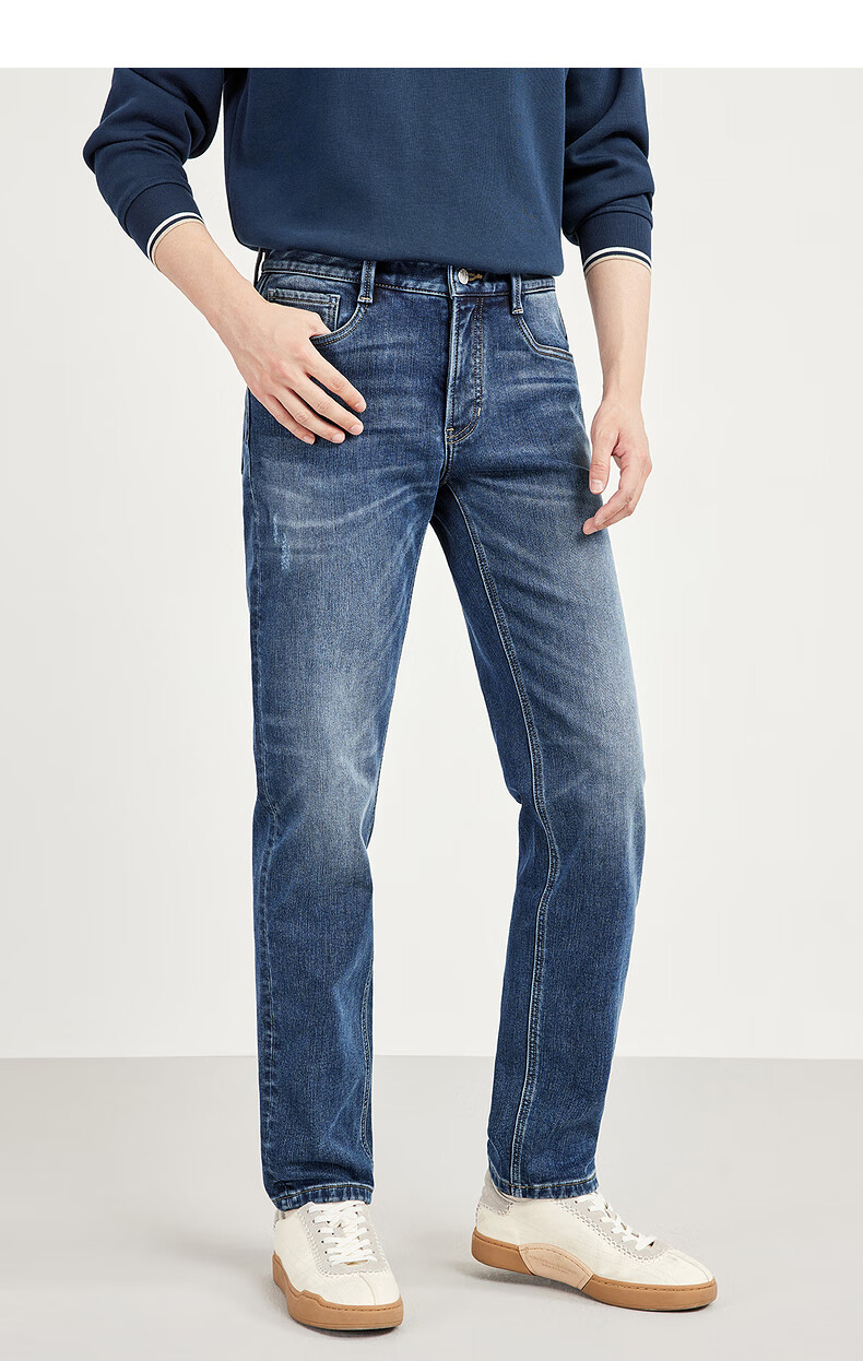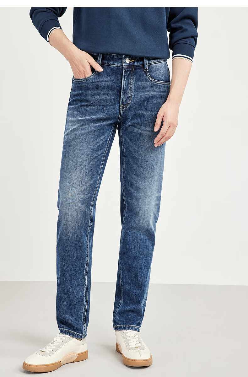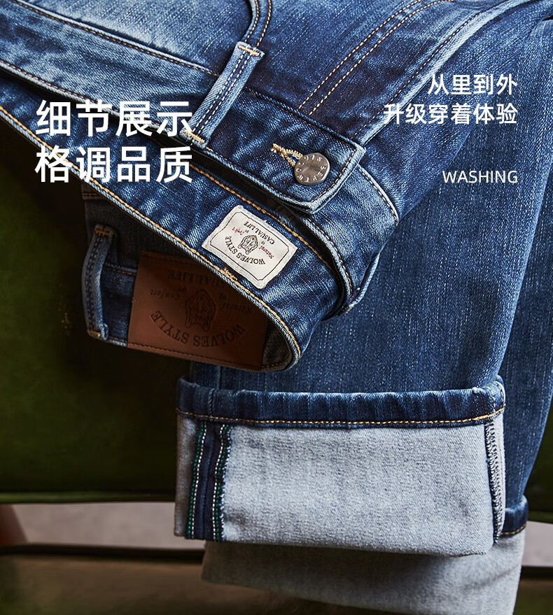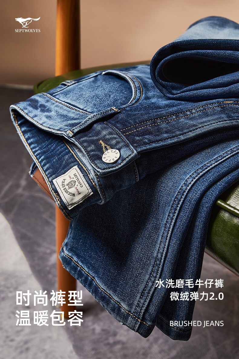 七匹狼牛仔裤男士秋冬磨毛厚款防寒保暖弹力水洗耐穿耐磨牛仔长裤子