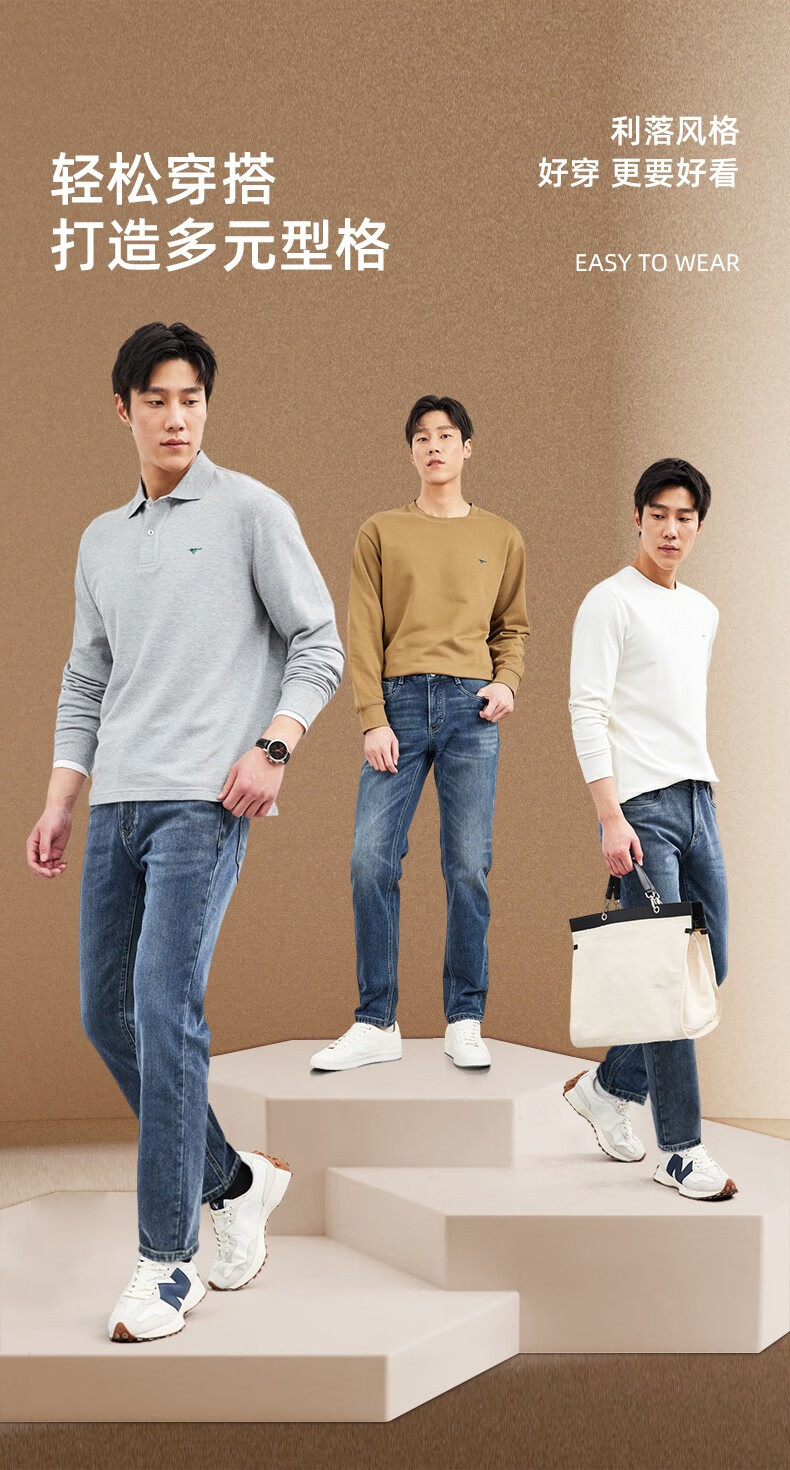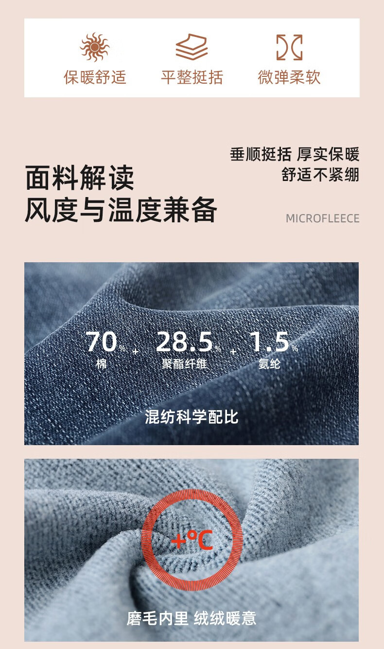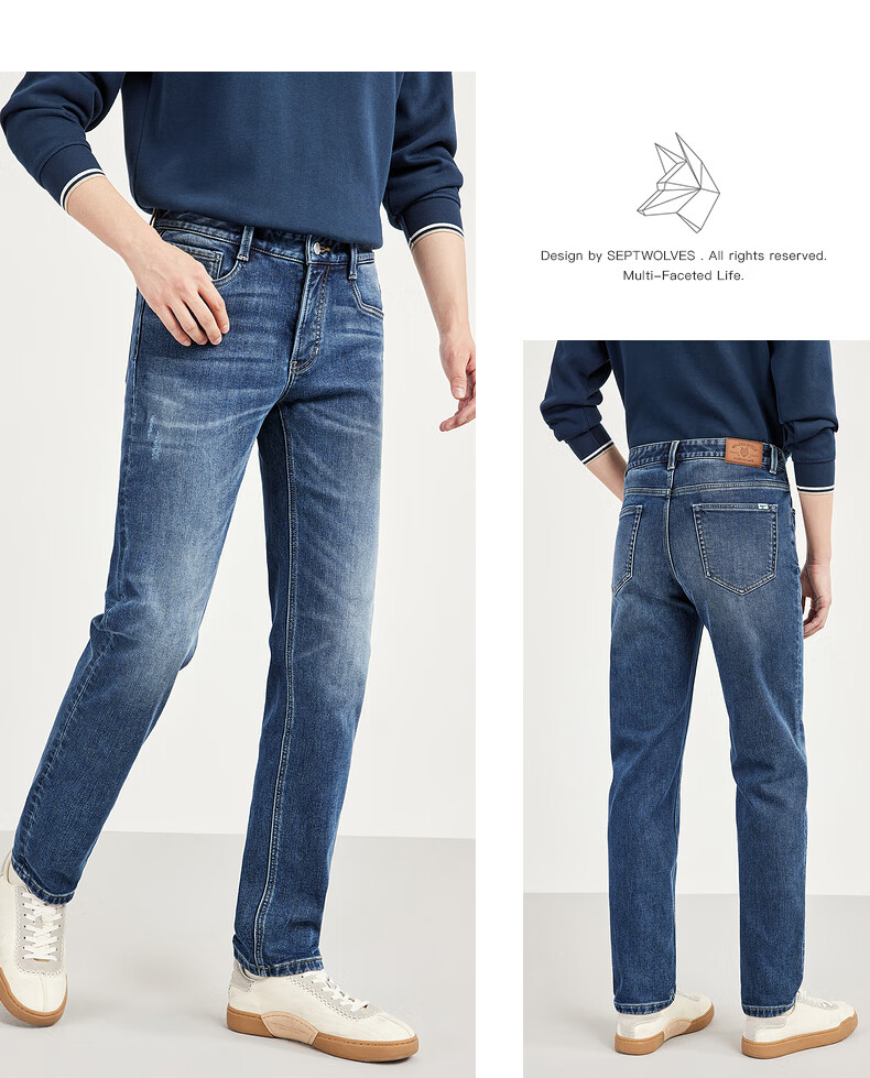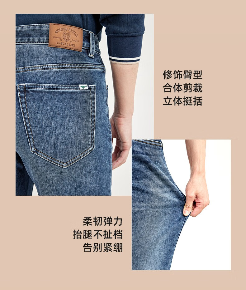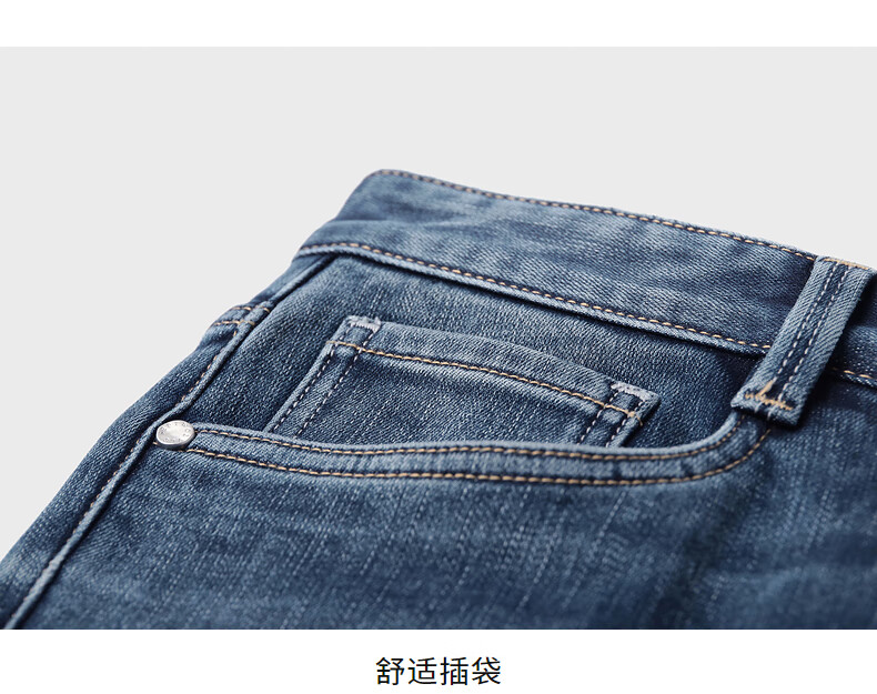 七匹狼牛仔裤男士秋冬磨毛厚款防寒保暖弹力水洗耐穿耐磨牛仔长裤子