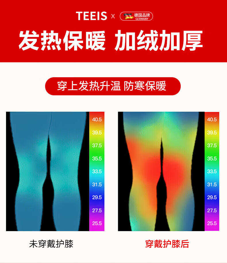 TEEIS德国护膝保暖老寒腿膝盖男女士专用关节炎发热中老年人加长厚运动 发热加厚保暖护膝【冬季热卖】 均码丨80-180斤通用 丨两只装