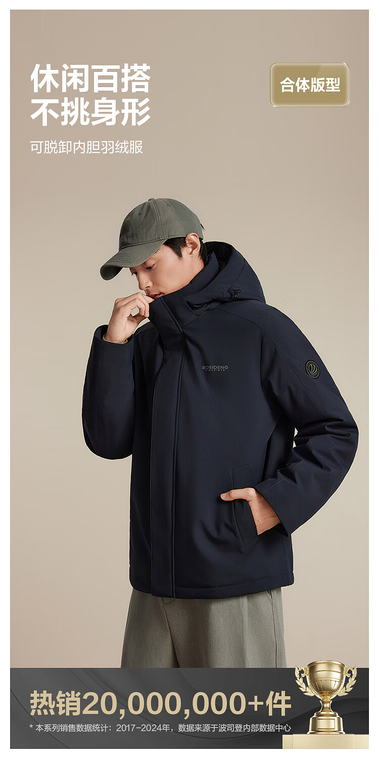 波司登25年羽绒服男士冬90绒加厚脱卸帽宽松短款休闲百搭保暖外套
