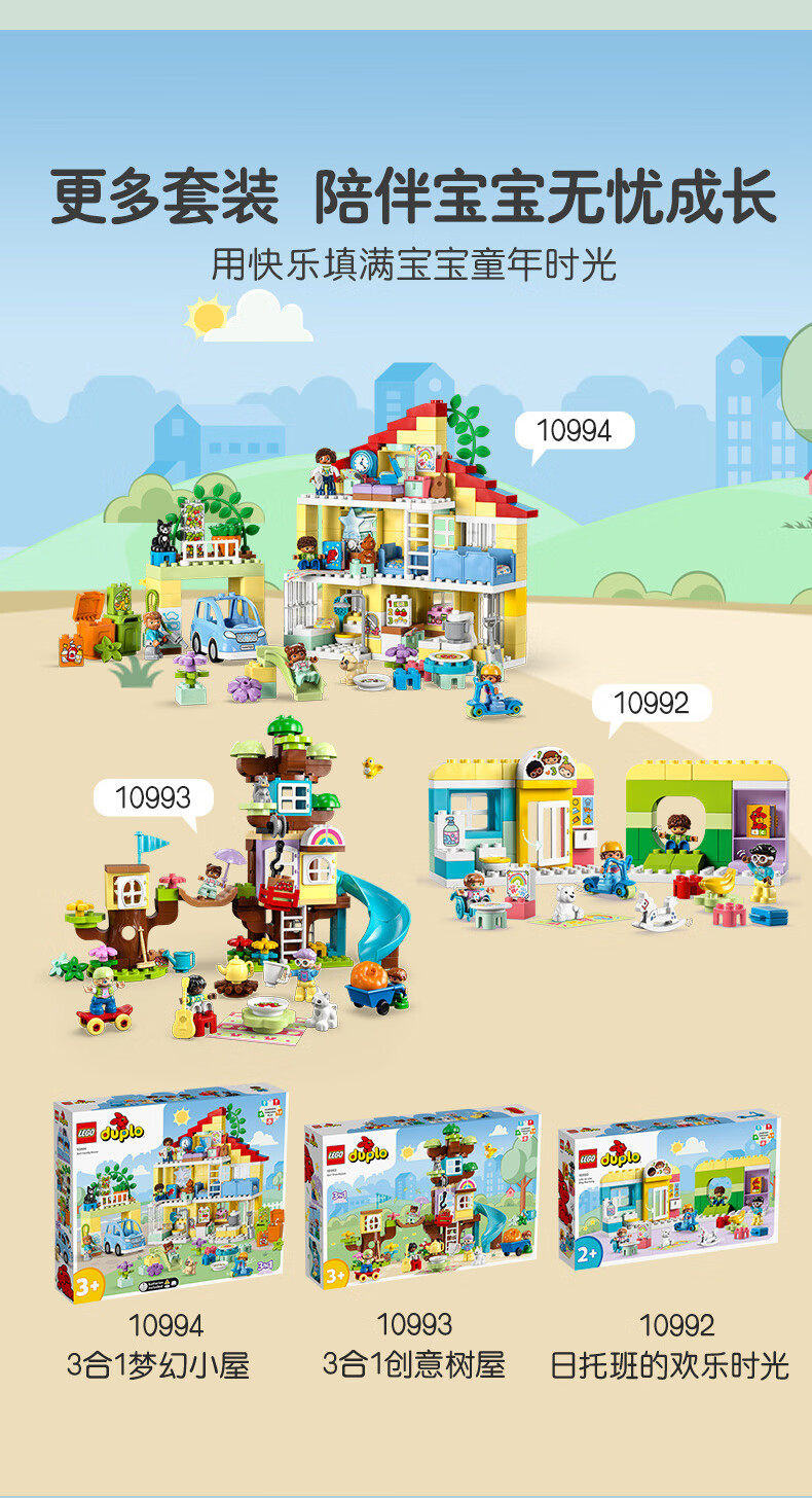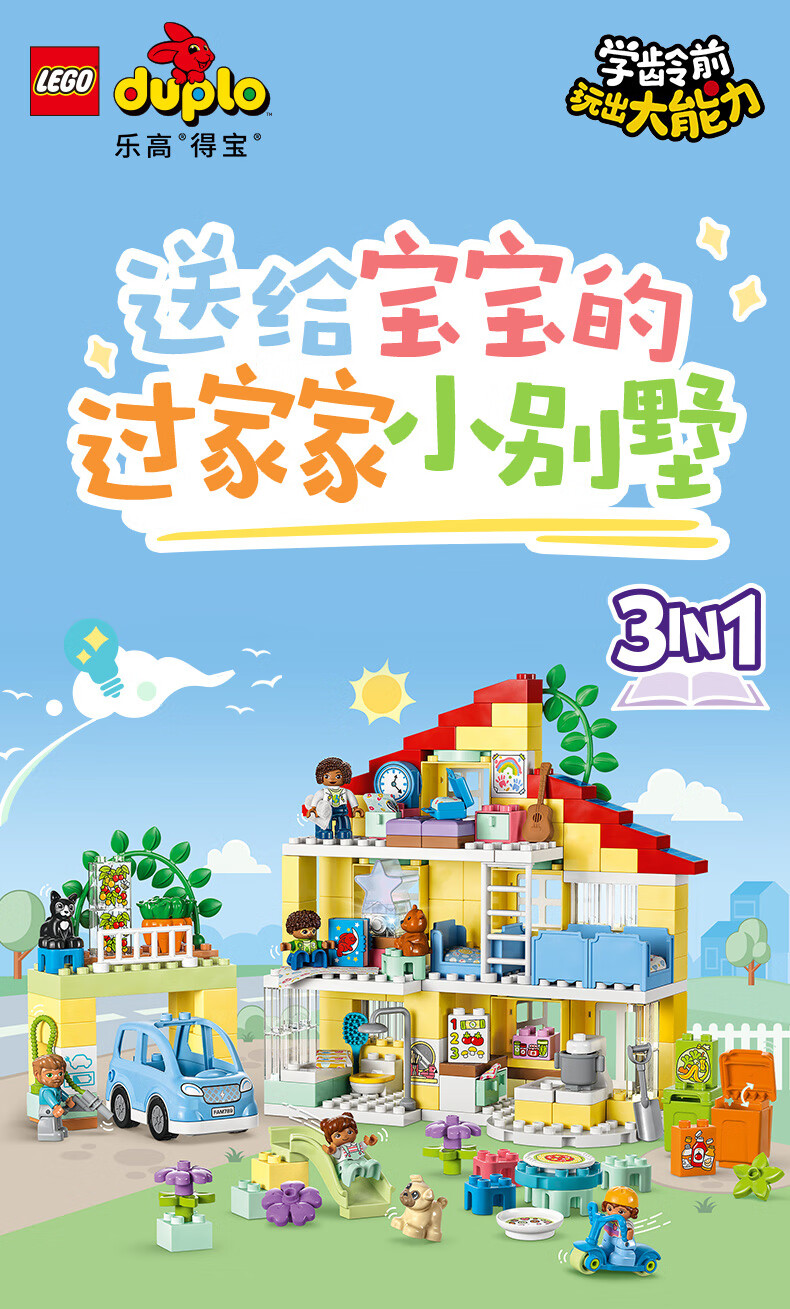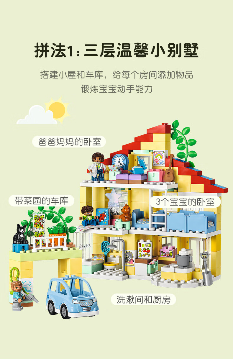 乐高(LEGO)积木拼装得宝10994 三合一梦幻小屋大颗粒积木桌儿童玩具圣诞礼物