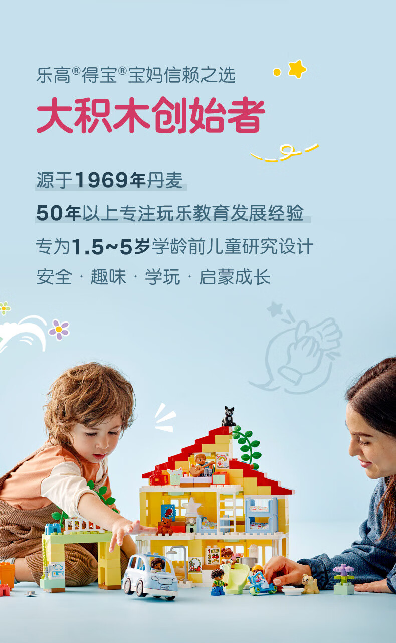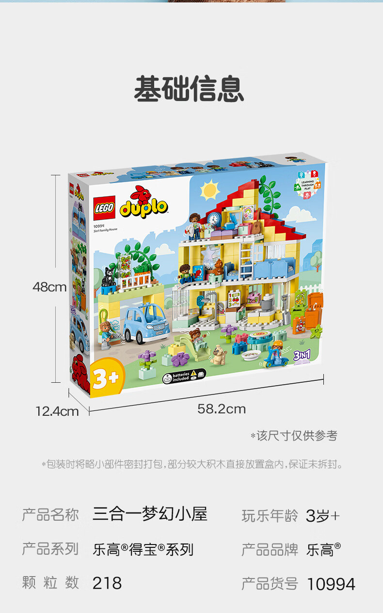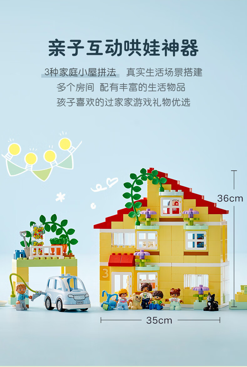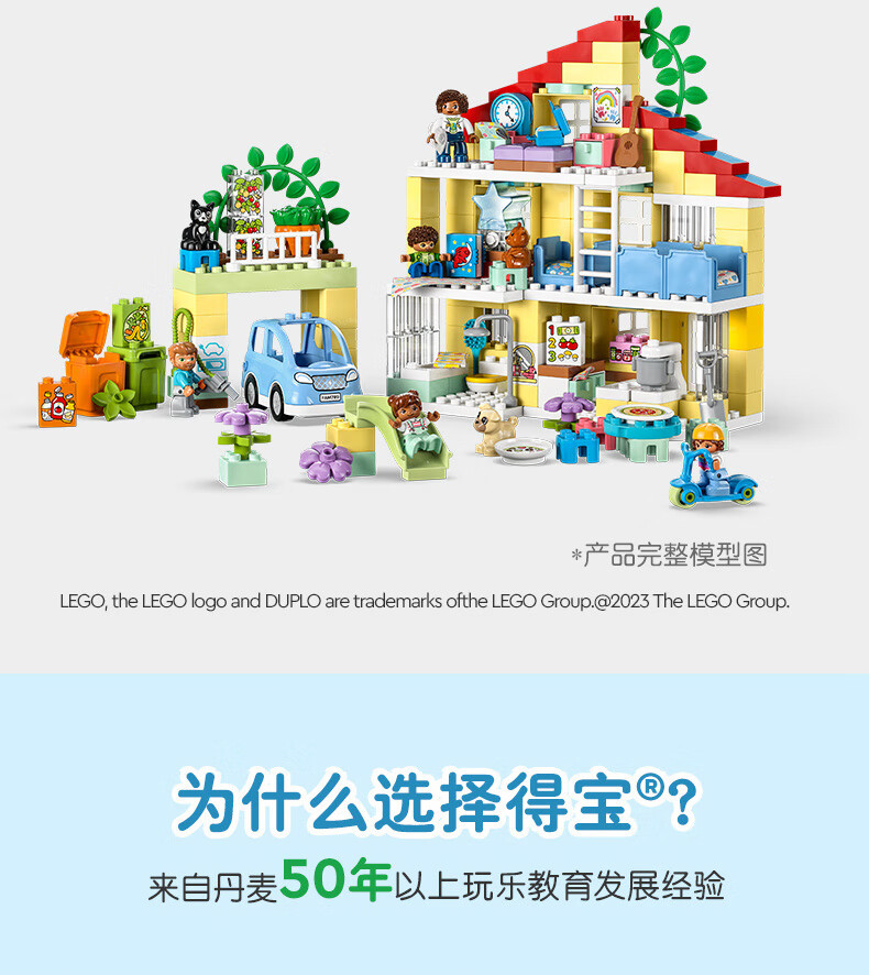 乐高(LEGO)积木拼装得宝10994 三合一梦幻小屋大颗粒积木桌儿童玩具圣诞礼物