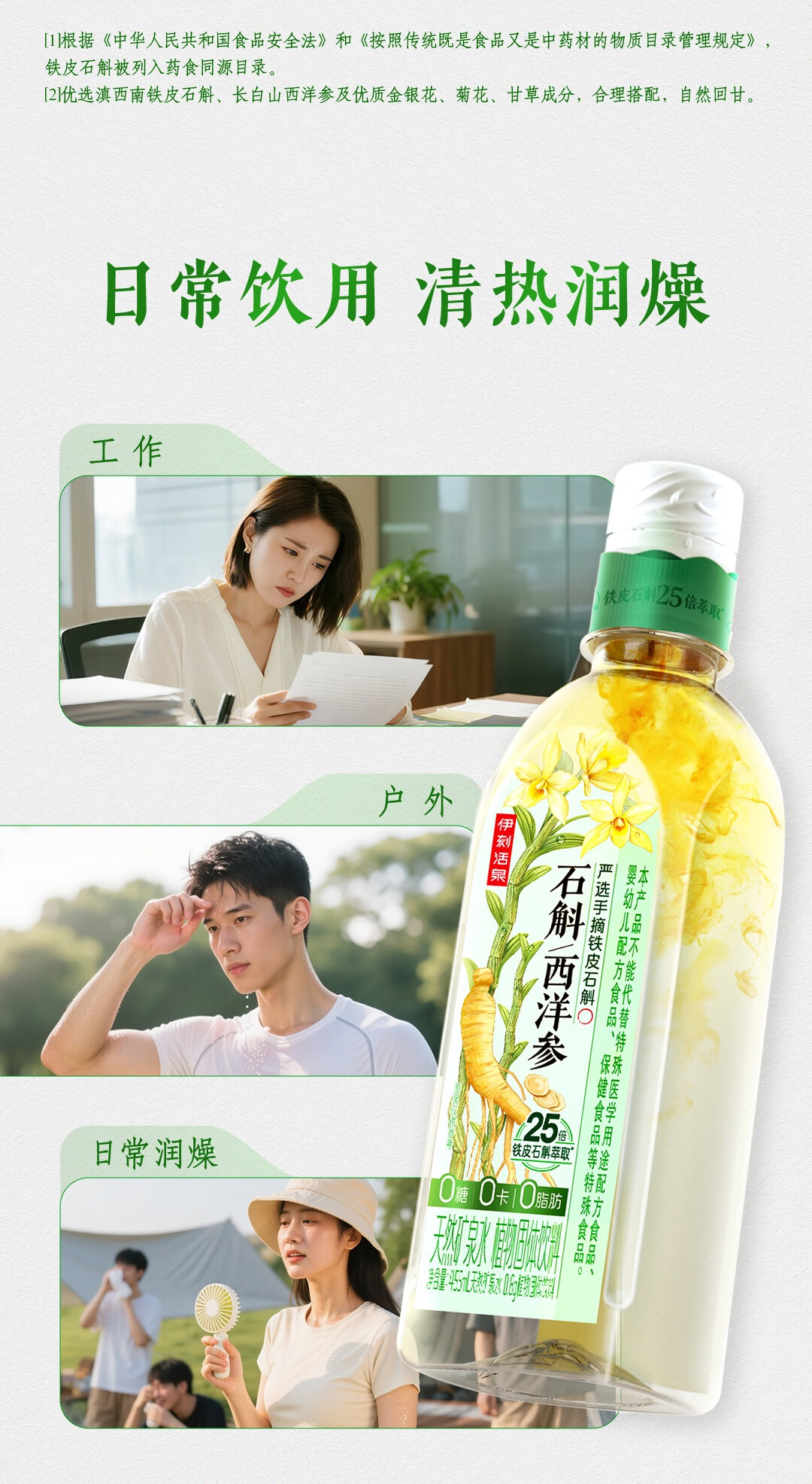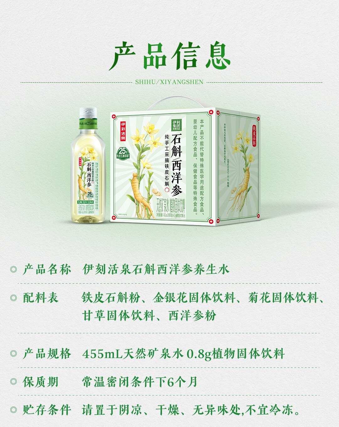 伊刻活泉石斛西洋参水 455ml*6瓶/箱 清热润燥 礼盒装