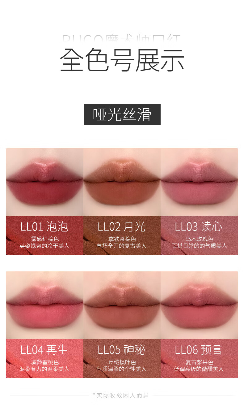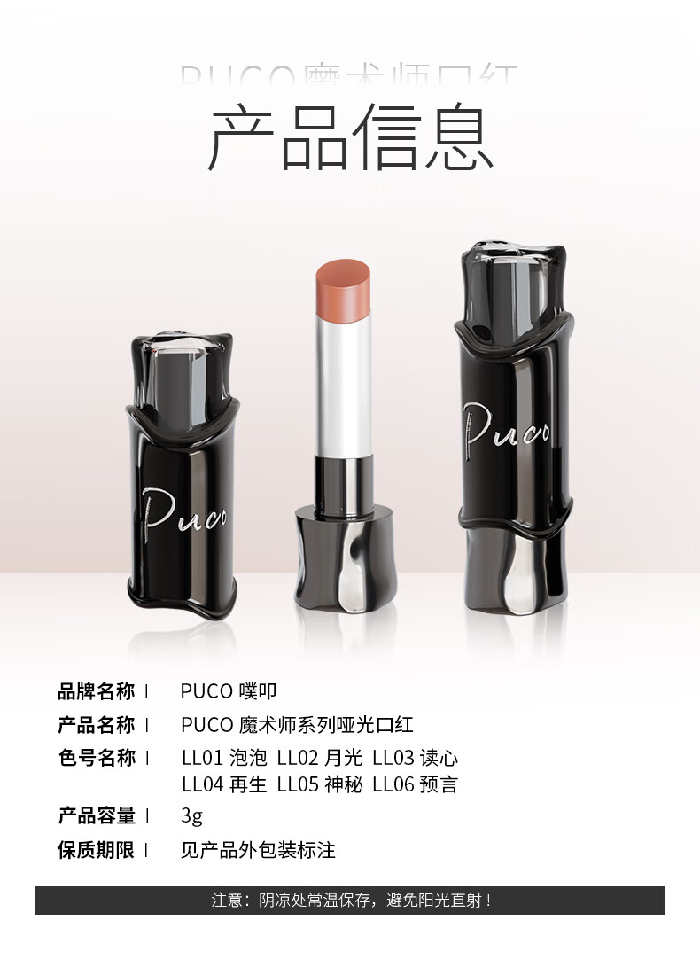 PUCO【新品】魔术师系列哑光口红不易沾杯保湿持妆丝绒雾面 LL02月光