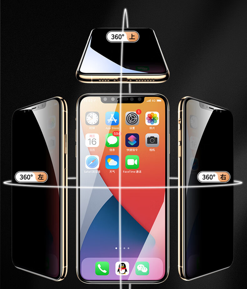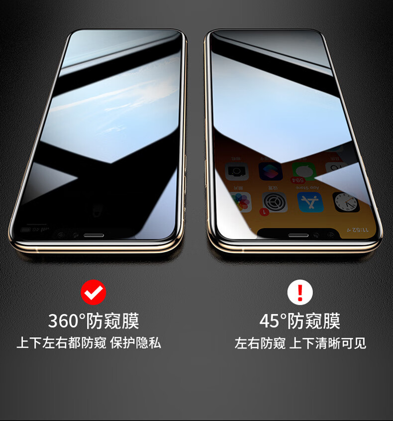 【精选】360度防窥膜苹果16钢化膜1514promax防窥膜iphone13全屏 苹果11/XR黑 【防尘】360上下左右防窥