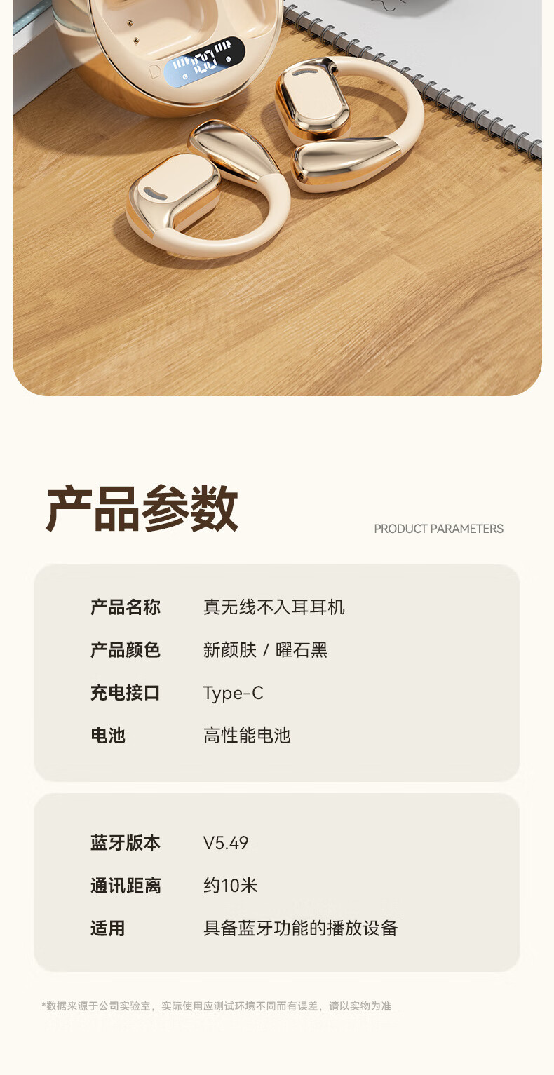 耳挂式无线蓝牙耳机不入耳HIFI级无损音质游戏低延迟小米华为vivo M76肤色-语音助手-5.4芯-立体音