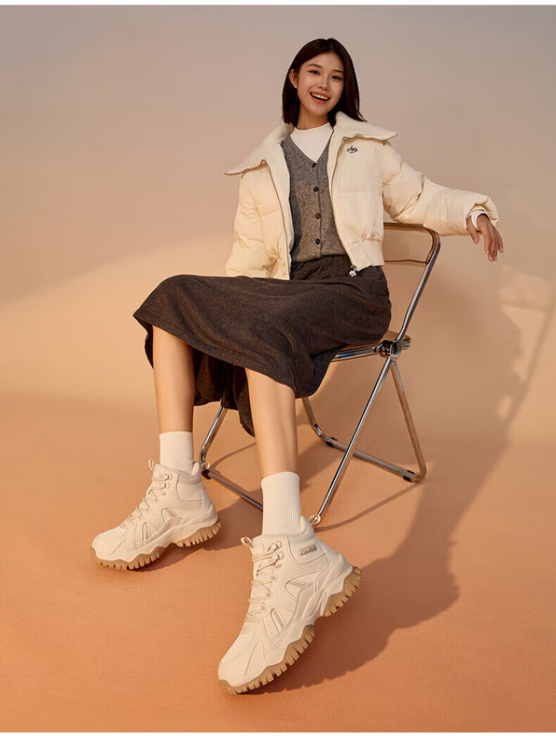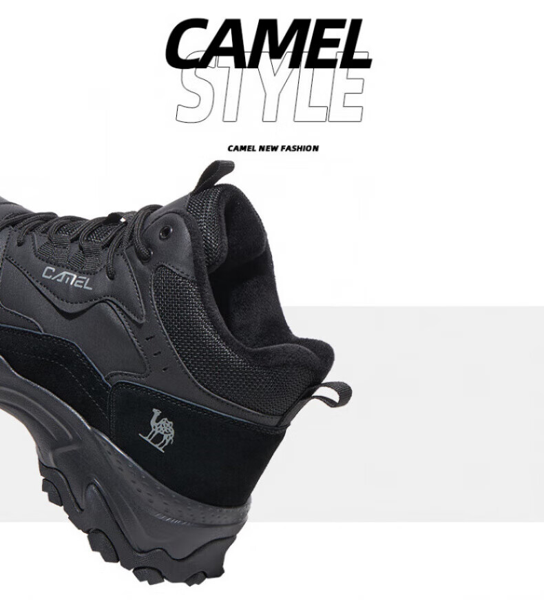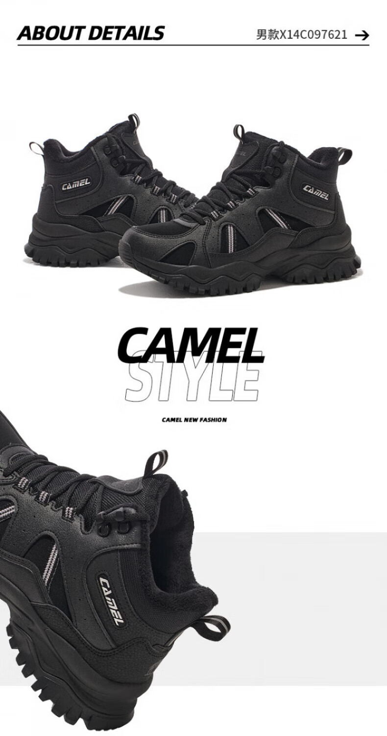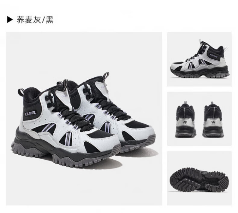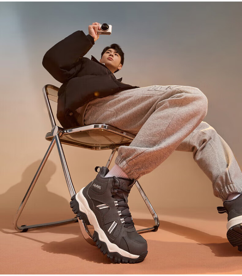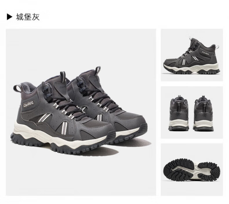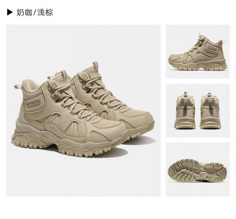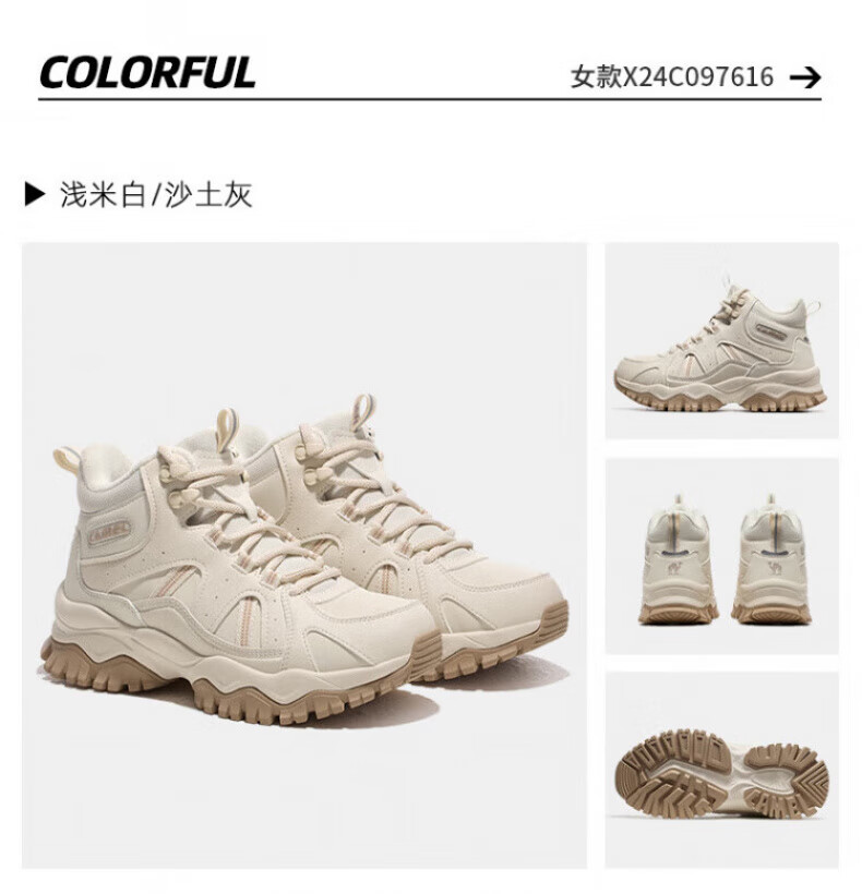 骆驼加绒高帮运动鞋男[远航]休闲保暖棉鞋厚底增高鞋女 X24C097616,浅米白/沙土灰 ,女 37
