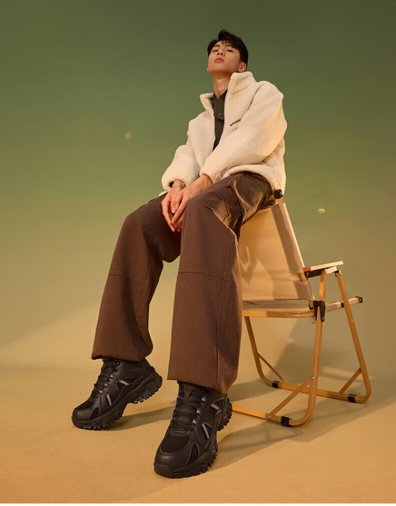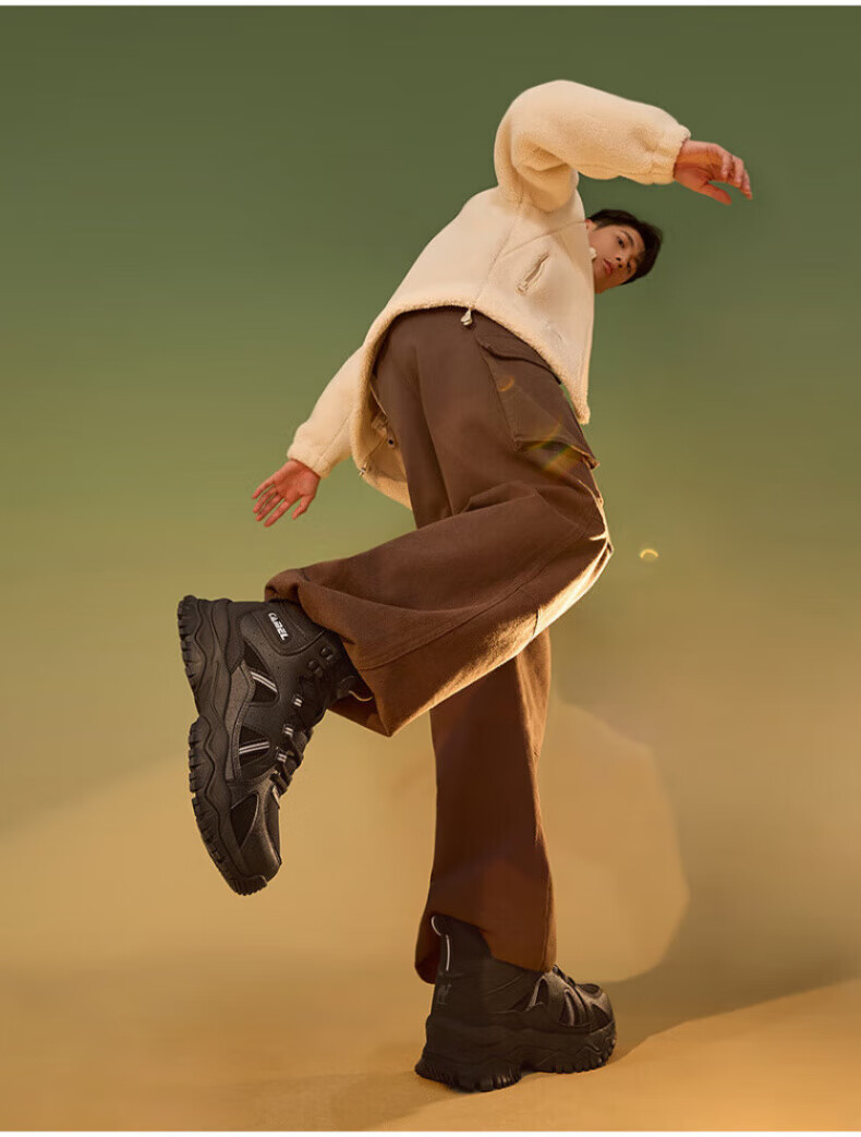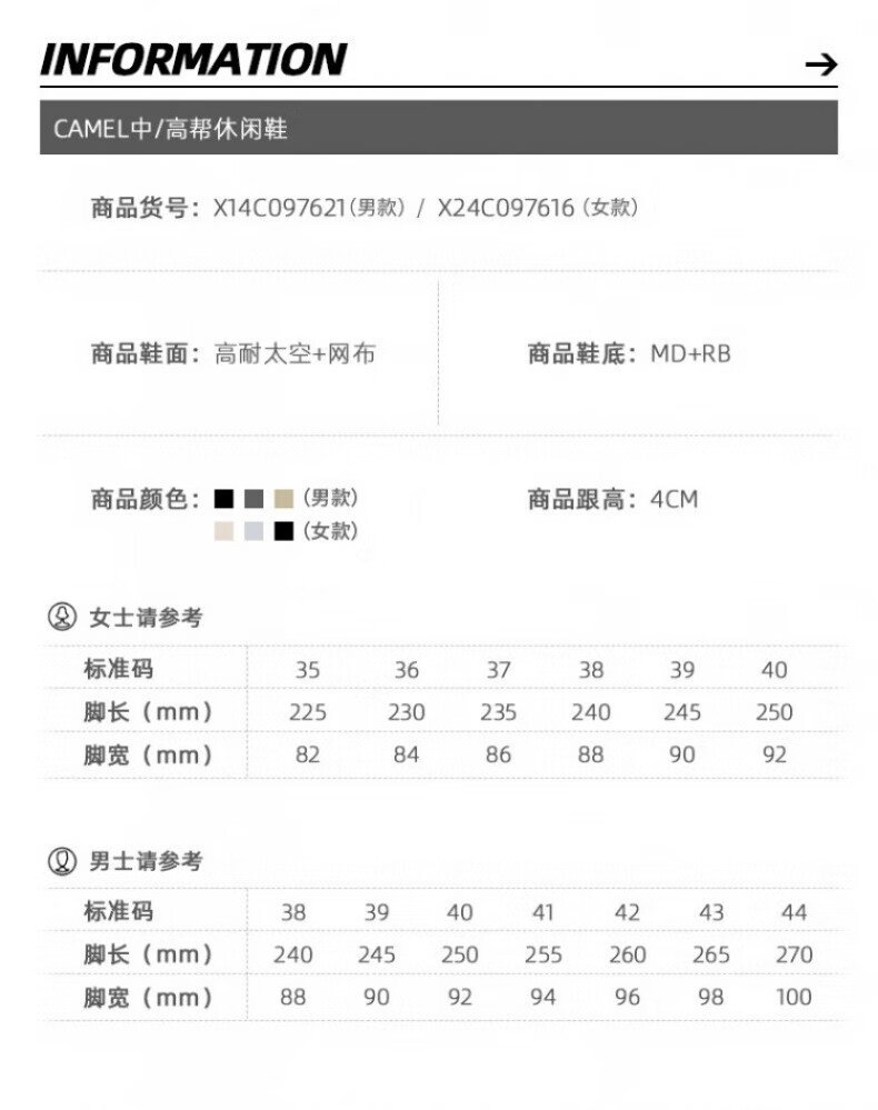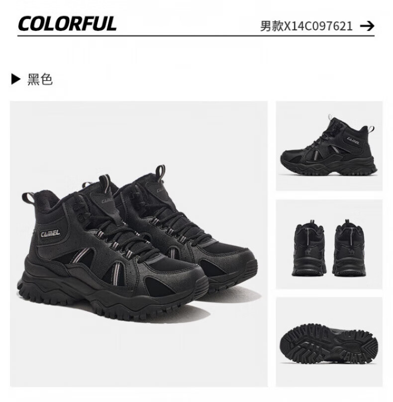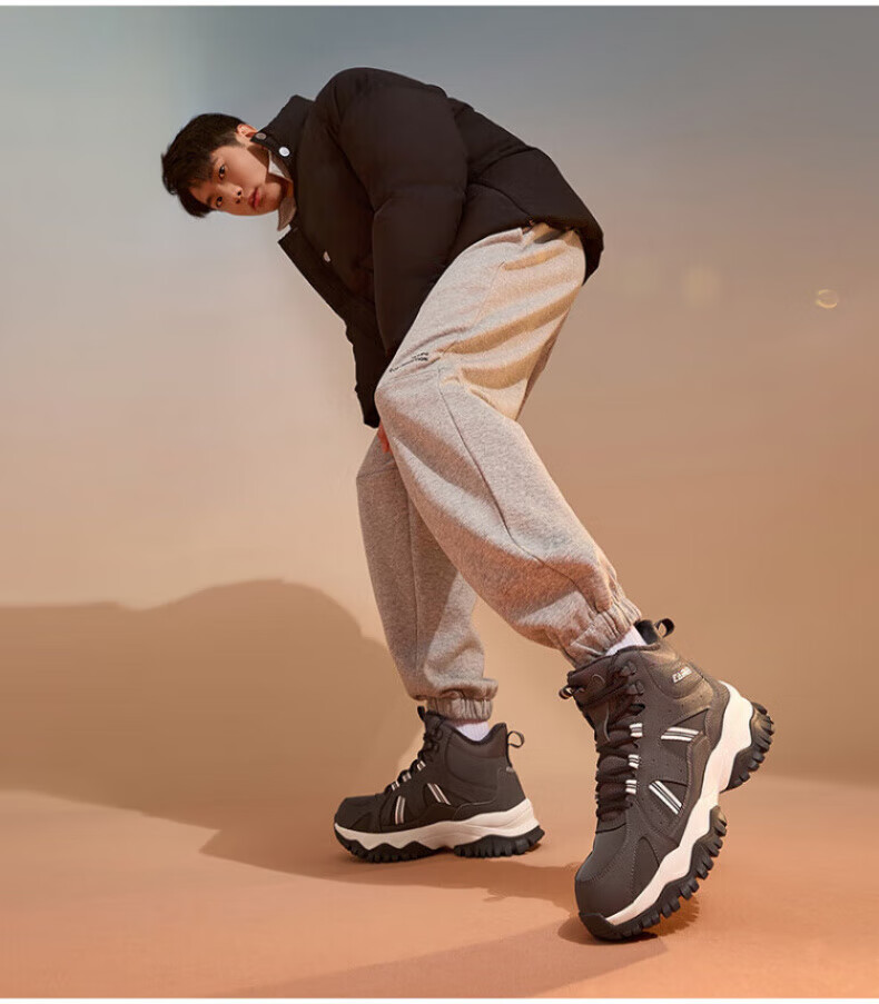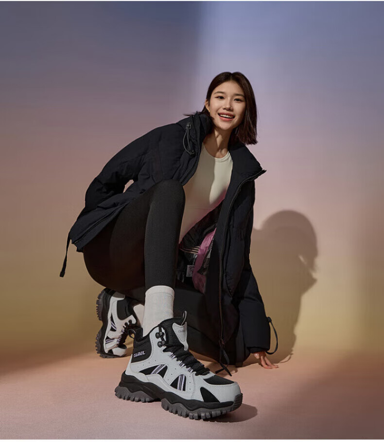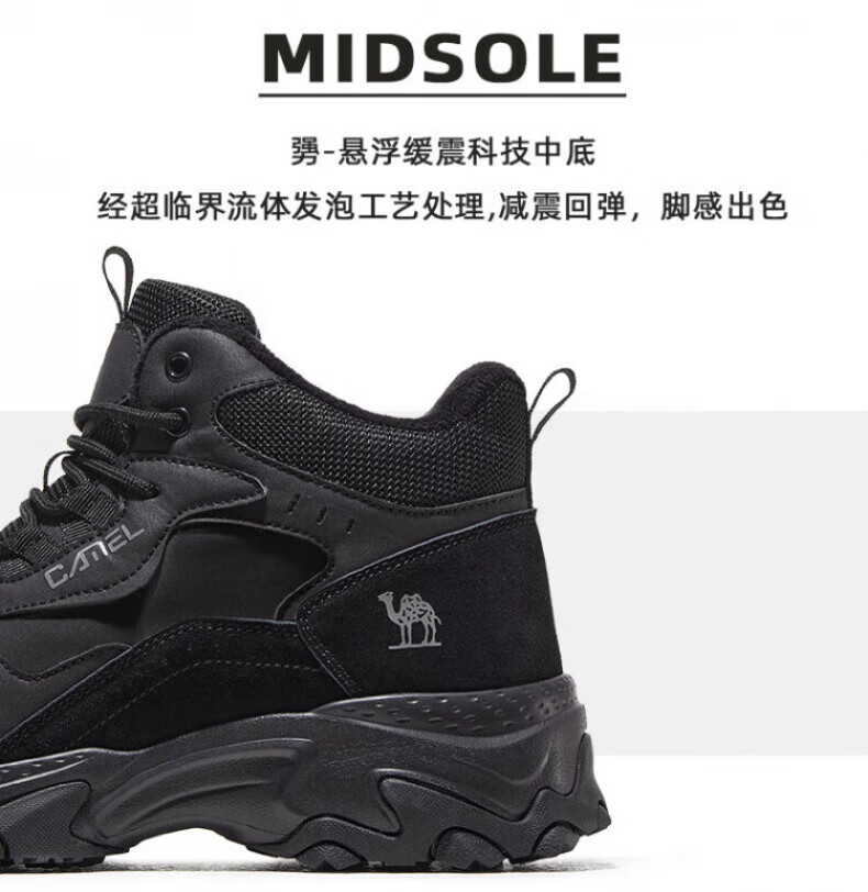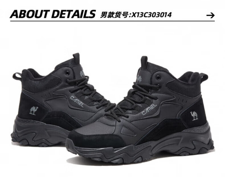 骆驼加绒高帮运动鞋男[远航]休闲保暖棉鞋厚底增高鞋女 X24C097616,浅米白/沙土灰 ,女 37