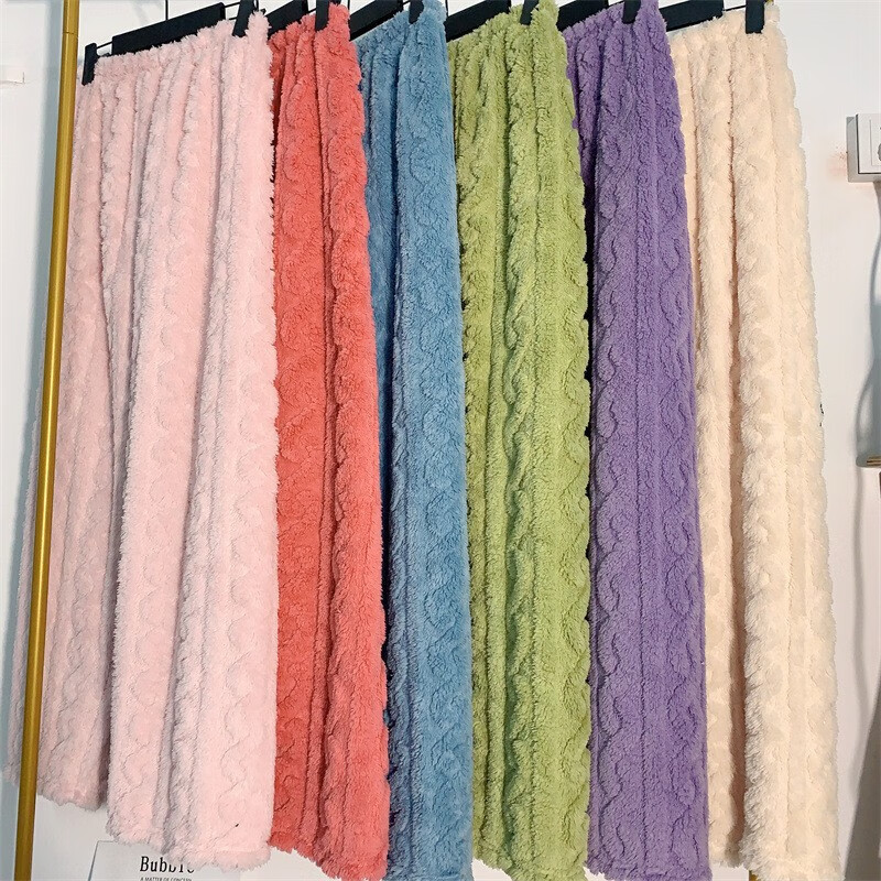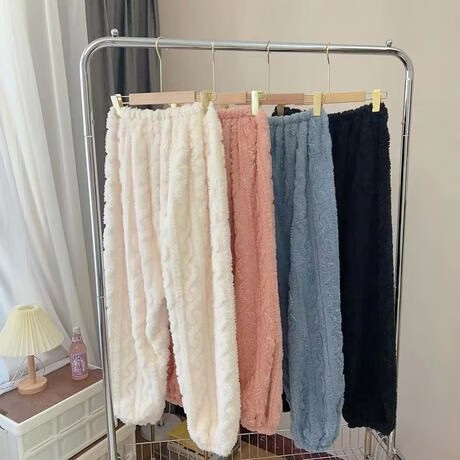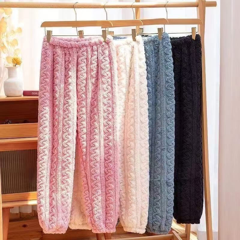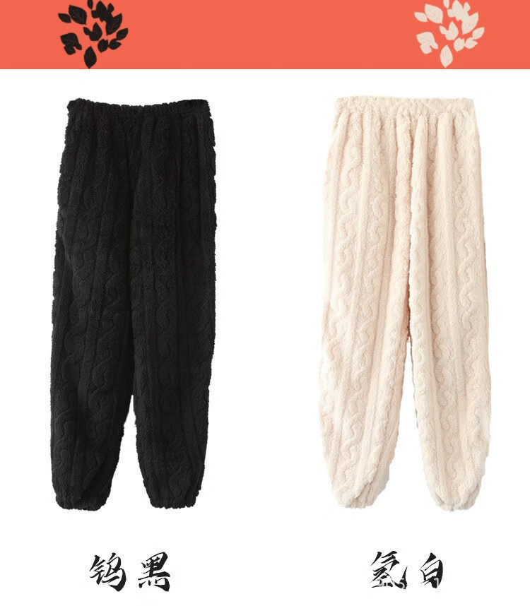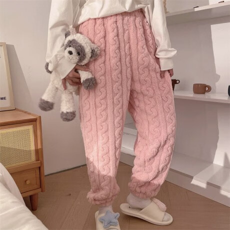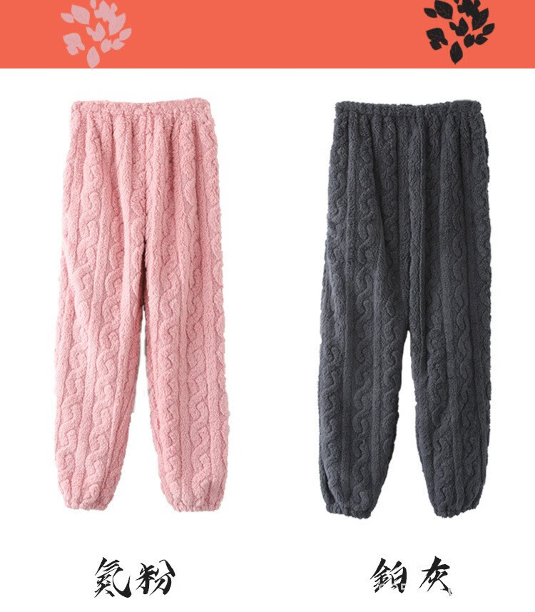 诗莉奥(SHILIAO)法兰绒睡裤女式珊瑚绒加绒加厚保暖提花家居裤秋冬束脚宽松毛绒裤 蜜桃红 均码 【80-140斤】