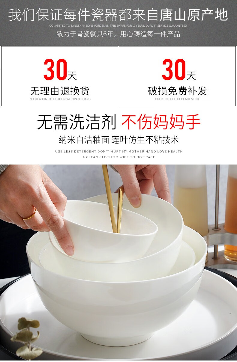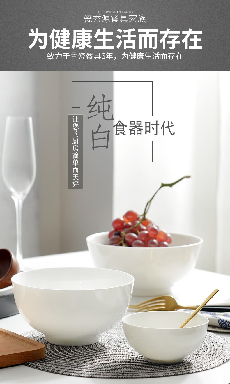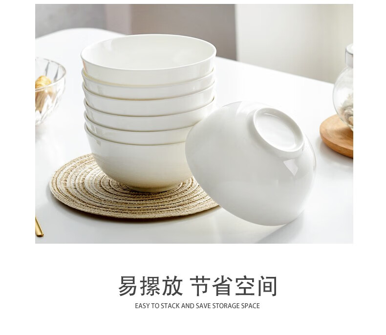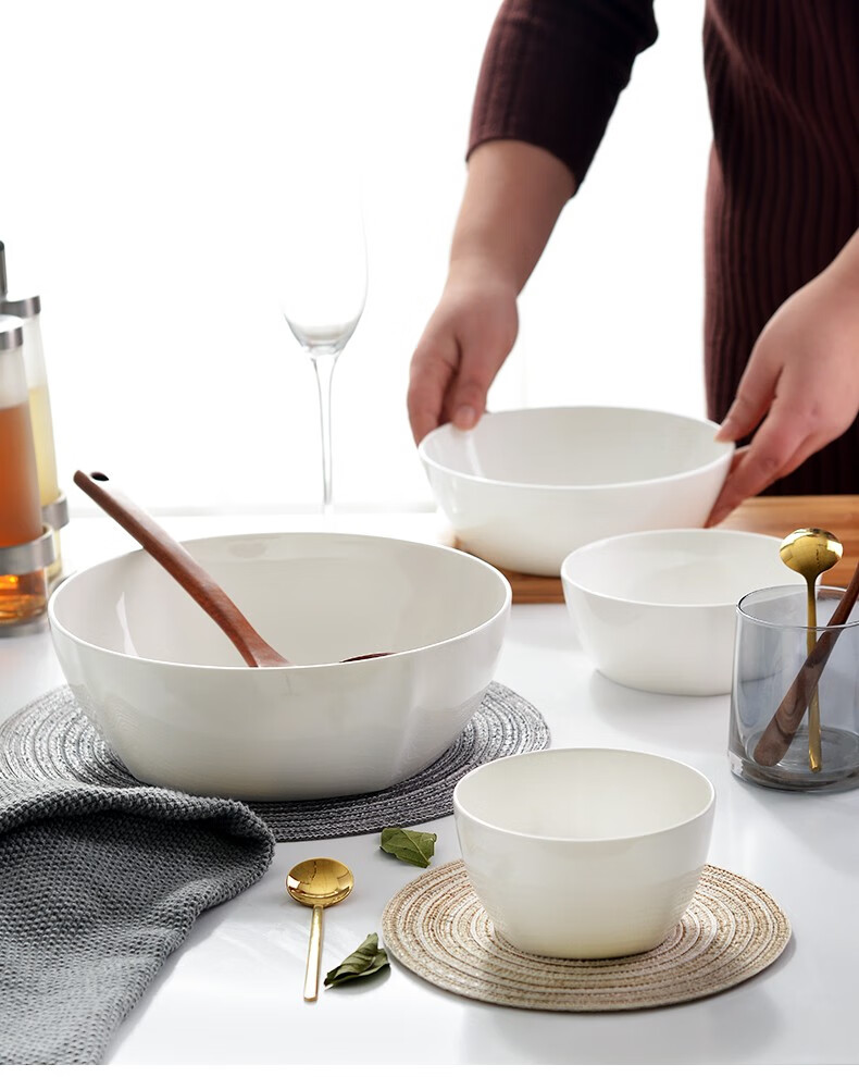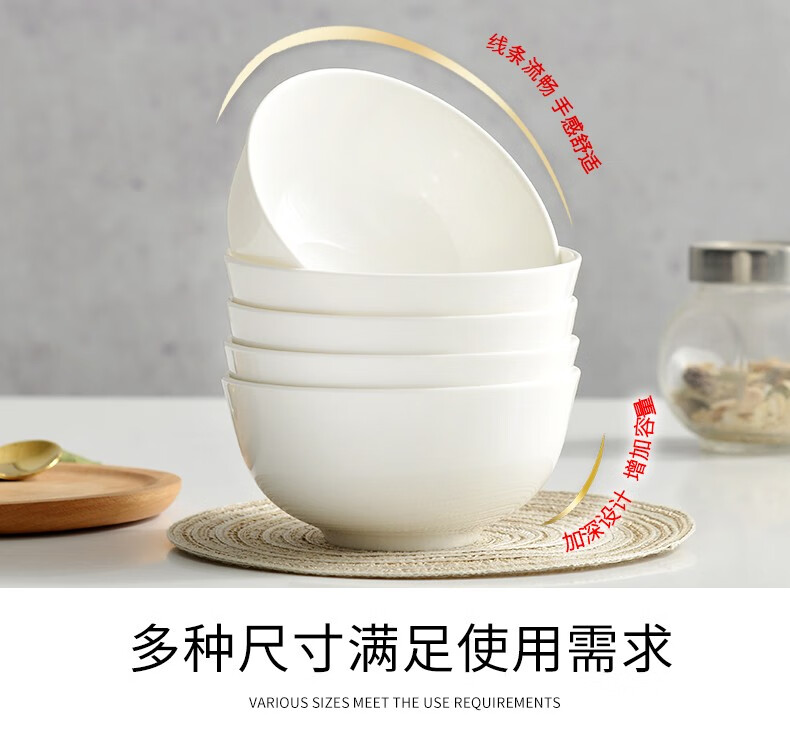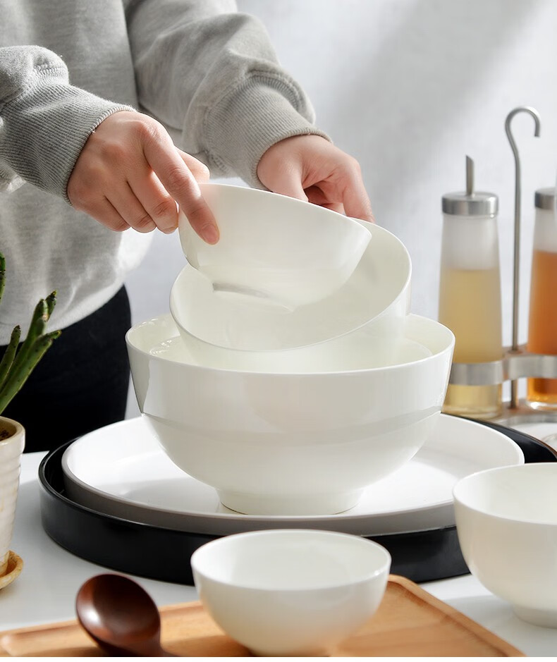 宰搂厂家直供唐山骨瓷碗家用套装白色饭碗米饭碗陶瓷碗2023新 8英寸奥碗大号汤碗