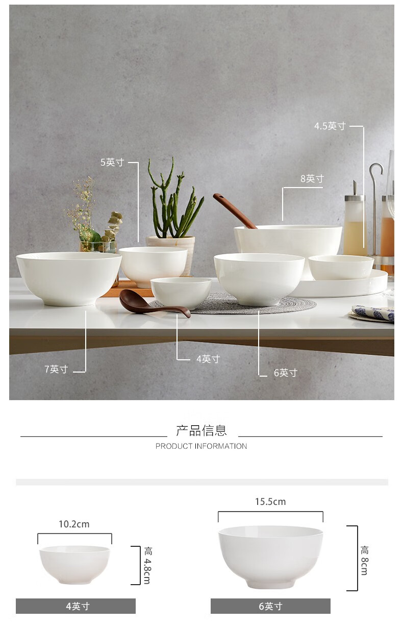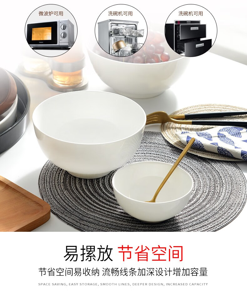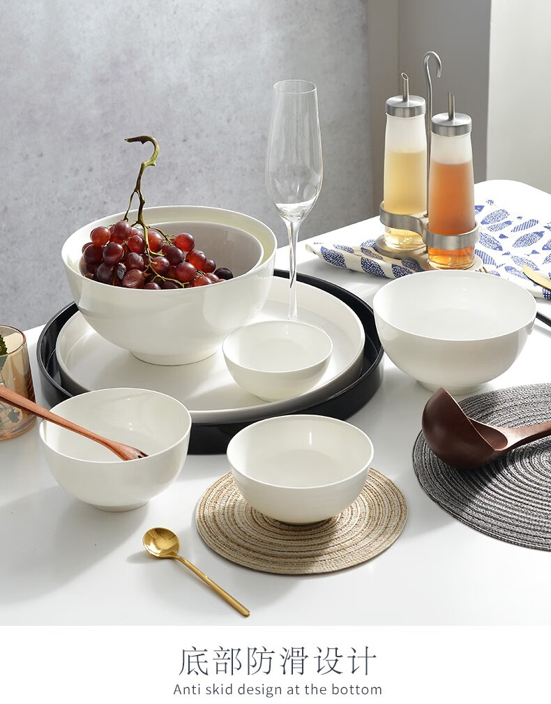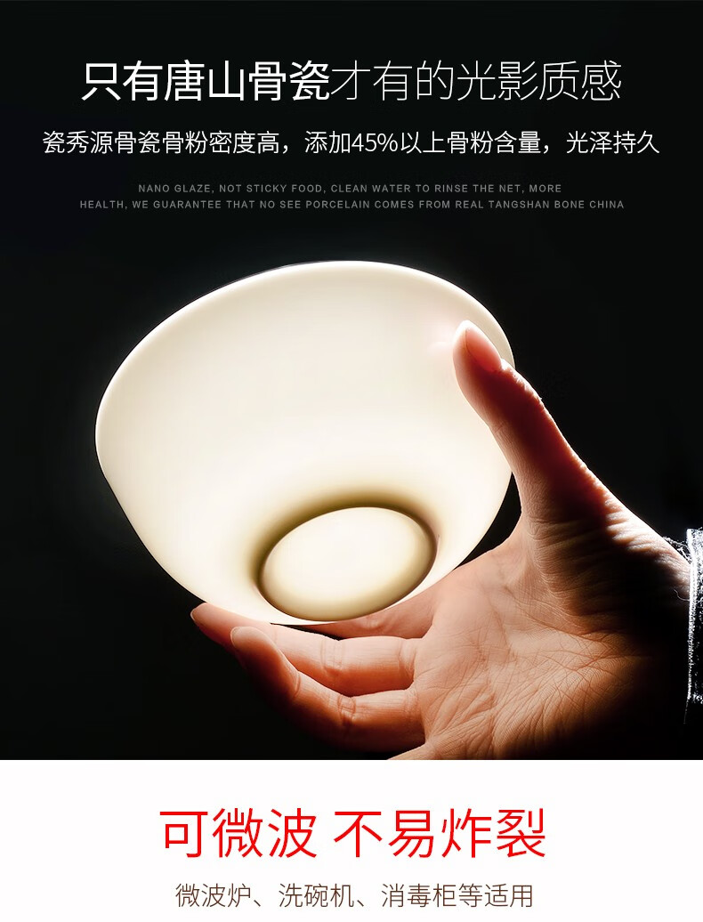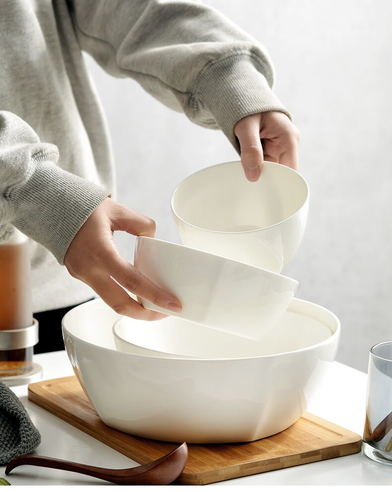 宰搂厂家直供唐山骨瓷碗家用套装白色饭碗米饭碗陶瓷碗2023新 8英寸奥碗大号汤碗