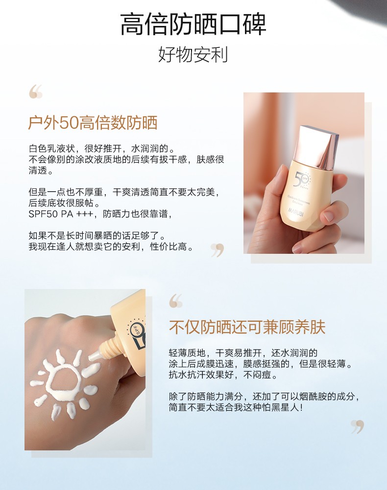 丸美(MARUBI)防晒补水舒缓修护套装 轻薄不油腻防晒乳SPF50 PA+++ 防晒霜军训 【试用】小金钻防晒20g