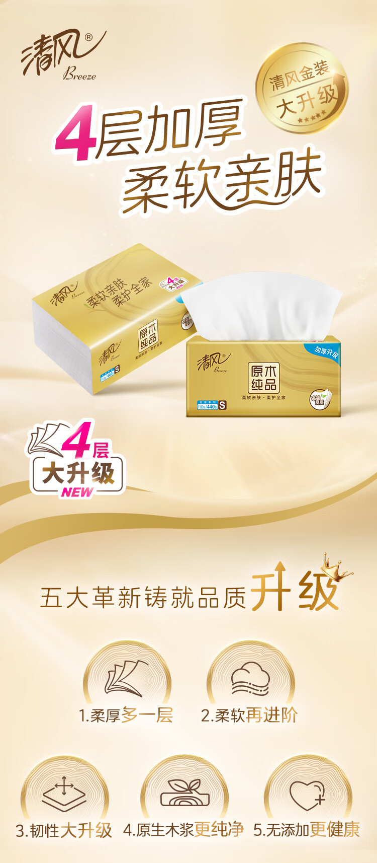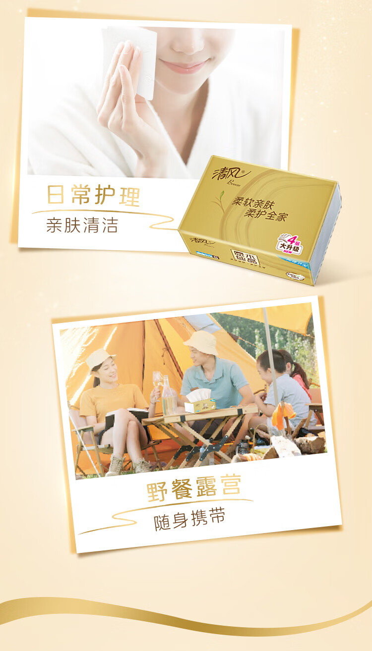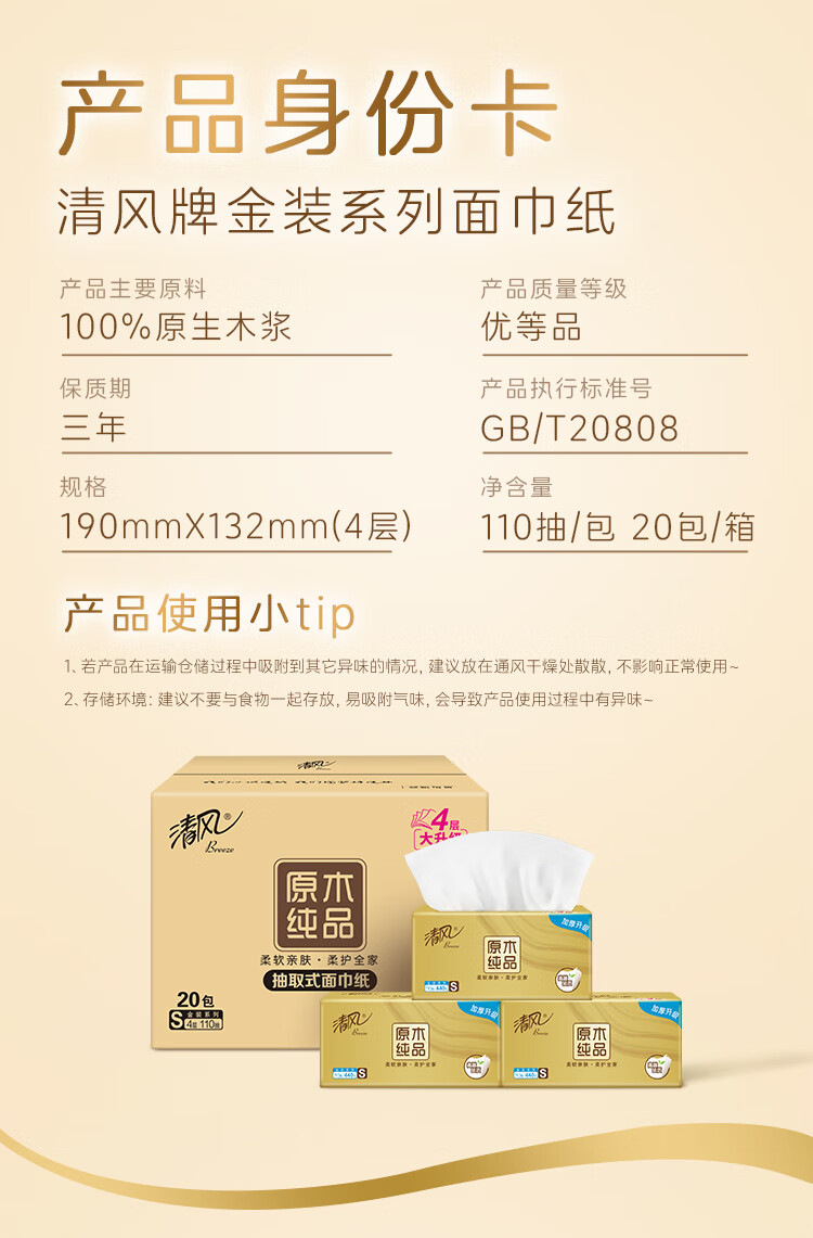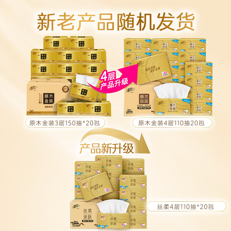 清风抽纸【李昀锐同款】 丝柔4层110抽*20包M码 纸巾抽 餐巾纸 整箱装