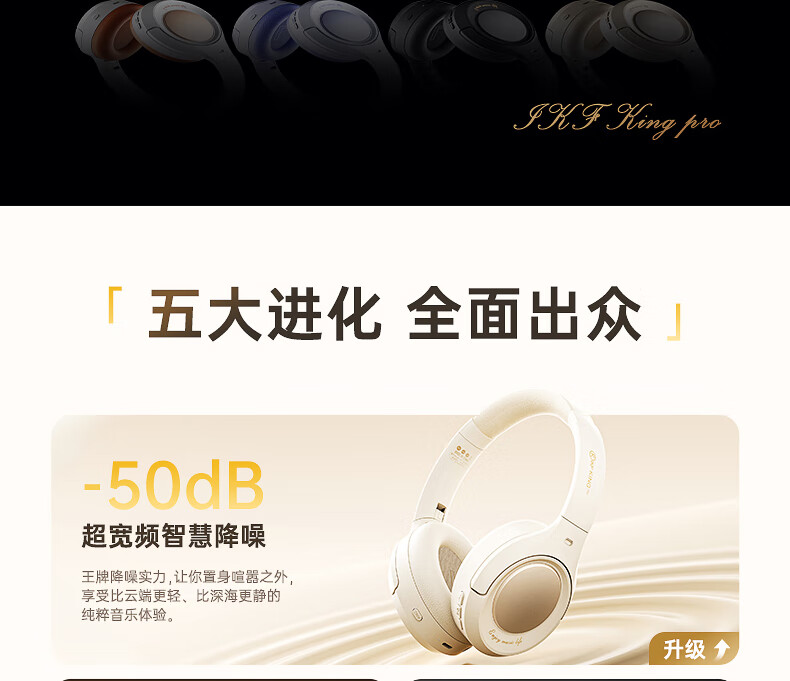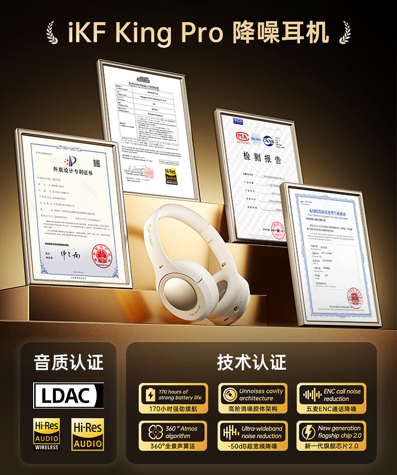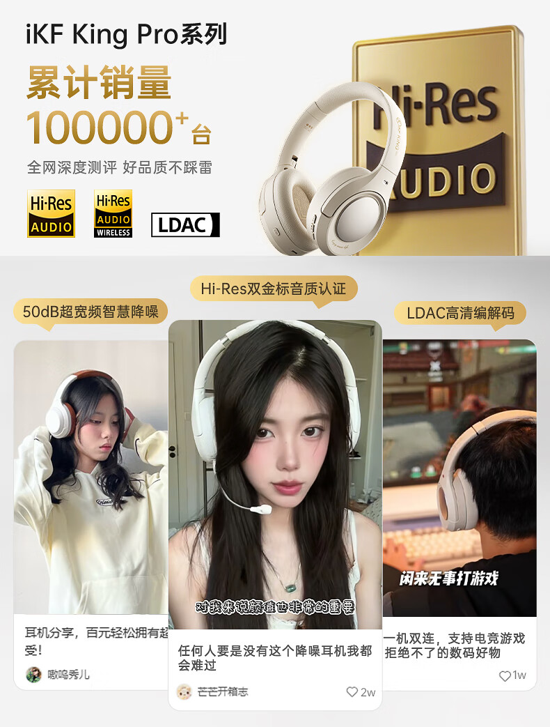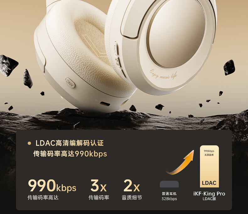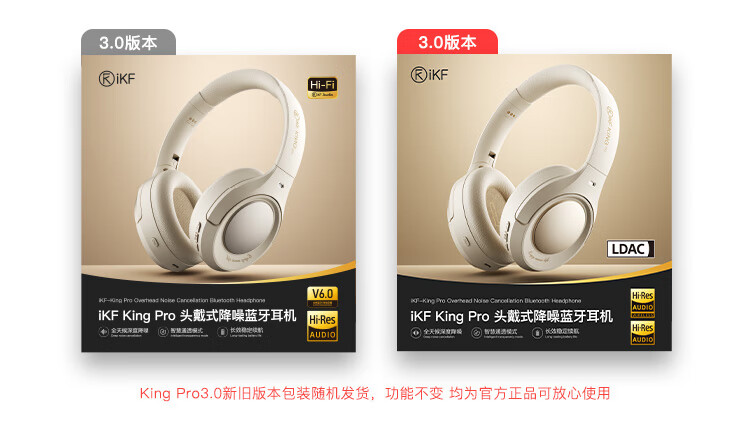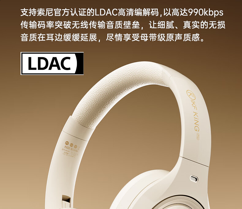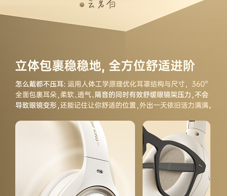 iKF King Pro3.0【双金标LDAC高解析】头戴式主动降噪蓝牙耳机新款无线有线游戏低延迟超长续航云岩白