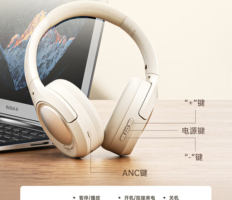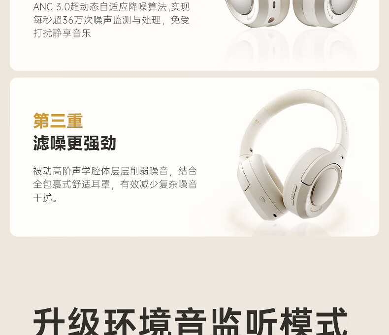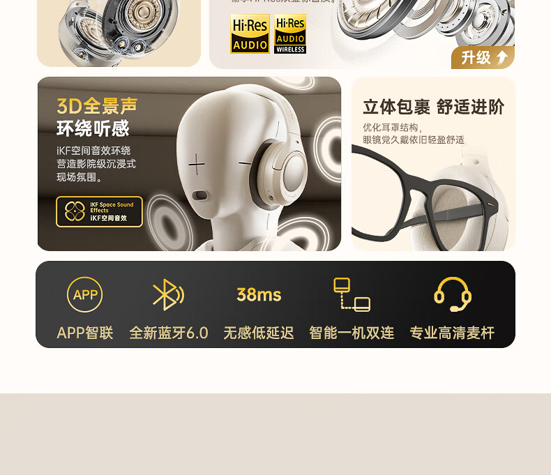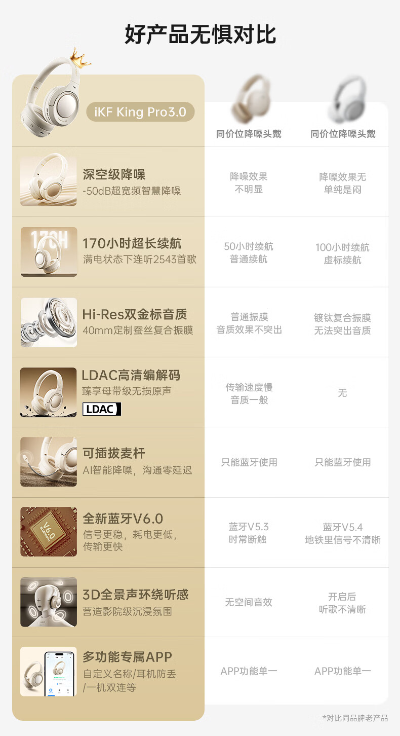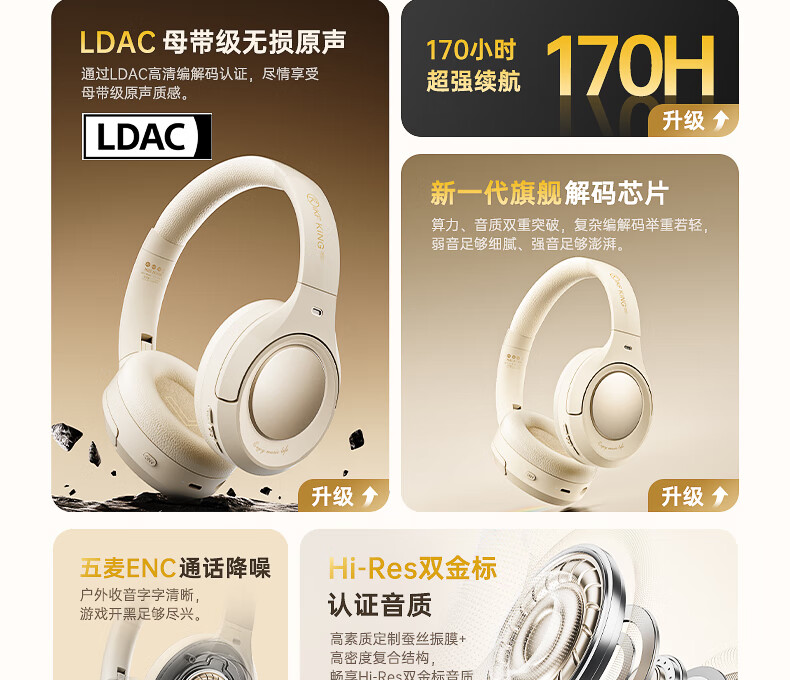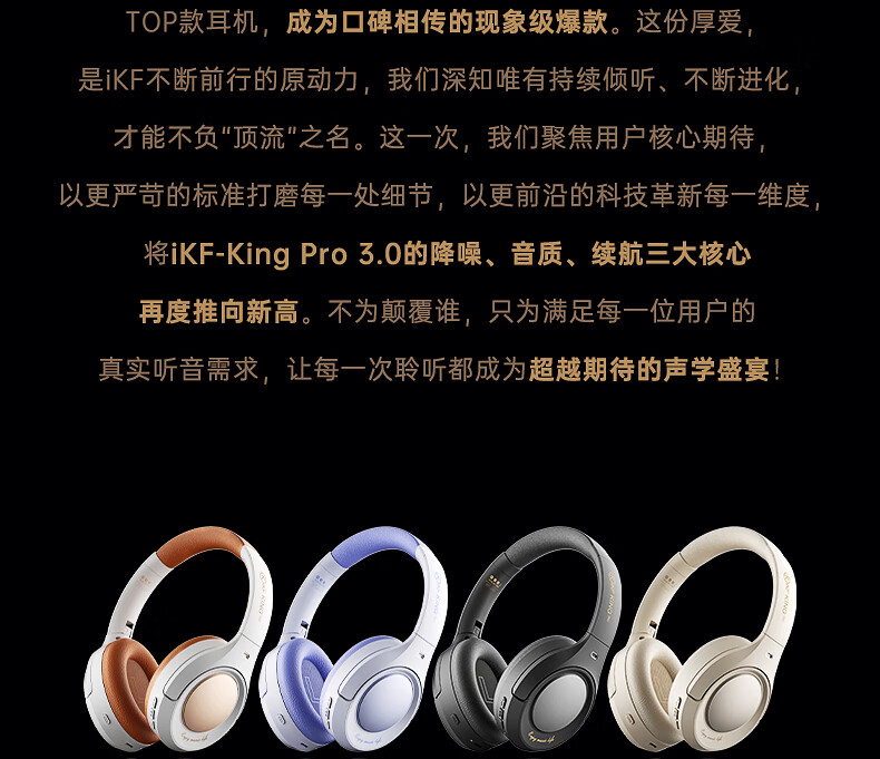 iKF King Pro3.0【双金标LDAC高解析】头戴式主动降噪蓝牙耳机新款无线有线游戏低延迟超长续航云岩白