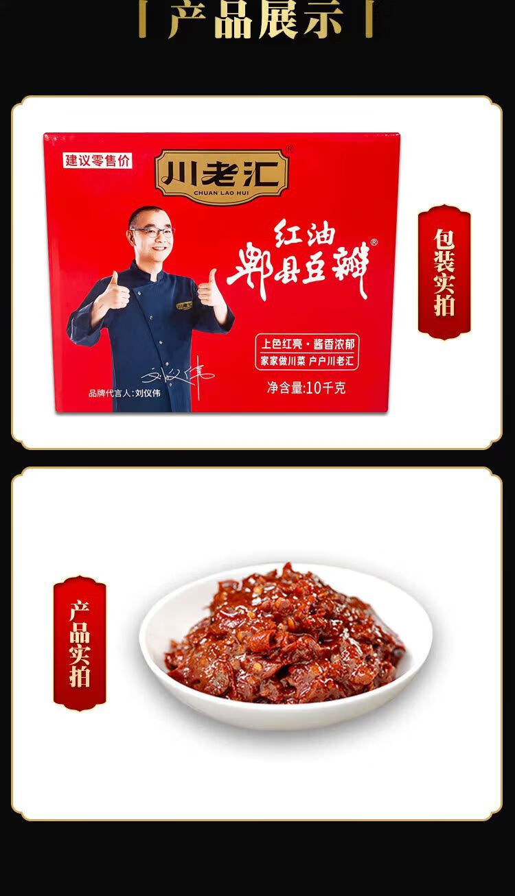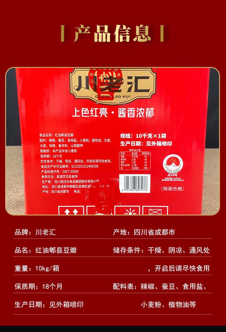 川老汇红油郫县豆瓣10kg箱餐饮商用郫县豆瓣加细免剁调味豆瓣酱10 10kg箱