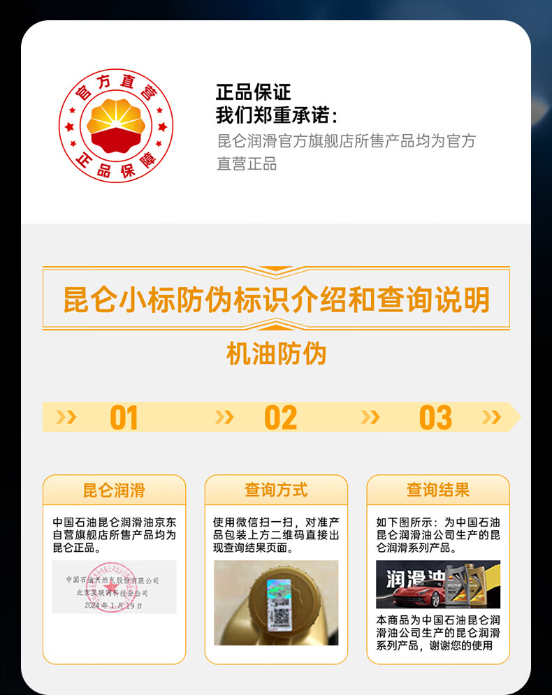 昆仑(KunLun)中国石油京保养 全合成机油 汽机油 京东养车 5W-30 SP 4L