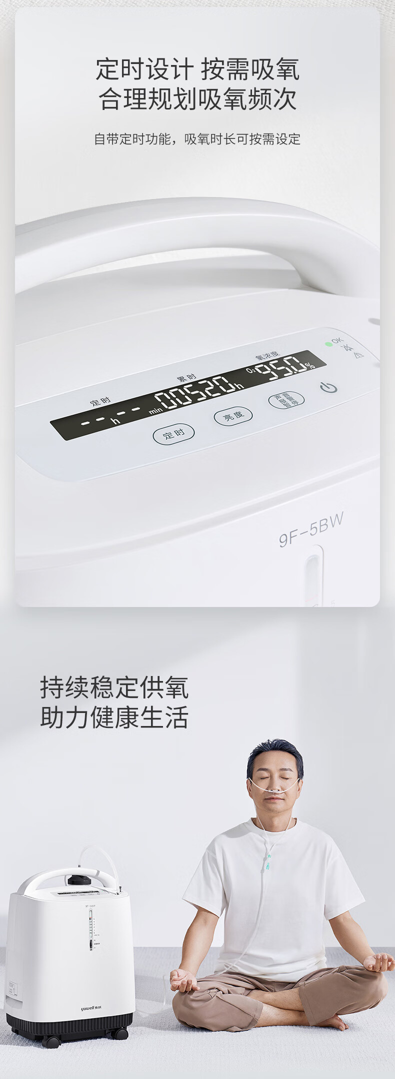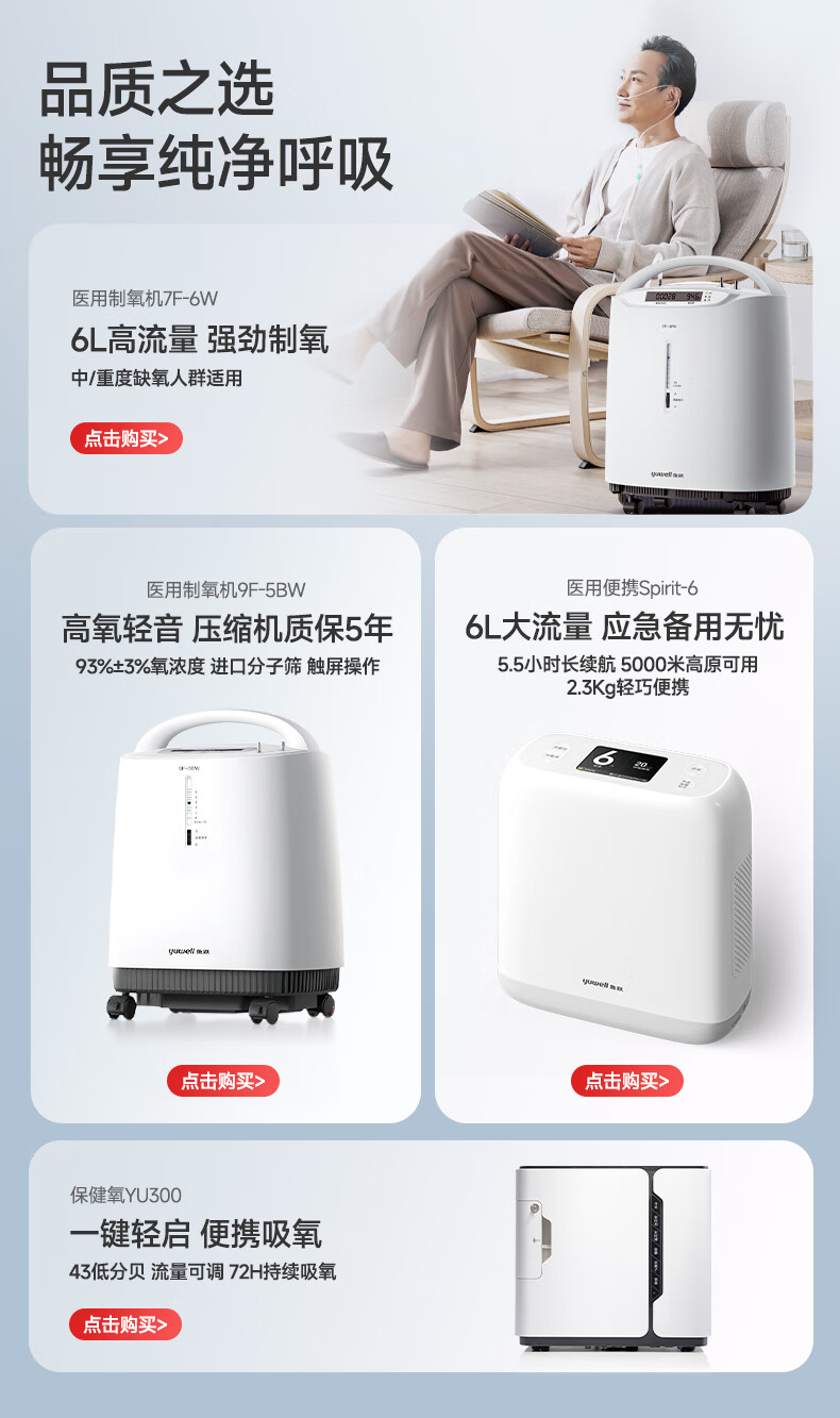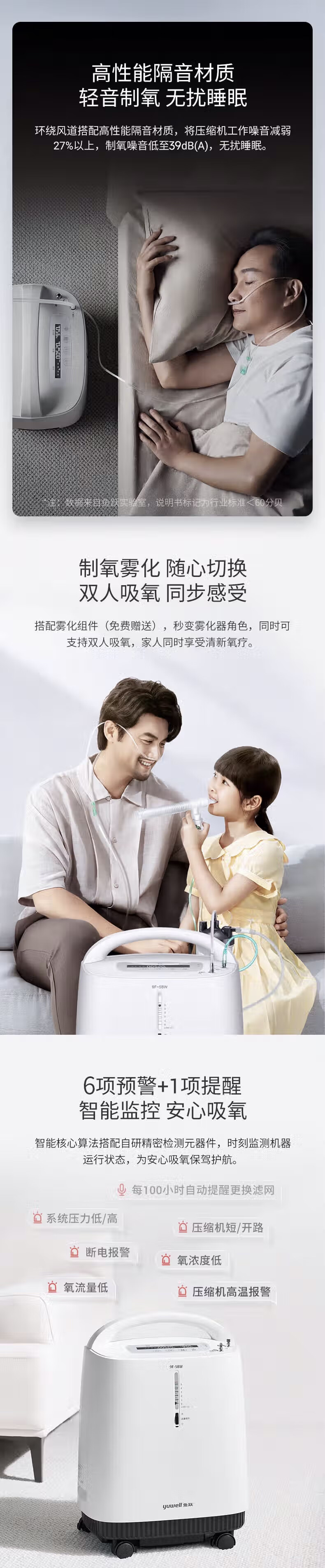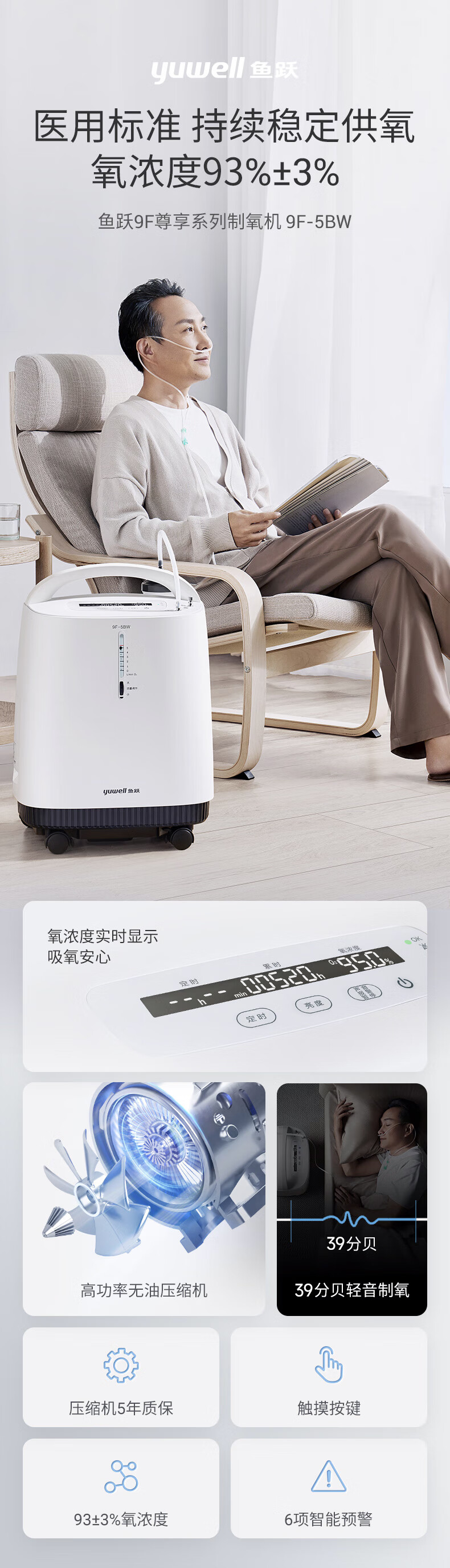 鱼跃(Yuwell)制氧机医用吸氧机家用老人医用级氧气机5L升大流量9F-5BW