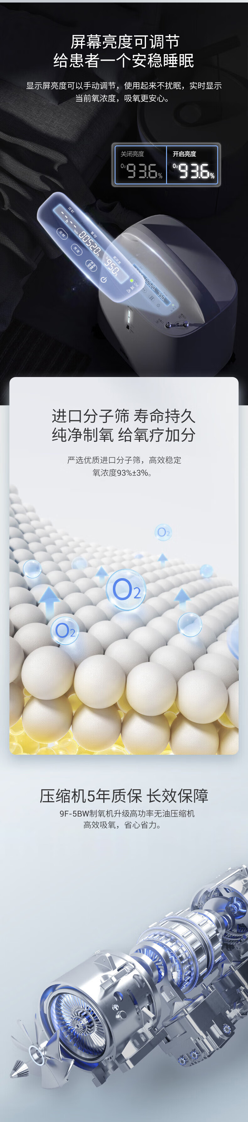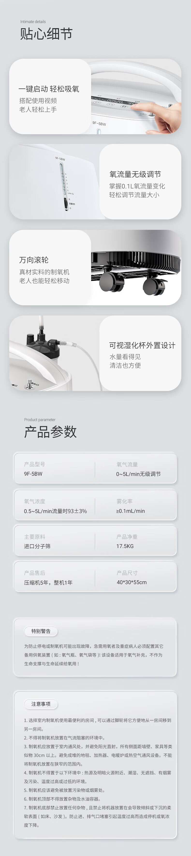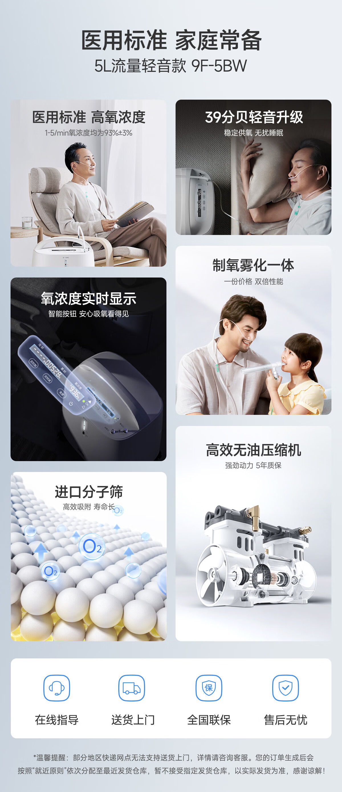 鱼跃(Yuwell)制氧机医用吸氧机家用老人医用级氧气机5L升大流量9F-5BW