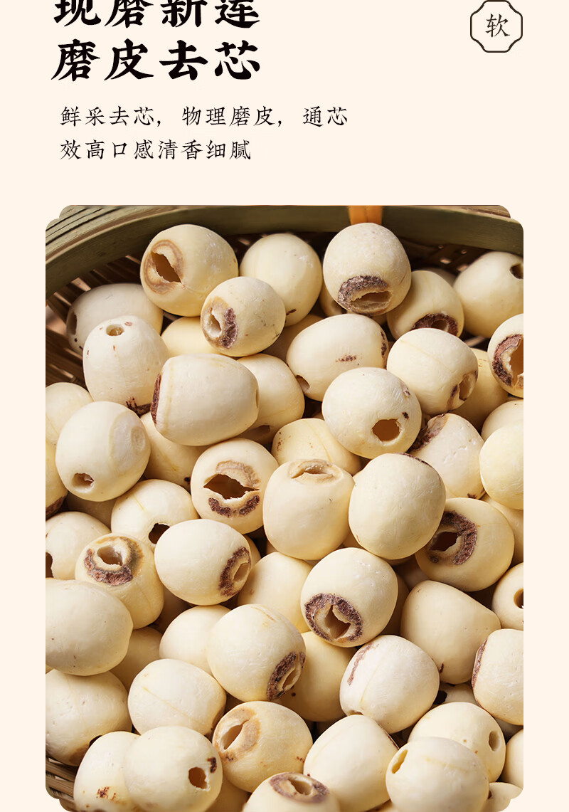 莲小花莲子10g去芯百合银耳莲子羹四神汤滋补中药材调健三伏天养生脾胃 磨皮白莲250g*2袋