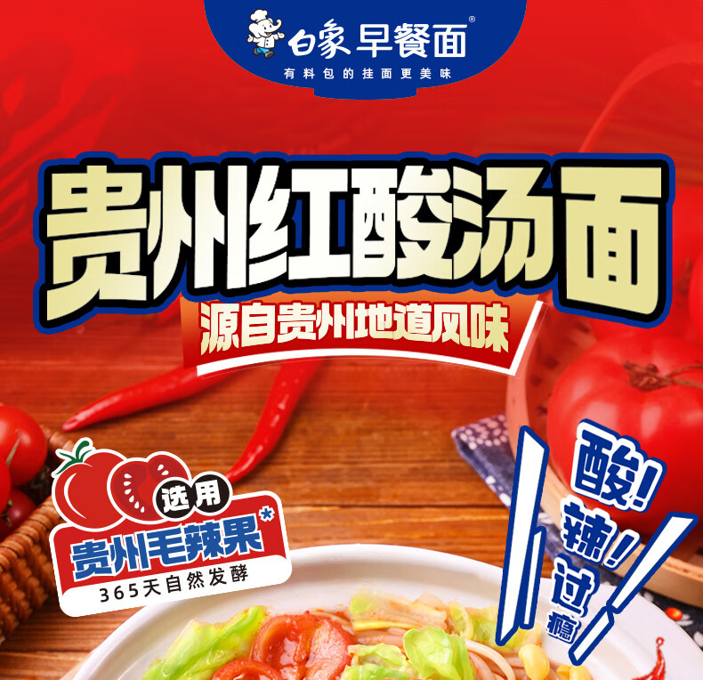 白象红酸汤面贵州138g(源自贵州地道风味毛辣果)DIY小火锅面条汤面