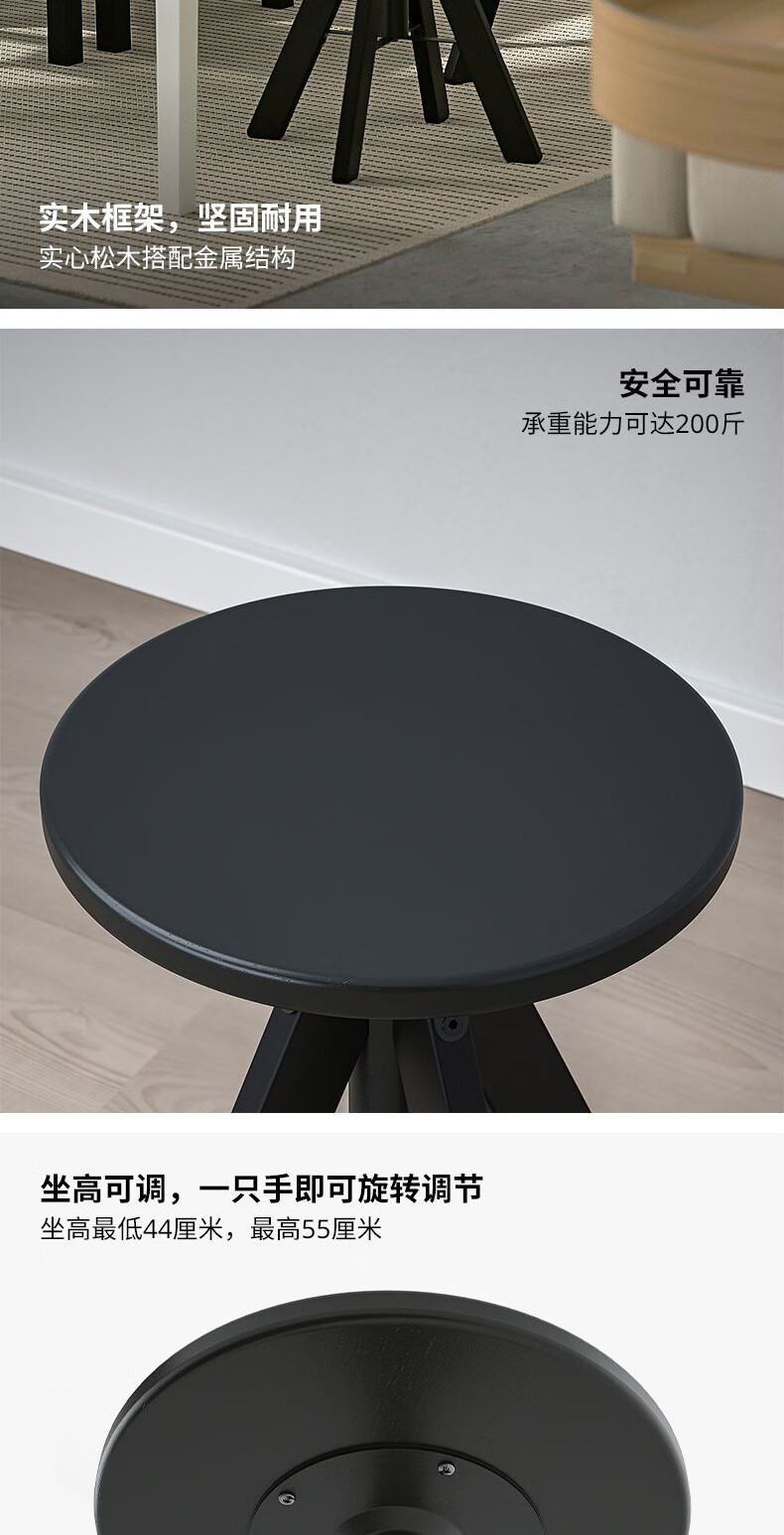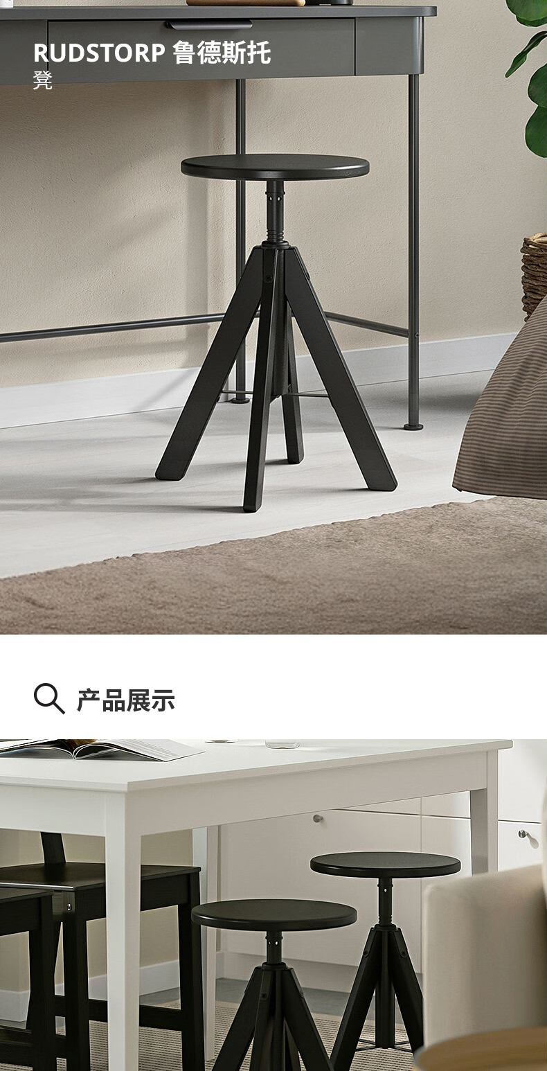 宜家(IKEA)【新品】RUDSTORP鲁德斯托凳吧台凳北欧现代餐厅酒吧 黑色凳44-55cm